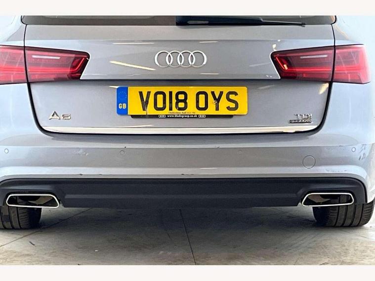 Audi drive select, Audi parking system plus with front and rear sensors, Audible and visual fasten seat belt warning - front and rear, Cruise control, Driver's information system, MMI SD card Navigation, Mobile telephone preparation, PAS, Service interval indicator, Diesel particulate filter, Audi music interface, Auxiliary input socket, DAB digital radio module, MMI Radio plus with CD player and bluetooth interface, SD card slot, USB connection, Auto dimming rear view mirror, Automatic headlights + automatic windscreen wipers, Body colour bumpers, Body colour door mirrors and handles, Body colour roof spoiler, Body coloured door mirrors, Electric front/rear windows, High gloss black finish B pillar, High gloss black triangular aperture at rear door, LED daytime running lights, LED rear lights, Light sensor, Rain sensor, Rear wiper, 12V power in rear centre console, 4 way electric lumbar support for driver and front passenger, 4 zone climate control, Aluminium door sill trims, Double cargo floor, Front centre armrest, Front head restraints, Front/rear floor mats, Height adjustable front seats, Isofix front passenger and rear seat preparation, Jack and tool kit, Load lashing points, Luggage compartment cover, Luggage rails, Rear headrests, Split folding rear seat, Non smoking pack - A6, 3 point seatbelts on all seats, ABS/EBD, ASR traction control, Curtain airbags, Driver and passenger airbags, Driver/front passenger side airbags, Electromechanical parking brake, Electronic stability control, Front passenger airbag deactivation, Hill hold assist, Tyre pressure monitoring system, Warning triangle and first aid kit, Anti theft alarm, Anti-theft wheel bolts, Immobiliser, Keyless start, Remote central locking, Space saver spare wheel,