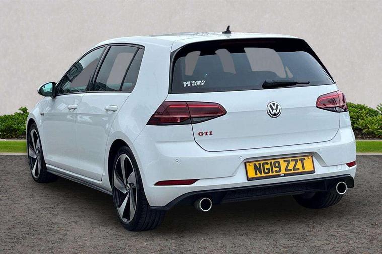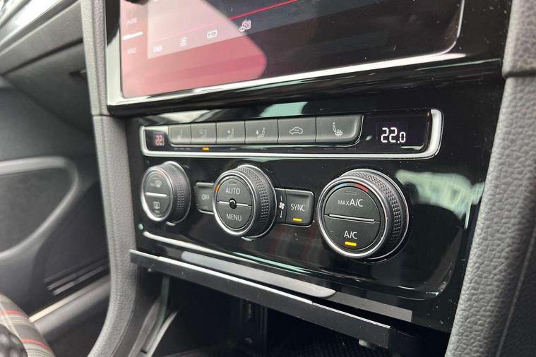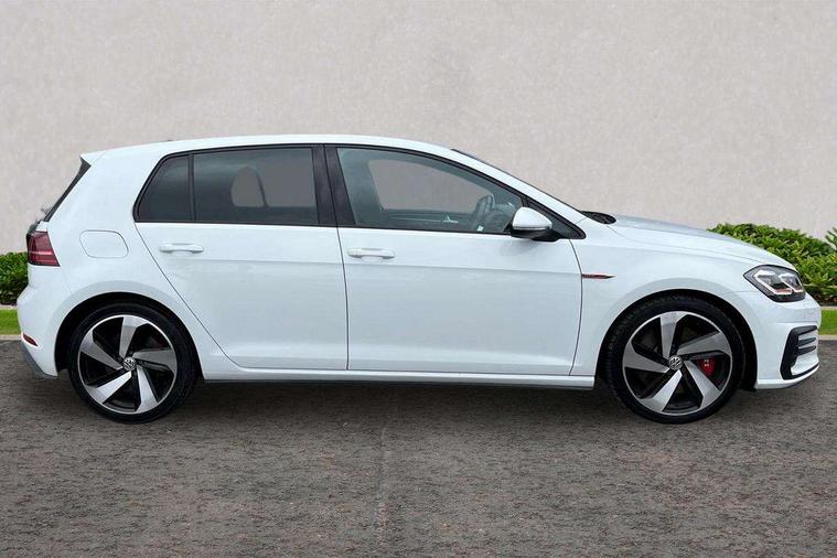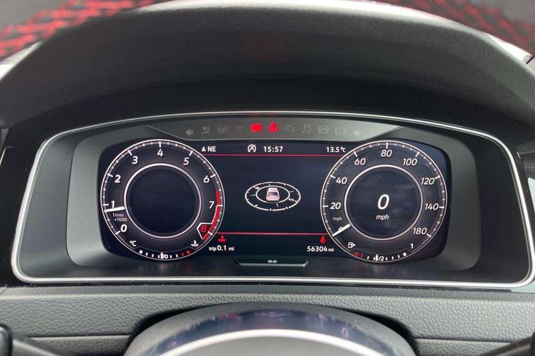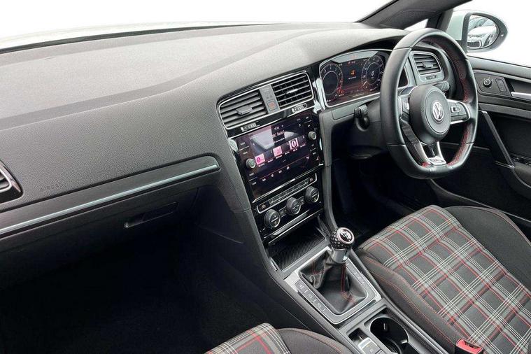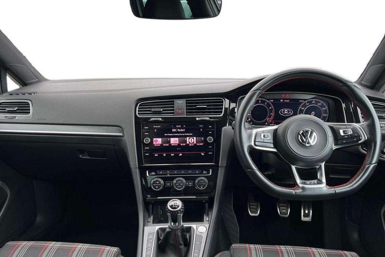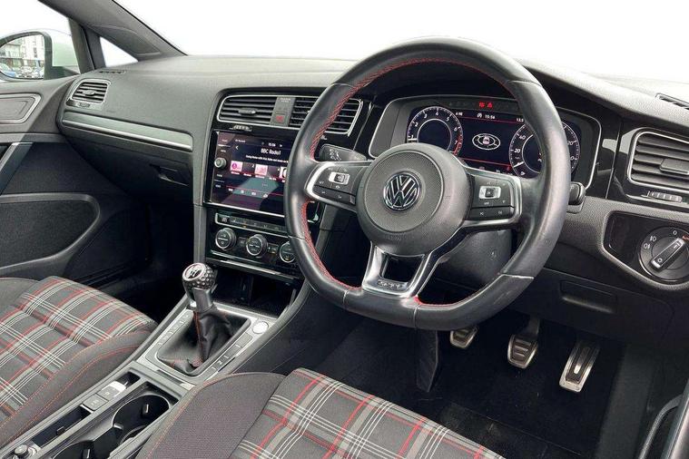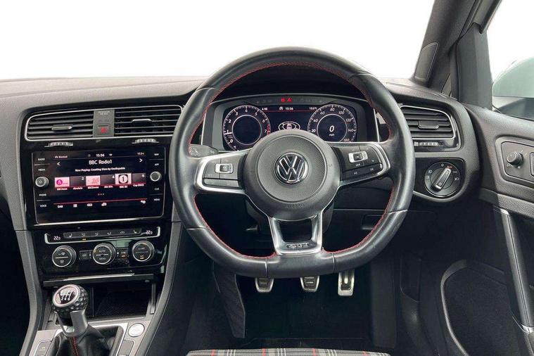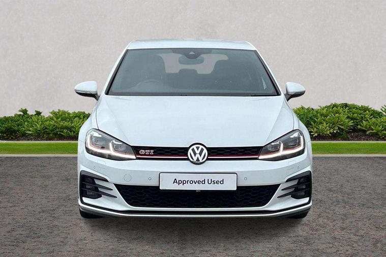 'Lights On' Reminder warning buzzer, ACC - Adaptive cruise control with front assist, forward collision warning, distance monitoring, city emergency brake and speed limiter, Bluetooth telephone and audio connection for compatible devices, Brake pad wear indicator warning light, Driver alert system, Driver profile selection, Driving Mode Selection with four preset modes - Eco, normal, sport or individual modes, Instrument cluster in white, Lane assist with dynamic light assist and traffic sign recognition, Multifunction computer with visual gear change recommendation for fuel consumption, Power assisted speed sensitive electro-mechanical steering, Push tank flap, Rear view camera, Speedo, rev counter, electronic odometer, trip, service interval display, exterior temperature and fuel gauge, Stop/start system, Warning buzzer and light for front seatbelts unfastened, Battery regeneration during braking, Limited slip differential, Lowered sports suspension, XDS electronic differential lock, Composition media system, DAB Digital radio receiver, MP3/WMA compatability, Multi device interface (MDI) with USB connection, Premium USB cable in choice of either Apple or Android smartphone compatibility, SD card slot, SMS Functionality, USB and SD card connectivity, Volkswagen media control, 3D-LED tinted rear light clusters with indicator sweep function, Black rear diffuser, Body colour door handles, Body colour door mirrors with integrated indicators, Body colour rear roof spoiler, Body colour sports bumpers, Dusk sensor + automatic driving lights, Electric front windows, Electric rear windows, Electrically adjustable and heated door mirrors, Fully galvanised body, GTI logo in red on front and back, GTI logo lettering on front wings on right and left, Heated rear windscreen, High level 3rd brake light incorporating LED Technology, Honeycomb radiator grille - black, LED daytime running lights, LED front fog lights with static cornering light function, Rear fog lamp, Rear window aerial, Rear window wash/wipe with intermittent wipe, Reflectors in all doors, Shiny black aerofoil downside, Sill extensions, Twin exhaust tailpipe, Windscreen wipers/ intermittent wipe + 4 position delay, 12V socket in luggage compartment, 3 rear headrests, 4 load lashing points in luggage compartment, 60/40 split folding rear seat backrest, Bag hook in luggage compartment x 2, Black headlining, Climate control - 2 zone electronic air conditioning with automatic air recirculation and allergy filter, Cooled glovebox, Dust/pollen filter, Front + rear carpet mats, Front centre armrest with storage compartment and two rear air vents, Front seat back storage pockets, Grab handles front x 2, rear x 2 with integrated coat hooks, Height and reach adjustable steering wheel, Illuminated door sills, Illuminated vanity mirrors, Instrument lighting white adjustable panel illumination, Interior light delay, Isofix preparation for 2 rear child seats, Leather gear knob and handbrake grip, Load through provision with rear centre armrest and cupholders x2, Luggage compartment lighting, Multifunction leather steering wheel with GTI logo and selector lever boot grip with red stitching, Overhead storage box, Stainless steel pedals, Storage box in luggage compartment, Storage compartment in roof console with cover, Storage compartments in front doors, Storage compartments in rear doors, Stowable luggage compartment cover, Sun visors, Variable boot floor, height adjustable and removable, Ambient lighting pack - Golf, Convenience Pack - Golf, Light and Sight pack - Golf, Mirror pack - Golf, 3 rear three point seatbelts, Airbags - Driver's and front passenger's, curtain airbag, Driver's knee, front side impact and passenger's airbag deactivation switch, Anti-lock Braking System (ABS) with Hydraulic Brake Assist (HBA), Automatic post collision braking system, Child locks on rear doors, Driver/Passenger optimised head restraints, Electronic parking brake with auto hold, Electronic stability control (ESC) including Electronic differential lock (EDL) and ASR (Traction control) with deactivation via infotainment system, Front ventilated disc brakes and rear disc brakes, Pre crash preventive occupant protection, Red brake calipers, Three point height adjustable front seatbelts with tensioners, Tyre pressure loss indicator, Alarm with interior protection and deactivation via infotainment system, Electronic engine immobiliser, Keyless entry with start/stop button on centre console, Remote central locking with 2 remote folding keys, Chrome plated air vent surround, Chrome plated electric mirror adjustment light switch surround, Honeycomb black decorative inserts, Piano black centre console, Steel space saver spare wheel,