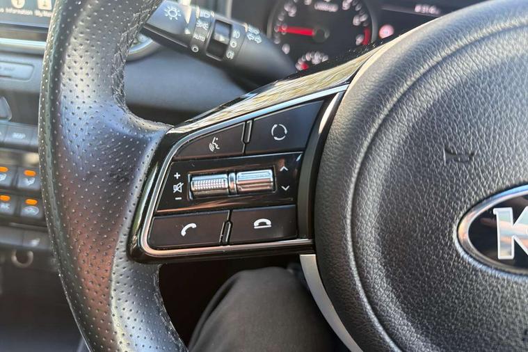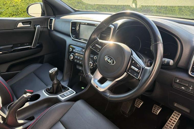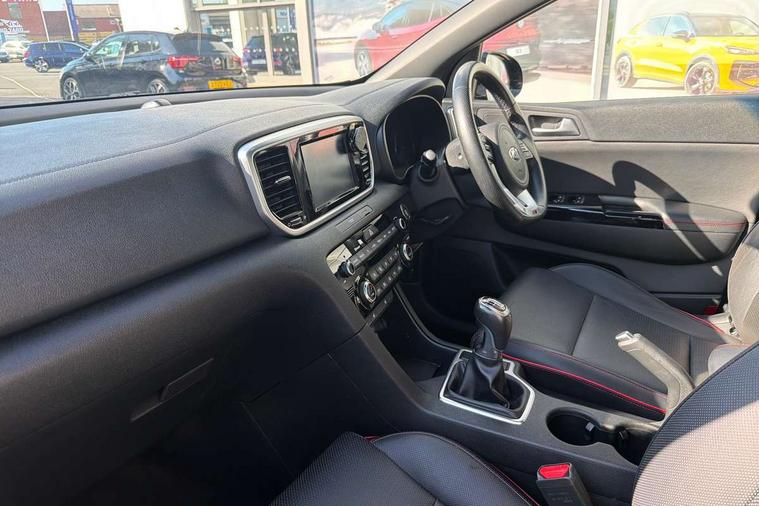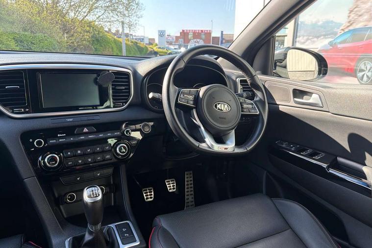 4.2" supervision colour cluster display, 7" touchscreen satellite navigation with European mapping and traffic messaging channel, Android auto with voice control, Apple car play with voice control, Bluetooth connectivity with voice control, Cruise control + speed limiter, Digital clock, Driver attention warning, Emergency stop signalling system, Front parking sensor, Kia connected services featuring TomTom live, Lane keep assist, Rear parking sensor, Reversing camera, Speed limit information, Speed sensitive power steering, Trip computer, Windscreen washer level indicator, Intelligent Stop and Go, 6 speaker audio system, Bluetooth audio streaming, DAB Radio with MP3, Steering wheel mounted audio controls, USB/iPod/auxiliary input connections, All round electric windows with drivers auto up/down function, Auto dimming rear view mirror, Automatic defog system, Automatic headlights, Black wheel arch body mouldings and side sills with dark chrome insert, Body colour door handles with chrome inserts, Body colour door mirrors, Chrome window surround, Cornering light, Dark chrome front bumper insert, Dark chrome grille surround, Electrically adjustable/heated/folding door mirrors with LED indicators, High beam assist, High gloss black blade mesh radiator grille, LED Bi-Function headlights, LED daytime running lights, LED ice cube front fog lights, LED rear lights, Privacy glass (rear side windows and rear screen), Rain sensing front wipers, Rear spoiler, Rear wiper, Roof rails, Shark fin antenna, Silver painted front and rear skid plates, Speed sensitive front wipers, Tinted glass, Trailer stability assist, Welcome and follow-me home light functionality, Wide view drivers door mirror, Windscreen wiper de-icer, 12V power in front and rear centre console, 3 x passenger assist grips, 60/40 split folding rear seat, Air filter, All-round height adjustable headrests, Black headlining, Centre cabin light, Centre console storage box, Chrome boot sill guard, D-Shaped sports leather steering wheel and perforated inserts with GT-Line logo, Door armrest in leather, Driver and front passenger side sunvisors with illuminated vanity mirrors, Drivers seat power lumbar support, Dual zone automatic air conditioning, Front and rear door storage, Front cabin LED map light with sunglasses case, Front door courtesy reflectors, Front seat and rear pockets, Front/rear centre armrests, Gear shift indicator, Glovebox illumination, Heated front and outer rear seats, Illuminated glovebox, Interior door lock/unlock function, ISOFIX Child seat top tethers and anchor fixings, Leather trimmed gearshift, Leather upholstery, Luggage area light, Luggage area load cover, Luggage net with hooks, Perforated leather sports steering wheel, Rear centre armrest with cupholder, Rear coat hooks, Rear headrests, Satin chrome interior door handles, Stainless steel pedals, Stainless Steel Scuff Plates, Tilt/telescopic adjustable steering wheel, Ventilation ducts to rear compartment, 3x3 point rear seatbelts, Active front headrests, All round 3-point seatbelts, Anti-lock braking system with electronic brakeforce distribution, Dual front side airbags, Electronic stability control with downhill brake control, ESP + traction control, Front passenger airbag cut-off switch, Front seatbelt pretensioners + load limiters, Height adjustable front seatbelts, Hill start assist control (HAC), Impact sensing auto door unlocking, Rear door child safety locks, Twin curtain airbags with roll over sensor, Twin front airbags, Tyre pressure monitoring system, Advanced anti-theft system including immobiliser and alarm, Door deadlocks, Engine Start/Stop Button with Smart Entry System, Locking wheel nuts, Speed sensitive auto door locking, Visible vehicle identification number, High gloss black centre fascia, 19" alloy Wheels B-type, Temporary spare wheel,