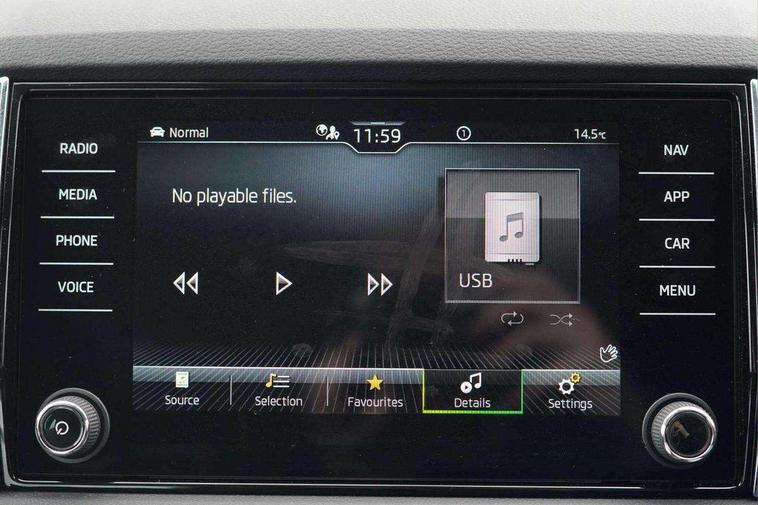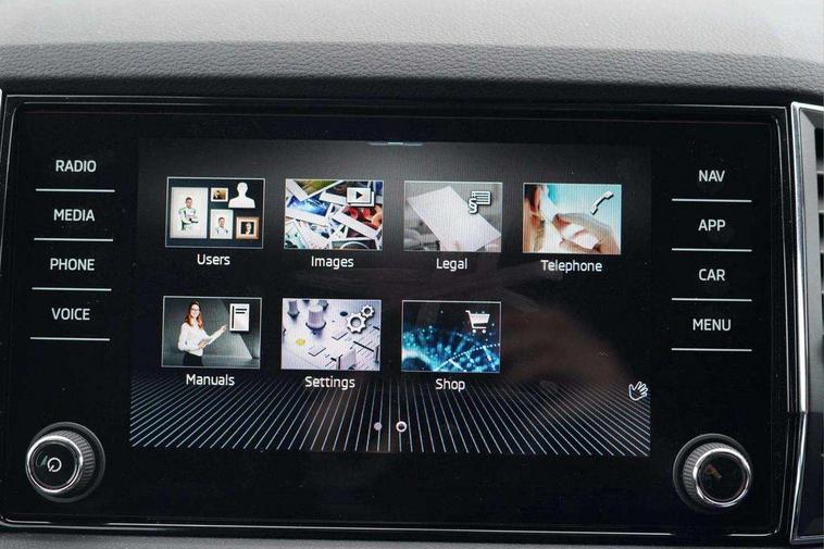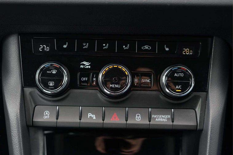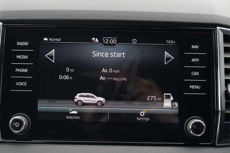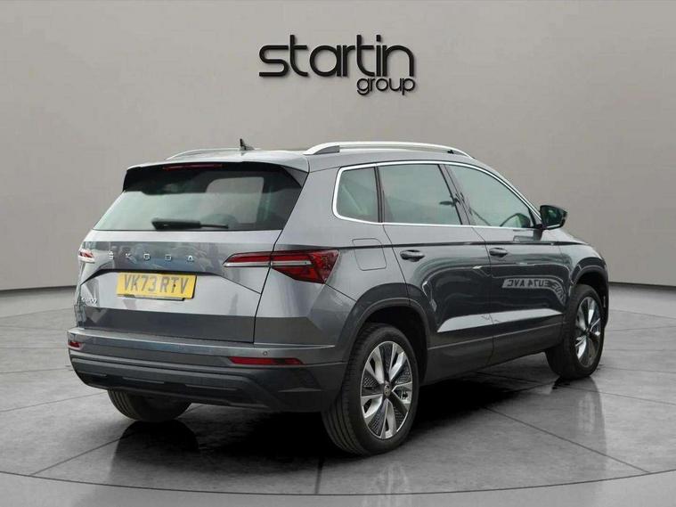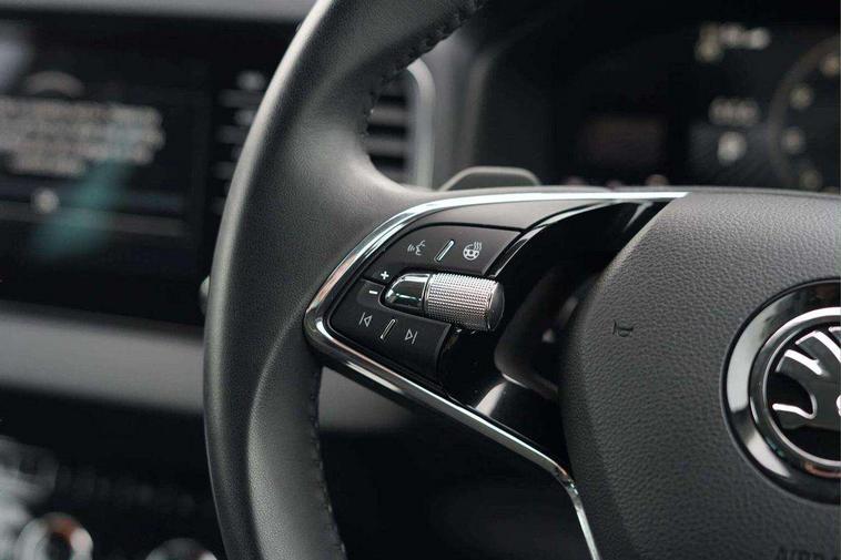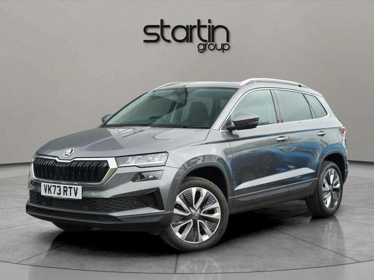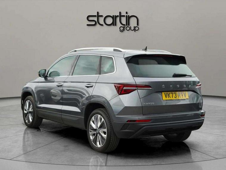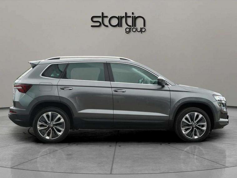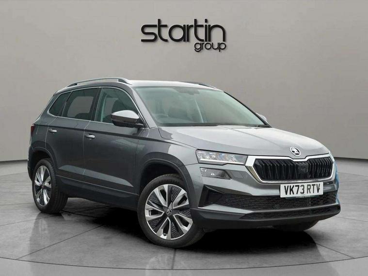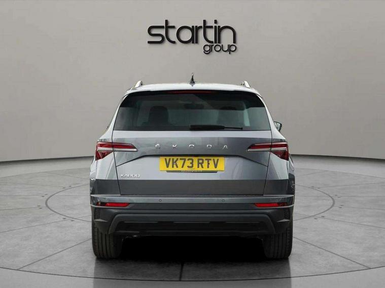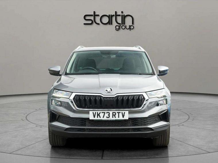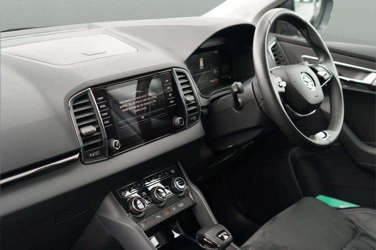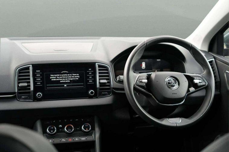 8" Digital display, Care connect, Driver fatigue sensor, Emergency services call system, Outside temperature gauge, Service interval indicator, SmartLink wireless for Apple and wired for Android, Start/stop system with regenerative braking, USB C Port x 2 in front centre console, 8 Speakers, DAB radio with Bluetooth, USB connection, Acoustic glass, Aero front windscreen wipers with intermittent function, Auto dimming rear view mirror with light and rain sensors, Black electric window control buttons, Body colour door mirrors and handles, Dynamic headlight range control with cornering light function, Electric front and rear windows with child proof lock, Heated rear windscreen, LED daytime running lights, LED rear lights with high functionality welcome effect and dynamic indicators, Light assistant (coming/leaving home/tunnel light), Plastic scuff plates, Privacy glass, Rear side wing doors, Rear spoiler, Rear window wiper with washer system and intermittent control, Safety reflectors on front doors, 1.5 litre bottle holders in driver and front passenger door panels, 12V socket in boot, 12v socket in front centre armrest with storage compartment and rear air vents, 2 spoke leather heated multifunction steering wheel with DSG paddles, 2 x Tablet holder, 3 rear height adjustable headrests, 3 seat bench in 2nd row, 4 foldable roof handles with rear coat hooks, Black floor carpet, Chrome inner door handles, Double sided boot floor, Foldable hooks in the boot, Front head restraints, Height adjustable front three point seats belts with tensioners, Height/reach adjust steering wheel, Ice scraper, Illuminated glovebox, Illuminated luggage compartment, Isofix child seat preparation for front passenger seat, Isofix child seat preparation outer rear, Manual lumbar support for front seats, Pen holder, Pollen filter, Rear boot cover, Rear reading lights, Rubbish bin door, Safety vest holder, Single front passenger seat, Storage box in upper central dashboard closed, Sunvisors with illuminated vanity mirrors, Textile floor mats, Ticket holder, VarioFlex seats with standard rear seat release, Boot pack - Karoq, Design Pack - Karoq, Parking pack - Karoq, Automatic door unlocking in case of crash, Automatic fuel cut off in case of crash, Child locks on rear doors, Driver airbag, Electronic parking brake with auto hold function, Emergency rear braking signal, ESC including ABS, MSR, ASR, EDS, HBA, DSR, RBS, MKB and traction control, Front side airbags, Hill hold control, Knee airbags, Passenger airbag with switch-off function, Pedestrian monitor, Seatbelt reminder signalisation and pretensioner for all seats, Three point seatbelts rear, Two tone horn, Tyre pressure display, Tyre pressure monitor, Alarm with interior monitoring, back up horn and tilt sensor with safe function, Electronic engine immobiliser, Keyless entry and start/stop, Remote central locking with 2 remote folding keys, Chrome framed air vents, 18" Miran alloy wheels in black, Anti-theft wheel bolts protection, Tool kit,