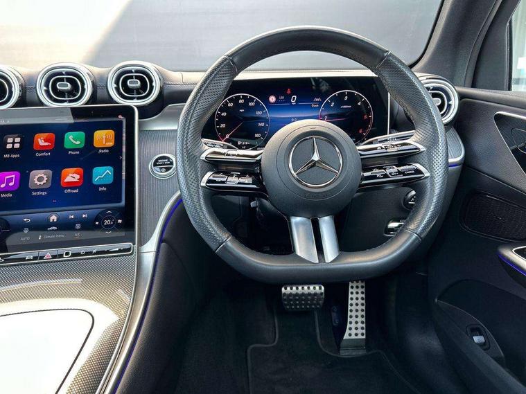 11.9" high resolution multimedia colour display, 12.3" Digital individually configurable instrument display, Acoustic presence indicator, Active lane keeping assist, Attention assist, Blind spot assist, Bluetooth interface for hands free telephone, Collision prevention assist plus, Cruise control with speedtronic variable speed limiter, Dashcam - front camera for video recording, Direct steer speed sensitive steering, DYNAMIC SELECT with a choice of driving modes (ECO, Comfort, Sport, Sport+ and Individual), eCall emergency call system, ECO start/stop function, Fingerprint scanner, Fluorescent jacket for driver, Hard disc navigation, Instrument display in miles with English lettering, MBUX augmented reality for navigation, MBUX navigation premium, MBUX voice control activated by keywords "Hey Mercedes", Mercedes me connect, Outside temperature display, Remote boot release, Remote services, Road sign recognition system, Service indicator (ASSYST), Smartphone integration, Status display for rear seat belts in instrument cluster, Traffic sign assist, Trip computer, Wireless charging, 48V Mild hybrid technology, 4MATIC permanent four wheel drive, 62 litre fuel tank, 9G TRONIC plus automatic transmission, Diesel particulate filter, Sport suspension, DAB digital radio tuner, MBUX extended functions, Mercedes benz sound system, Pre installation for Mercedes Benz Link, Adaptive brake lights, Adaptive high beam assist plus, Aluminium look running boards with rubber studs, Aluminium roof rails, AMG bodystyling front apron, rear apron and side skirts, AMG Line exterior, Auto headlights, Body colour bumpers, Body colour door mirrors, Digital light LED headlights, Electrically adjustable door mirrors, Front and rear electric windows, Headlight washers, Heat insulating dark tinted glass, Heated rear window, High level LED brake light, Integrated LED daytime running lights, LED indicator lights, LED rear fog lights, LED tail lamp, Motor way mode function and locator lighting, Noise acoustic glass, Radiator grille with Mercedes Benz pattern and integreated Mercedes star and louvre in dark grey matt with chrome inlay and black frame, Rain sensor windscreen wipers, Range adjustable headlights, Rear side wing doors, Rear wiper, Transparent Bonnet, Two chrome plated tailpipe trim elements, Variable front intermittent wipers, Welcome and follow-me home light functionality, Wider wheel arch for AMG wheels, 3 seat bench in 2nd row, 40:20:40 split folding rear seats, Ambient lighting premium, AMG line interior, Artico man-made leather upholstery, Audio and onboard settings control on multifunction steering wheel, Automatic child seat recognition sensor, Black fabric roof lining, Black floor mats with AMG lettering, Double cup holder in centre console, Easy-pack removable load compartment cover, Electrically height/reach adjustable steering column, Front centre armrest with stowage compartment, Front head restraints, Galvanised steering wheel gearshift paddles, Heated front seats, Illuminated door sill panels with Mercedes Benz lettering, Illuminated glove compartment, Instrument panel and beltlines in ARTICO manmade leather in nappa look, Multifunction sports steering wheel in nappa leather, Rear centre headrest, Rear head restraints, Rear top tether child seat ISOFIX attachment, Single front passenger seat, Sports pedals with stainless steel surfaces and rubber studs, Sports seats, Sun visors, THERMATIC 2 zone automatic climate control, Anti theft protection package - GLC, Boot comfort package - GLC, Exterior chrome package - GLC, Interior chrome package - GLC, Interior lighting pack - GLC, Keyless-Go comfort package - GLC, Memory pack - GLC, Mirror pack - GLC, Parking package with 360 degree camera - GLC, Seat comfort package - GLC, Stowage space package - GLC, USB Plus Pack - GLC, 3 rear 3 point seatbelts, Active braking assist, Anti-lock braking system (ABS), ASR traction control, Automatic front passenger airbag deactivation, Black seat belts, Brake calipers with Mercedes-Benz lettering + perforated brake discs, Braking system with larger brake discs on the front axle, Child proof door locks, Dual-stage airbags - driver and front passenger, driver knee bag and window bags for driver, front passenger and rear passengers, Electronic parking brake, Electronic stability programme (ESP) with curve dynamic assist and cross wind assist, Front and rear seatbelt reminder, Front passenger seat occupancy sensor, Front seatbelt pretensioners, Hill start assist, Tyre pressure monitoring system, Warning triangle and first aid kit, Automatic door locking, Guard 360 degree vehicle protection plus, Interior protection/immobiliser, Remote central locking, Centre console in metal structure finish, Metal structure trim, 20" AMG 5 spoke aerodynamically optimised light alloy wheels in painted black with high sheen finish, Summer tyres, TIREFIT with tyre inflation compressor,