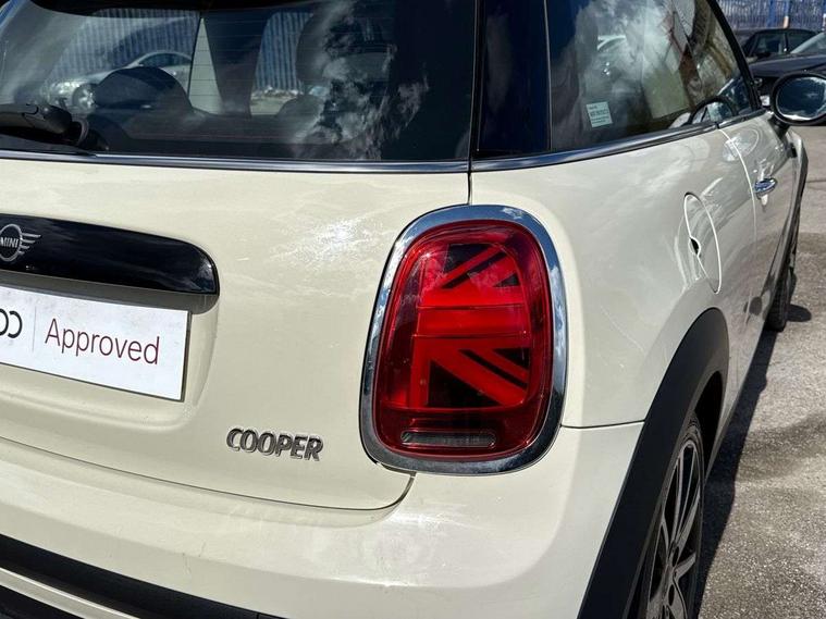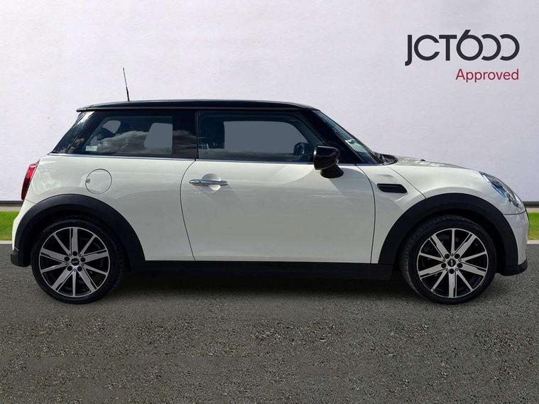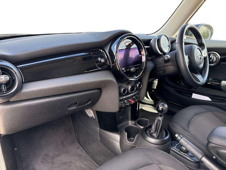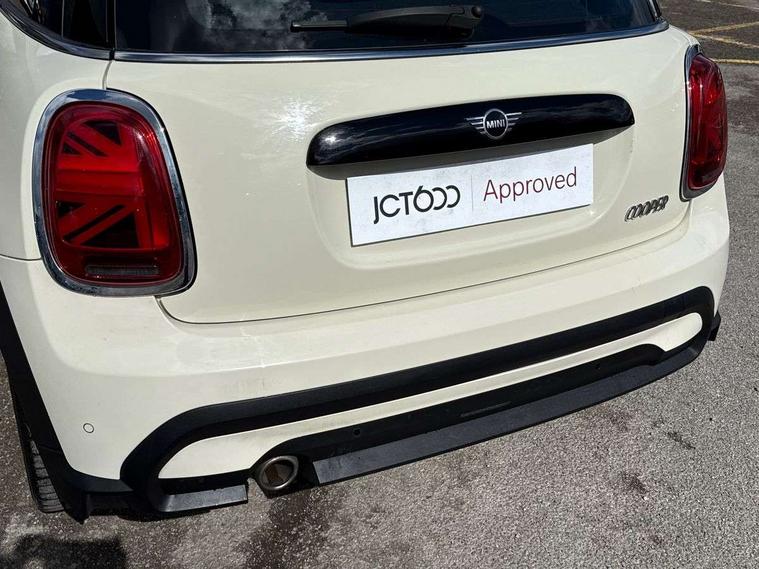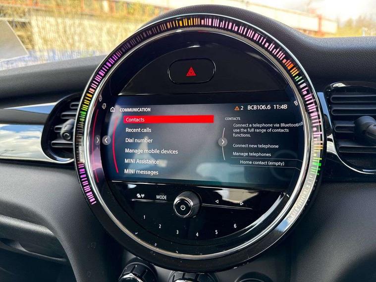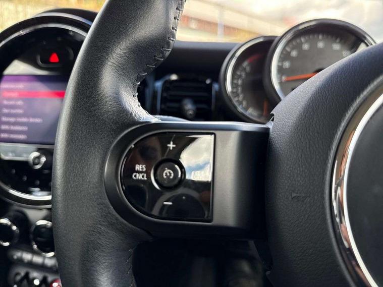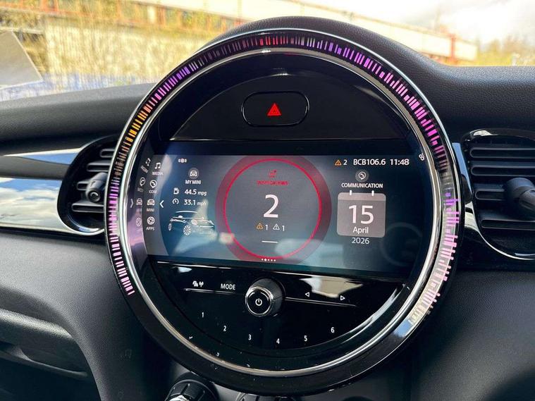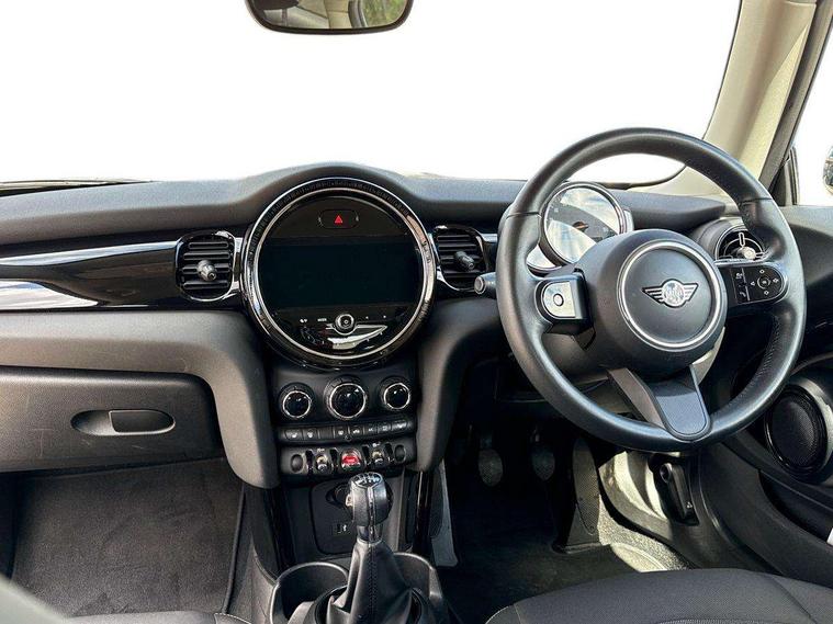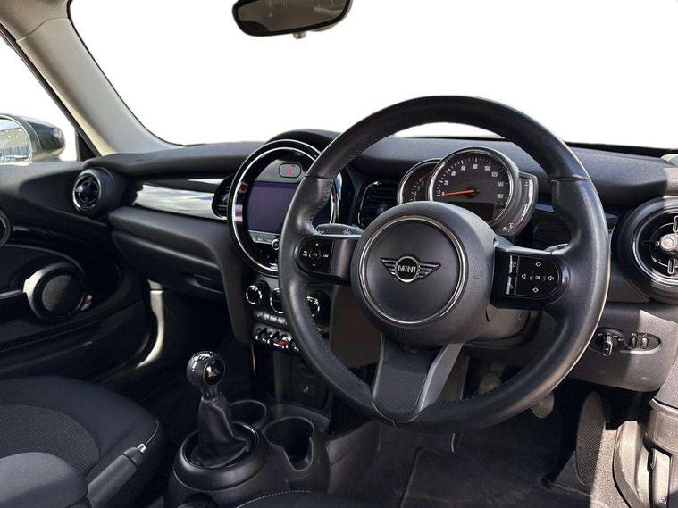 Automatic start/stop function with brake energy recuperation, Compatible mobile phone bluetooth with audio streaming, Cruise control with brake assist, Electro-mechanical speed dependant steering assistance, Flexible car sharing preparation, Instrument cluster, Mini E-call, MINI TeleServices, On board computer, Service interval indicator, 6 Speed manual transmission including gear change indicator display, Double Vanos system, Fully variable valve control, High precision injection, Performance Control, 4 speakers in front door trims and underneath front seats, 8.8" touchscreen with LED ring, FM tuner and DAB digital radio, Automatic headlight activation switch, Body colour fuel filler cap, Chrome border high gloss black slats radiator grille, Dynamic brake lights, Electric front windows, Exhaust tailpipe on left with chrome finisher, Heated rear window, Heated windscreen washer jets, LED headlight with closed ring and daytime driving lights, Metal door sill strips with MINI imprint, Model logo Cooper on right of tailgate, Rain sensor window wipers, Rear fog lights, Rear LED lights with union jack design, Rear window wiper, Side scuttle panel with integrated indicator, Sun/heat protection glass, White indicator lenses, 12V Accessory socket in centre console, 4 lashing eyes in luggage compartment, 60/40 split folding rear seat, Ambient lighting, Carbon black colour line - Knee roll and door armrest, Chrome interior highlights, Cupholders, Front and rear head restraints, Front and rear isofix with front passenger airbag deactivation, Glove compartment, Height and length steering column adjustment, Interior lighting with 12 different colours across the dashboard, underneath door bezel with illuminated laser-engraved design on central display, Leatherette gearshift lever and handbrake gaiters, LED reading lights, vanity mirror lights, front foot well light and spotlight on front seats, Manual air conditioning, Mechanical seat adjustment - forward/back & backrest for front seats and driver seat height adjust, Multifunction steering wheel, Passenger seat height adjuster, Satellite grey headlining including grab handles and clothes hooks, Sport leather steering wheel with speed limiter and audio/communication controls, Storage compartments in doors, Sunvisors with vanity mirrors, Velour floor mats, 3 point seatbelts on all four seats, 6 Airbags - front, side, head and seat belt tensioners, Anti-lock braking system (ABS), DSC - Dynamic Stability Control, Front and rear disc brakes, Single tone fanfare horn, Tyre pressure monitoring system, Alarm system with tilt sensor, monitoring doors, bonnet interior and tailgate, Electronic vehicle immobiliser, Start/stop toggle with keyless go, Piano black interior trim, Tool kit, Tyre repair kit,
