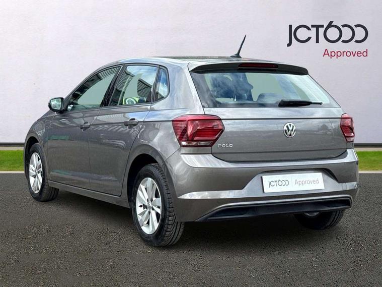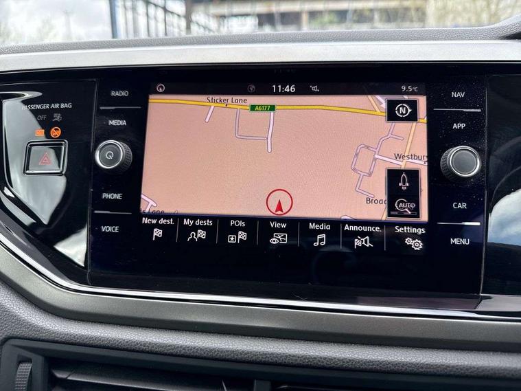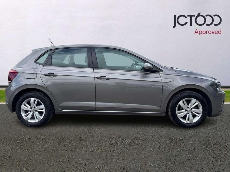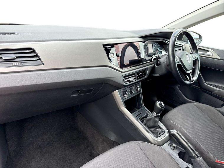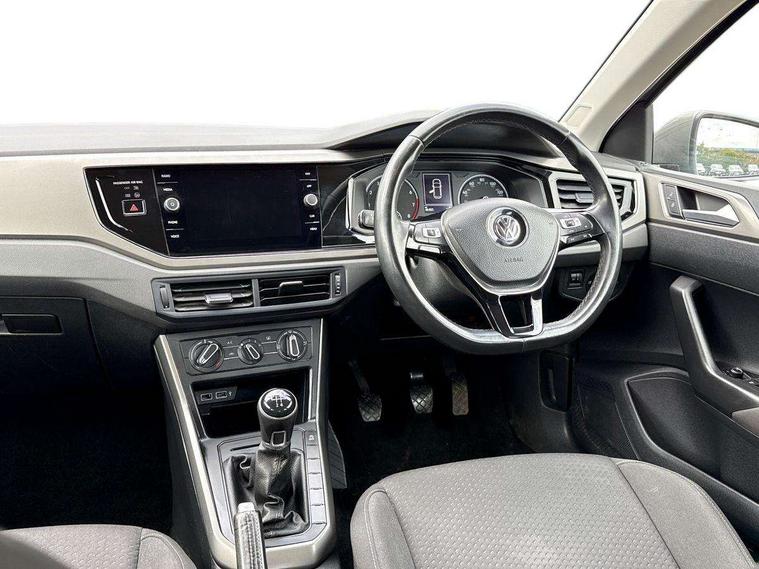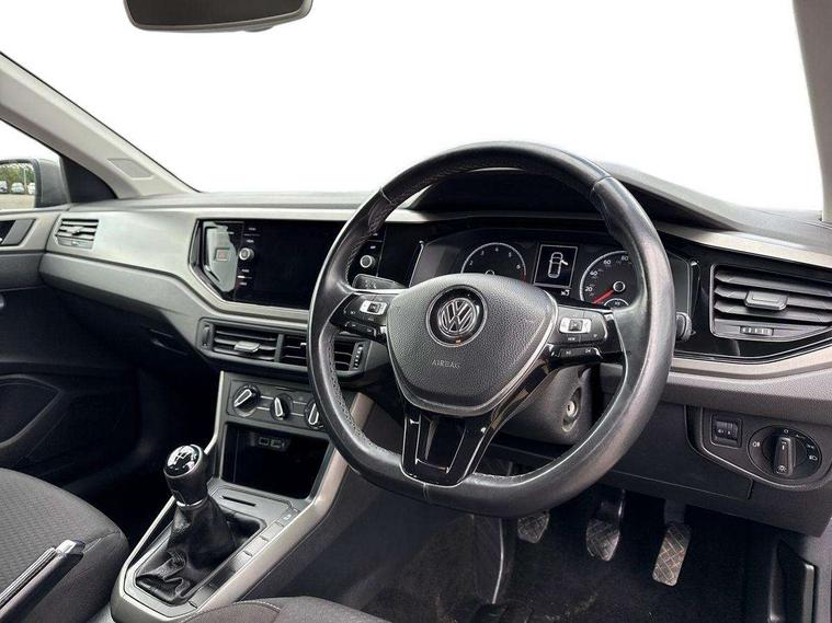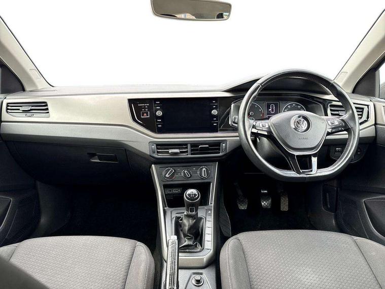 App-Connect, Bluetooth Telephone preparation, Discover navigation + European map data, Driver alert system, Multifunction colour display, PAS - speed related, Service interval indicator, Start/stop system, Trip computer, Warning buzzer and light for front seatbelts unfastened, Battery regeneration during braking, 6 speakers, Composition media system with radio, glovebox mounted CD, colour touch screen, SD card, aux-in, USB, multimedia interface, DAB Digital radio, Black grille with chrome surround, Black radiator grille with chrome insert, Body colour bumpers, Body colour door handles, Body colour rear spoiler, Body coloured side sills, Electric front windows, Front wash/wipe with interval delay, Fully galvanised body, Heat insulating tinted glass, Heated rear window with auto timer, High level 3rd brake light, LED daytime running lights, LED rear number plate lights, Rear electric windows, Rear windscreen washer and wiper with interval delay, 12V power socket in centre console, 2 bag hooks in luggage compartment, 2 cupholders, 3 rear head restraints, 3 spoke steering wheel, 4 grab handles, 60/40 split folding rear seat, Centre console storage, Chrome interior door handles, Chrome plated light switch, Driver/front passenger seat height adjustment + underseat drawers, Driver/passenger sunvisors with illuminated vanity mirrors, Dust/pollen filter, Front door pockets, Front seat backrest storage nets, Front/rear reading lights, Gear lever gaiter in high glass black trim surround, Glovebox, Handbrake grip button in chrome effect, Height/reach adjustable steering column, Instrument lighting, white adjustable panel illumination, Interior light with delay, Isofix Preparation 2 Rear child seats, Jack and tool kit, Luggage compartment cover, removable, Luggage compartment lighting, Multifunction leather steering wheel with leather gear knob/handbrake grip, Storage compartment in front doors, Storage compartment in rear doors, Storage compartment under front seats, Sunglasses holder, Variable boot floor, Variable Luggage compartment, Light and sight pack - Polo, 3 point height adj front seatbelts + pretensioners, 3x3 point rear seatbelts, ABS, Automatic post collision braking, Driver/front passenger airbag, Driver/Passenger whiplash optimised head restraints, ESP with EDL + ASR, Front and rear passengers curtain airbag system including front side airbags, Front disc brakes and rear drum brakes, Front passenger airbag deactivation, Hill hold control, Hydraulic Brake Assist (HBA), Two tone horn, Tyre pressure monitoring system, Alarm with remote central locking and interior protection, Electronic engine immobiliser, Air vents in High gloss black, Black high gloss trim, Full size spare wheel,