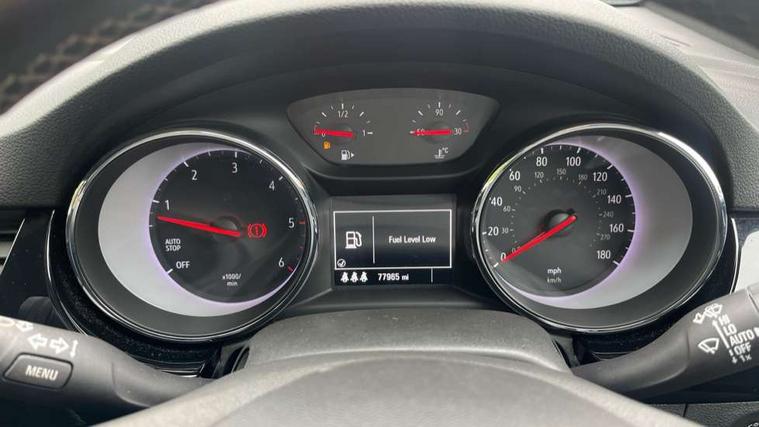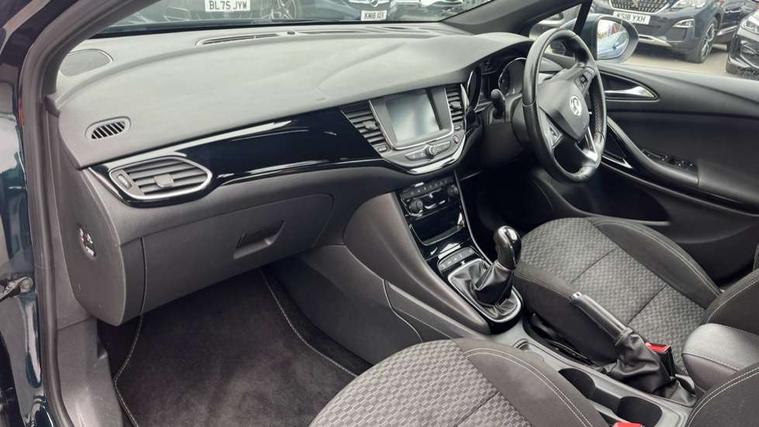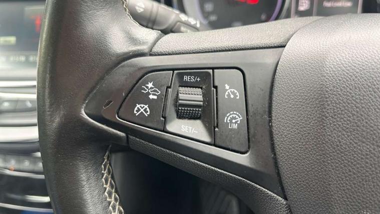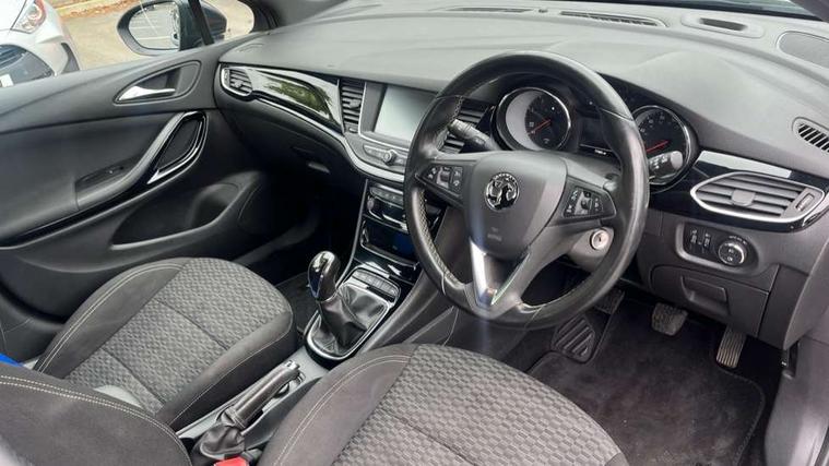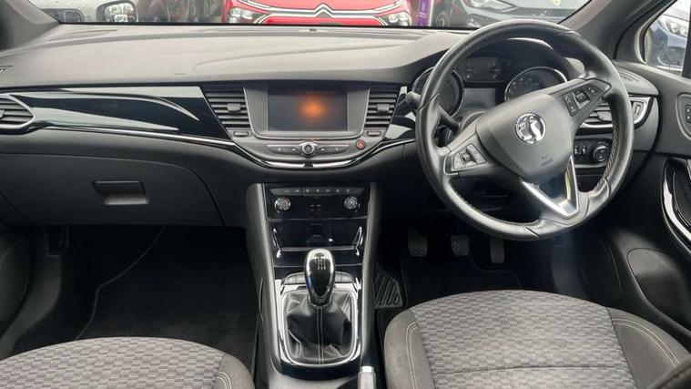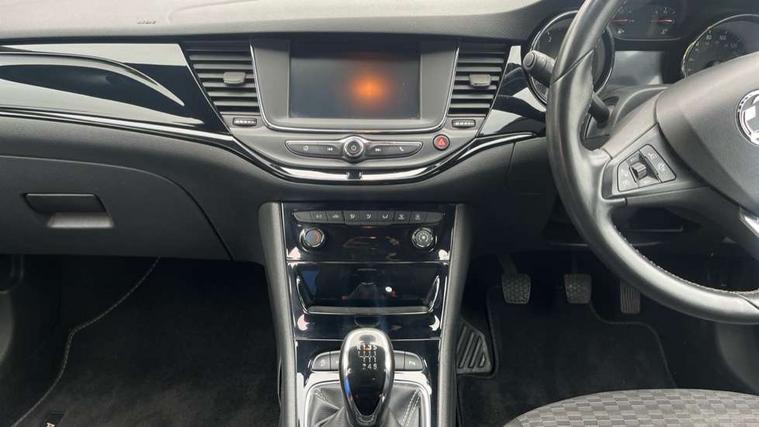 Apple car play/Android Auto, Cruise control + speed limiter, Electric speed sensitive power steering, External temperature gauge, Low fuel level warning light, Mobile App interface, Multi function trip computer, Rev counter, Service indicator, Sports switch, Vauxhall OnStar emergency assistance, Voice control system, 6 speakers, Bluetooth connectivity including audio streaming, DAB Digital radio, R4 IntelliLink with 7" touch screen, Steering wheel mounted audio controls, USB port, Adaptive brake lights, Body colour door handles, Body colour rear roof spoiler, Body coloured door mirrors, Chrome effect upper window trim, Chrome front grille, Chrome headlight surround, Door to door illumination, Electrically adjustable and heated door mirrors, Front fog lamps, Gloss black finish B pillar, Gloss black finish C pillar, Hazard warning lamps, Heated rear window, Intermittent rear wash/wipe, LED daytime running lights, One touch electric front/rear windows, Solar glass windscreen, Tinted windscreen, Trailer Stability Programme, 12V power point front, 3 spoke leather covered steering wheel, 4 Lashing eyes in boot, 60/40 split rear seats, Adjustable front armrest, Centre console with covered storage and cupholders, Chrome interior door handles, Driver's storage box, Driver/passenger sunvisors, Formula cloth upholstery, Front and rear door pockets, Front reading lights, Front red LED ambient lighting, Front seat back storage pockets, Front/rear courtesy lights, Glovebox, Height adjustable front/rear head restraints, Illuminated load area, Illuminated vanity mirrors, Isofix system on outer rear seats, Leather steering wheel, Luggage compartment cover, Reach + rake adjustable steering column, Rear reading lights, Driving assistance pack 1 - Astra, 3x3 point rear seatbelts, ABS, Child locks on rear doors, Driver/Front Passenger airbags, ESP, Front and rear curtain airbags, Front seat side impact airbags, Height adjustable front seatbelts, Hill start assist, Passenger airbag deactivate switch, Pedal release system, Seatbelt pretensioners on front/outer rear seats, Seatbelt warning, Tyre pressure monitoring system, Deadlock, Electronic engine immobiliser, Locking wheel bolts, Remote central locking, Remote ultrasonic alarm system,