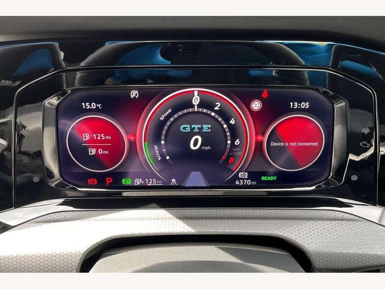 Adaptive cruise control (ACC) with speed limiter and front assist (reacting to vehicles pedestrians and cyclists), Car2X communication, Digital cockpit pro - 10.25" high resolution TFT dash display screen with customizable menus and information, Driver alert system, Dynamic road sign display, eCall - Emergency call service for SOS calls to emergency response, Electronic engine sound, Lane assist, Lane change assistant, Mobile phone interface with wireless inductive charging function, Multifunction camera for distance control, PAS, Speedo, rev counter, electronic odometer, trip, service interval display, exterior temperature and fuel gauge, Start/Stop function, Travel assist with emergency side assist with electrically foldable door mirrors, USB-C ports in the front and rear centre console with increased charging performance, Warning buzzer and light for front seatbelts unfastened, Wireless app connect, 6 metre charging cables of Type 2 mode 2/G (10A) charging cable, Petrol Particulate Filter, Type 2 mode 3 (16A) AC Cable for wallbox/chargepoints, XDS electronic differential lock for improved traction and handling, Premium USB cable in choice of either Apple or Android smartphone compatibility, Ambient lighting, exterior illuminated styling elements at the sides, Auto dimming rear view mirror, Automatic headlamp activation with Coming home and Leaving home feature, Automatic headlights, Body colour bumpers, Body colour door handles, Body colour door mirrors with integrated indicators, Body colour rear roof spoiler, Front and rear electric windows, GTE style bumpers, Heat insulating glass windscreen, Heated rear windscreen, High level 3rd brake light, Highway light, Illuminated front grille, IQ.Light - LED Matrix headlights, dynamic headlight control with advanced high beam control matrix dipped main beam + LED DRL + 22 LED lights, LED front fog lights with 5 honeycomb design, LED License plate illumination, LED rear combination lamp inlcuding dynamic turn signal, Rain sensor, Rear fog light on one side and reversing lights on both sides, Rear side wing doors, Rear tinted glass 65% light absorbing from B pillar backwards, Rear windscreen washer and wiper with interval delay, Remote electrically heated, adjustable and foldable door mirrors, including door mirror puddle lights and reverse activated kerb-view adjustment on pa, Welcome light, 12V socket in front centre console, 12V socket in luggage compartment, 3 rear head restraints, 3 seat bench in 2nd row, 3 zone climate with controls in the rear, Aluminium gear knob, Ambient lighting - Customisable 30 colour ambient lighting, Brushed stainless steel pedals, Chrome plated surround to electric mirror button, window switch and air vent surrounds, Drivers and front passengers sun visors with vanity mirrors, Front + rear carpet mats, Front centre armrest with storage compartment, Front cupholders x 2, Front passenger seat, Front reading lights x 2 incorporating LED technology, Front seat lumbar support adjuster, Front sports seats, Glovebox, Height adjustable front seats, Height and reach adjustable steering wheel, Isofix child seat preparation for 2 rear child seats and front passenger seat, Leather wrapped multifunction sports heated steering wheel with paddle shift, Leatherette door armrests and centre armrest, Luggage compartment lighting, Removable luggage compartment cover, Soul black instrument panel, Soul black roof lining, Split folding backrest with centre armrest and unsplit rear seat bench, Woven fabric storage compartments in front and rear doors, 3 point height adj front seatbelts + pretensioners, 3 rear three point seatbelts, ABS, Child locks on rear doors, Driver and front passenger airbag with front passenger airbag deactivation, Drivers and front passengers safety optimised head restraints, Electronic parking brake with auto hold, ESC (Electronic Stability Control), Extended pedestrian protection measures, Front and rear passengers curtain airbag system including front side airbags, Front centre airbag, Front disc brakes, Front side airbags with curtain airbags, Rear disc brakes, Two tone horn, Tyre pressure monitoring system, Alarm with interior protection and deactivation via infotainment system, Electronic engine immobiliser, Keyless entry with start/stop button on centre console, Black metal chrome decorative inserts in dash and front door trim panels, High gloss black centre console, Tyre mobility kit Includes 12V compressor and tyre sealant,