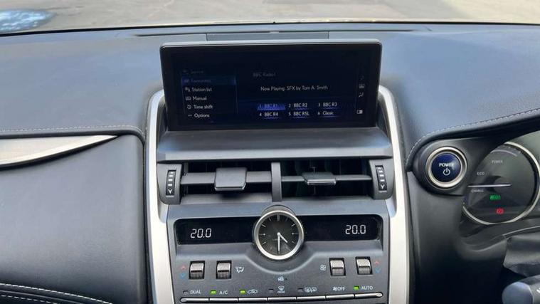 4 driving modes EV/Eco/Normal/Sport, 8" display screen with remote touch interface, Analogue clock, Apple car play/Android Auto, Bluetooth telephone connectivity, Electric speed sensitive power steering, Intelligent parking sensors - 4 front and 4 rear, Lane change flasher function, Lexus link connected services with available optional wifi, Lexus navigation system, Push button starter, Reversing camera, All wheel drive system, Vehicle Dynamics Integrated Management (VDIM), Vehicle Stability Control (VSC), 2 USB ports, 8 Speakers, AUX socket with VTR compatibility, CD player, DAB Digital radio, Auto dimming interior rear view mirror, Bi LED headlight with Auto high beam, Body adhesive, laser screw welding and laser brazed roof structure, Front and rear one touch power windows, with anti-jam protection, Heated and auto folding door mirrors with turn indicators, Hidden exhaust pipe, LED brake lights and rear lights with emergency brake signal, LED daytime running lights, LED front and rear sequential indicators, Rain sensor windscreen wipers, Roof rails, 12V accessory port centre console and luggage compartment, 2 cupholders in front centre console, 2 map pockets in the rear, 2 x fixed shopping bag hooks in boot, 2 x sun visors with vanity mirror and lamp, 6 tie down hooks in boot, 60/40 split folding rear seat, 8 way driver/passenger electrically adjustable front seats, Adjustable rear seat backrest, Card holder installed in driver and passengers sun visors, Centre armrest with storage box, Dual climate control air conditioning system, Front and rear head restraints, Front and rear textile carpet mats, Heated front seats, Leather gear lever, Leather steering wheel with paddle shifts, LED interior illumination, Rear air vents, Rear centre armrest with 2 cupholders, Self charging hybrid, Tahara leather upholstery, Whiplash Injury Lessening (WIL) feature (active headrest) for seats, 2 x Isofix child rear seat restraints, 3 point ELR front seatbelts with pretensioners, 3x3 point rear seat belts, ABS, Adjustable seat belt anchor points, Driver and front passenger 2 stage airbag, Driver/front passenger side airbags, Drivers knee airbag, EBD + Brake Assist, ECB (Electronically Controlled Brake System), Electronic parking brake, Front and rear curtain shield airbags, Front passenger seat cushion airbag, Hill start assist, Hybrid automatic with 6 stage sequential shift and kick down switch, Lexus safety system - dynamic radar cruise control, pre collision system day and night, lane tracing assist, road sign, automatic high beam, OTA, Passenger airbag cut-off device, Traction control, Tyre pressure warning, 2 x remote key fobs, Anti-theft system with siren, alarm, intrusion sensor, glass breakage sensor, tilt sensor and engine immobiliser, Locking wheel nuts, Speed sensitive auto door locking, Two motion door lock with double lock, VIN Window etching, Silver inlays, Space saver spare wheel,