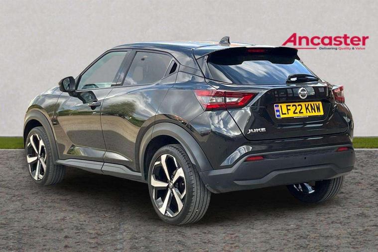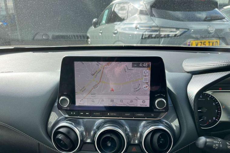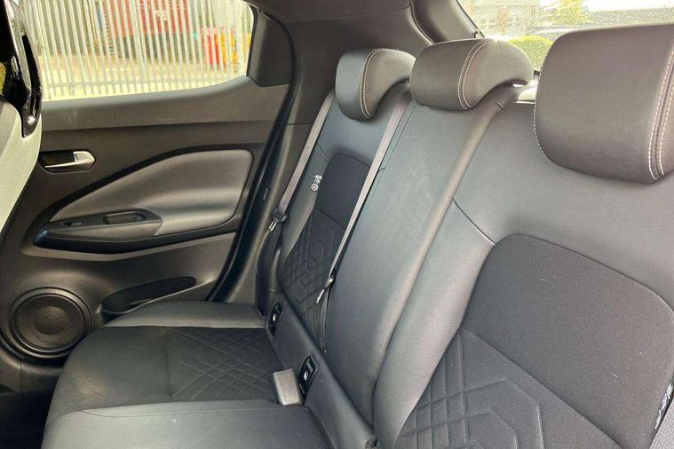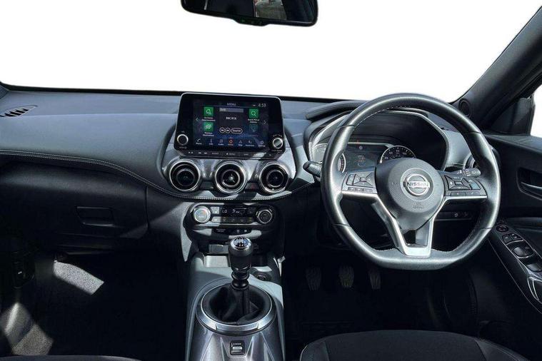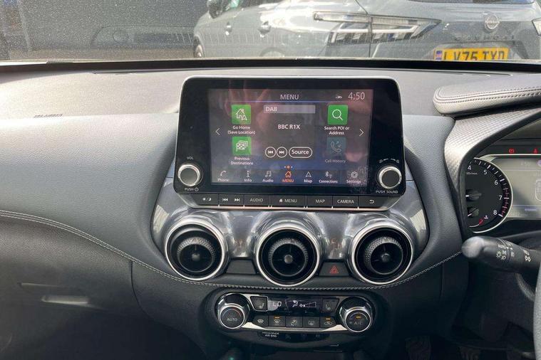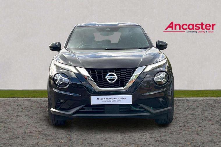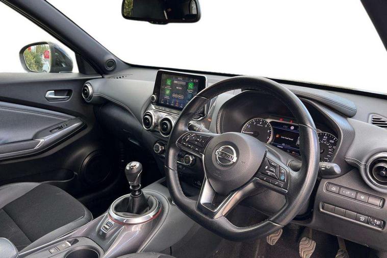 7" full colour TFT screen combimeter, Apple CarPlay and Google Android auto, Drive modes select (Eco, normal and sport), eCall emergency call system, Emergency and breakdown call, Front parking sensor, Idle start/stop system, Intelligent lane intervention, Lane departure warning system, Nissan connect 8" touch screen entertainment system, Nissan connect nav with TomTom traffic, Nissan connect services and Wifi connection, Outside temperature sensor, Power Steering, Rear parking sensor, Traffic sign recognition, Trip computer, Voice recognition, Gasoline particulate filter, Bluetooth system, USB, Aux-in and 12V socket, Bose personal plus audio system with 8 speakers(4 speakers and 2 headrest speaker for driver and passenger seats), Bose personal sound stage control, DAB Digital radio, Rear console USB port, Auto dimming interior rear view mirror, Auto headlights, Automatic hazard signal with emergency stop signal, Body colour bumpers, Body colour door handles, Electrically adjustable door mirrors with integrated indicators, Follow me home headlights, Front and rear electric window with one touch driver window, Heated and auto folding door mirrors, High beam assist, LED daytime running lights, LED front fog lights, LED headlamps, LED rear fog lamp, LED rear lamps, Rain sensor windscreen wipers, Rear privacy glass, Rear side wing doors, Rear wiper, Thermaclear heated windscreen, Three blink turn signal, 3 height adjustable rear headrests, 3 seat bench in 2nd row, 60/40 split folding rear seat, Automatic climate control, Card holder on driver sunvisor, Cloth/Synthetic leather upholstery, Door ambient lighting, Driver and passenger sliding and reclining seats, Driver seat back pocket, Driver side rear coat hanger, Driver/passenger sunvisors and vanity mirrors, Front and rear cabin lights, Front armrest, Front door pockets with bottle holders, Front head restraints, Front passenger isofix child seat anchorage point, Front/rear passenger grab handles, Gear console ambient circle lighting, Grey synthetic leather kneepad, Heated front seats, Height adjustable driver's seat, Height adjustable passenger seat, Internal chrome door handles, Leather gearshift knob, Leather steering wheel, Luggage board, Luggage space lighting, Monoform sporty seats, Multifunction steering wheel, Passenger seat back pocket, Rear door bottle holders, Single front passenger seat, Telescopic steering wheel adjustment, Two cupholders in front centre console, Two rear isofix child seat anchorage points with top tether, Welcome light and console tray ambient lighting, Advanced safety shield pack - Juke, ABS with EBD and brake assist, Active ride control, Active Trace Control, Driver and passenger airbags, Driver and passenger side airbags, Electric handbrake with auto hold function, Electronic Stability Programme (ESP), Front and rear curtain airbags, Height adjustable seatbelts, Hill start assist, Intelligent emergency braking with pedestrian and cyclist recognition, Rear door child safety locks, Seatbelt reminder for driver/front passenger and rear seats, Single tone horn, Three 3 point rear seatbelts, Traction control, Tyre pressure monitoring system, VDC Dynamic Vehicle Control, Ventilated rear brake discs, Alarm, Immobiliser, Intelligent Key with push button starter, Remote central locking,