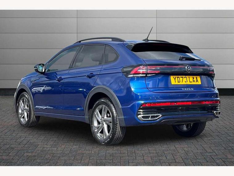 App-Connect including App-Connect Wireless, Digital cockpit pro - 10.25" high resolution TFT dash display screen with customizable menus and information, Driver alert system, Driving profile selection, e-Call (emergency call), Power Steering, Travel assist including emergency assist, Washer fluid level indicator, Wireless Charging including Bluetooth, Start-stop system with battery regeneration (recuperation - energy recovery during braking), XDS electronic differential lock for improved traction and handling, Digital radio reception (DAB+), Diversity antenna for FM reception, WeConnect plus, Aspherical driver's exterior mirror, Auto headlights, Body coloured bumpers, Body coloured exterior mirror housings and door handles, Bumpers in R-Line style, Electric windows, External USB type C socket and charging sockets, Front scuff plates with R-Line logo, LED rear combination lamp, LED third brake light, Left convex exterior mirror, Power folding adjustable/heated exterior mirrors and front passenger exterior mirror lowering function, Rear fog light on one side, reversing light on both sides, Rear side wing doors, Rear wash/wipe with intermittent wipe setting, 12V socket in centre console, 2 front reading lights, 3 rear head restraints, 3 seat bench in 2nd row, Air care climatronic air conditoning system with active combination filter and 2-zone temperature control, Ambient lighting with logo projection, Black carpets, Black roof lining, Child seat anchor for child seat system i-Size, 2x top tether and child seat anchor in front on front passenger side, Chrome bezel for instrument cluster, vents, door handles + gear shift, Driver and front passenger seat height adjustment, Front + rear carpet mats, Front centre armrest, Front footwell illumination, Front sports comfort seats, Height and reach adjustable steering wheel, Interior ambient lighting and surround lighting, Karoso artvelours cloth upholstery, Leather trimmed gear knob, Leather wrapped multifunction steering wheel, Luggage compartment floor, Luggage compartment light, Lumbar support for driver's and front passengers seat, Seat covers in grey + titanium black, Single front passenger seat, Split folding backrest with centre armrest and unsplit rear seat bench, Stainless steel pedals, Storage compartment under front seats, Sun visors with illuminated vanity mirrors, Chrome Package - Taigo, Drivers assistance pack - Taigo, Light and Sight pack including High beam assist - Taigo, 2 x 3-point seatbelts/outer rear seats with ECE label, 3-point seat belts in front with pretensioner and height adjustment, 3-point seatbelt for centre rear seat, Driver and front passenger airbags with front passenger airbag de-activation, front side and curtain airbags, Driver and front passenger safety-optimised head restraints, Electronic stability control, Extended and predictive pedestrian/ cyclist protection, Front and rear disc brakes, Front curtain and side airbags with center airbag, Hill start assist, Manual rear child locks, Single tone horn, Tyre pressure loss indicator, Anti-theft alarm system with interior monitoring, backup horn, and towing protection, Anti-theft wheel bolts, Grey anodised matte decorative inserts in dash and front door panels, Low rolling resistance tyres,