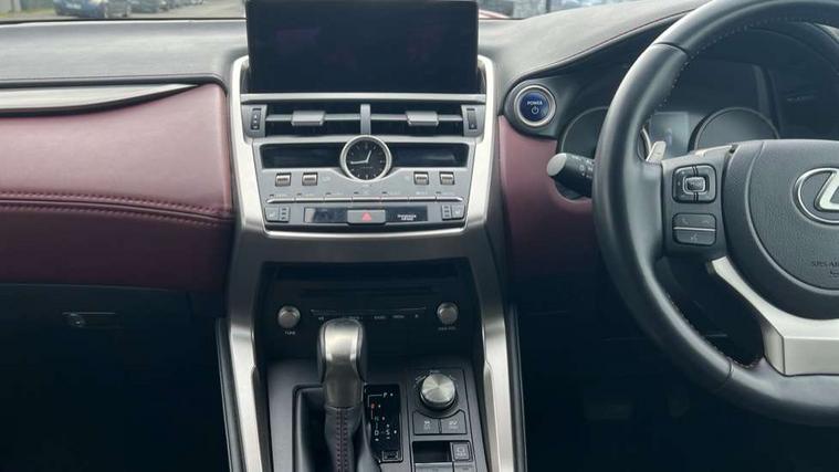 4 driving modes EV/Eco/Normal/Sport, 8" display screen with remote touch interface, Analogue clock, Apple car play/Android Auto, Bluetooth telephone connectivity, Electric speed sensitive power steering, Intelligent parking sensors - 4 front and 4 rear, Lane change flasher function, Lexus link connected services with available optional wifi, Lexus navigation system, Push button starter, Reversing camera, All wheel drive system, Vehicle Dynamics Integrated Management (VDIM), Vehicle Stability Control (VSC), 2 USB ports, 8 Speakers, AUX socket with VTR compatibility, CD player, DAB Digital radio, Auto dimming interior rear view mirror, Bi LED headlight with Auto high beam, Body adhesive, laser screw welding and laser brazed roof structure, Front and rear one touch power windows, with anti-jam protection, Heated and auto folding door mirrors with turn indicators, Hidden exhaust pipe, LED brake lights and rear lights with emergency brake signal, LED daytime running lights, LED front and rear sequential indicators, Rain sensor windscreen wipers, Roof rails, 12V accessory port centre console and luggage compartment, 2 cupholders in front centre console, 2 map pockets in the rear, 2 x fixed shopping bag hooks in boot, 2 x sun visors with vanity mirror and lamp, 6 tie down hooks in boot, 60/40 split folding rear seat, 8 way driver/passenger electrically adjustable front seats, Adjustable rear seat backrest, Card holder installed in driver and passengers sun visors, Centre armrest with storage box, Dual climate control air conditioning system, Front and rear head restraints, Front and rear textile carpet mats, Heated front seats, Leather gear lever, Leather steering wheel with paddle shifts, LED interior illumination, Rear air vents, Rear centre armrest with 2 cupholders, Self charging hybrid, Tahara leather upholstery, Whiplash Injury Lessening (WIL) feature (active headrest) for seats, 2 x Isofix child rear seat restraints, 3 point ELR front seatbelts with pretensioners, 3x3 point rear seat belts, ABS, Adjustable seat belt anchor points, Driver and front passenger 2 stage airbag, Driver/front passenger side airbags, Drivers knee airbag, EBD + Brake Assist, ECB (Electronically Controlled Brake System), Electronic parking brake, Front and rear curtain shield airbags, Front passenger seat cushion airbag, Hill start assist, Hybrid automatic with 6 stage sequential shift and kick down switch, Lexus safety system - dynamic radar cruise control, pre collision system day and night, lane tracing assist, road sign, automatic high beam, OTA, Passenger airbag cut-off device, Traction control, Tyre pressure warning, 2 x remote key fobs, Anti-theft system with siren, alarm, intrusion sensor, glass breakage sensor, tilt sensor and engine immobiliser, Locking wheel nuts, Speed sensitive auto door locking, Two motion door lock with double lock, VIN Window etching, Silver inlays, Space saver spare wheel,