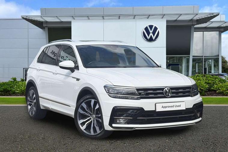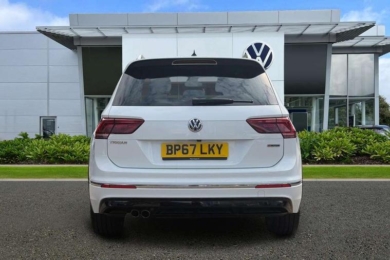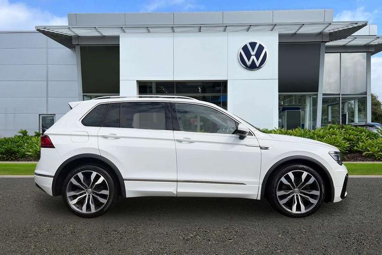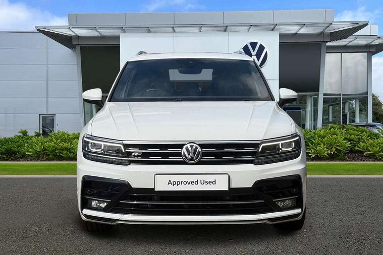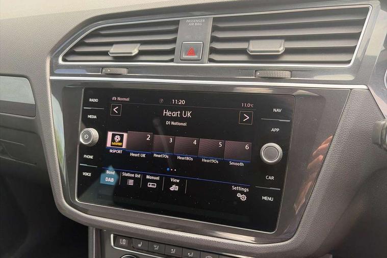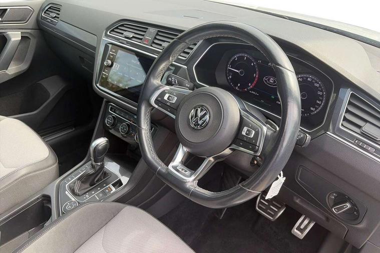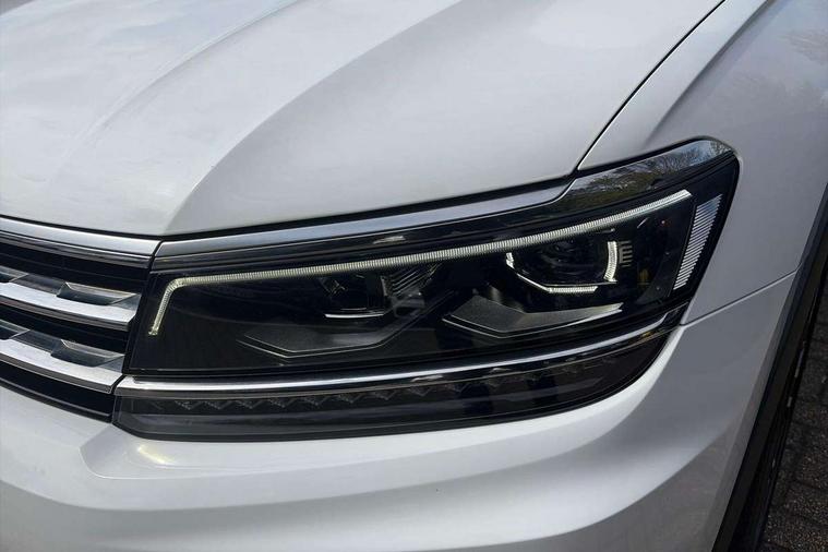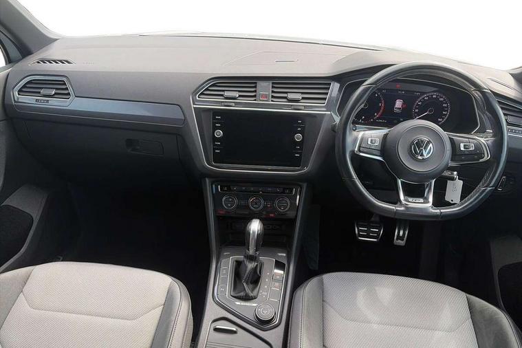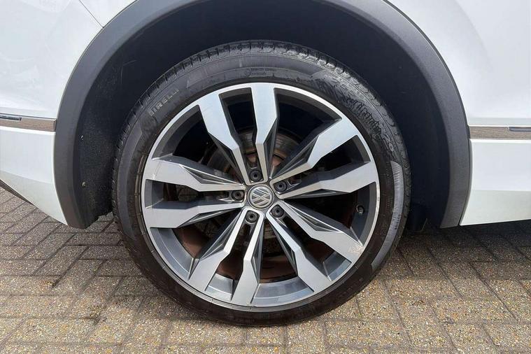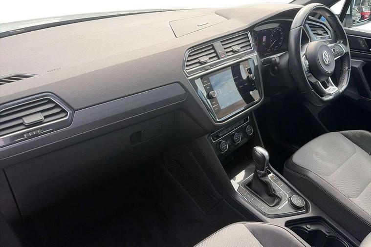 App-Connect, Active information display, Adaptive cruise control, Bluetooth phone integration system, Distance control assist, Instrument cluster, Lane assist, Low washer fluid warning light, Outside temperature display, Progressive power assisted steering, Service interval indicator, Speed limiter, Warning lights, Diesel particulate filter, XDS electronic differential lock, 2x USB sockets in front, Aux-in socket, DAB Digital radio, SD card slot, Auto dimming interior mirror, Automatic activation of hazard warning lights, Body colour door handles, Body colour door mirrors, Body colour rear spoiler, Body colour side skirt, Body coloured bumpers, Chrome side window surrounds, Chrome trimmed radiator grille, Coming/leaving home lighting function, Dusk sensor + auto driving lights, Elec heated + adjust door mirrors, Electric folding door mirrors, Electric panoramic sunroof with sunblind, Front and rear electric windows, Heated rear window, LED headlights with dynamic light assist daytime running lights and cornering front fog lights, LED rear lights, Piano black rear diffuser, R Line body kit, Rain sensor windscreen wipers, Rear windscreen washer and wiper with interval delay, Silver roof rails, Silver under body guard, Tinted windows (B pillar backwards), Windscreen wipers/ intermittent wipe + 4 position delay, 12V Accessory socket in centre console, 3 rear headrests, 3 zone climate control, 4 load lashing points, 40:20:40 split folding rear seats, Bag hook in luggage compartment, Black headlining, Driver + front passenger lumbar support, Foldable passenger seatback, Front + rear carpet mats, Front centre armrest with 12v socket, Front centre armrest with storage + rear 2 air vents + cupholders, Front seatback folding tables, Height/reach adjust steering wheel, Illuminated driver/passenger vanity mirrors, Illuminated scuff plates, Interior light with delay, Isofix Preparation 2 Rear child seats, Leather gear knob, Leather multifunction steering wheel with paddle shift, Load through provision with 2 cupholders when folded, Lockable cooled glovebox, Luggage compartment lighting, Luggage compartment side storage, Map pockets on front seats, Passenger seat height adjuster, Rear cupholders, Removable luggage cover, Sliding/reclining rear seats, Stainless steel pedals, Storage compartment in driver's door, Storage compartment in passenger's door, Storage tray on dashboard, Sunglasses storage, Variable boot floor, Ambient lighting pack - Tiguan, 3 rear 3 point seatbelts, ABS+EBD+Brake assist, Active bonnet, Active pedestrian safety system, Curtain airbags, Driver/Front Passenger airbags, Driver/Passenger whiplash optimised head restraints, Drivers knee airbag, DTC - Drag torque control, Electronic parking brake with auto hold, ESP with EDL + ASR, First aid kit, Front assist including city emergency braking, Front side airbags, Head airbag system, Height adjustable front 3 point seatbelts + pretensioners, Hill hold control, Passenger airbag deactivate switch, Passenger knee airbag, Pre crash system, Rear side airbags, Seatbelt warning lamp and buzzer, Two tone horn, Warning triangle, Alarm with interior protection, Electronic engine immobiliser, Remote central locking with 2 remote folding keys, Chrome door trim inserts, Piano black interior trim, 20" Suzuka alloy wheels + anti theft wheel bolts, Steel space saver spare wheel,