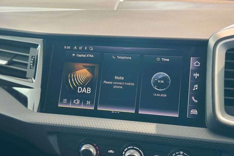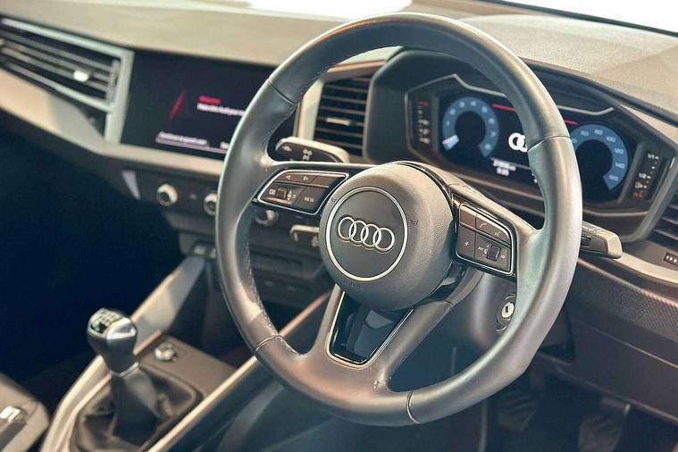 10.25" Digital instrument cluster display classis style instrument dials + speed, odometer, time, outside temperature, telephone menu + fuel level warning, Advanced driver attention and drowsiness monitor, Audi drive select, Audi remote connect and control, Audi smartphone interface, Bluetooth interface, Camera based traffic sign recognition, Cruise control, Driver's information system, Electromechanical power steering, Emergency e-call, Lane departure warning system, Rear parking sensor, Service interval indicator, Speed limiter, Start stop system with recuperation, Voice control system, Washer fluid level indicator, Dynamic suspension, 2 x USB type C connection points, 6 loudspeakers, DAB Digital radio, MMI radio plus with 10.1" colour MMI display screen and MMI touch, Auto dimming rear view mirror, Body coloured bumpers, Body coloured door mirrors, Electric front and rear windows, Electrically adjustable, heated, folding door mirrors with integrated LED side indicator, Front side air inlets in grained matt black and C frame in anthracite black, Headlight cleaning system, Heat insulating glass windscreen and side windows, Heated rear windscreen, High level LED brake light, LED daytime running lights, LED headlights with range control LED rear lights + dynamic rear indicators, Radiator grille and rear diffuser in matt anthracite black, Radiator protective grille frame in matt aluminium silver, Rain and light sensors, Rear fog lights, Rear side wing doors, Rear wiper, Side front spoiler lips in grained matt black, 12V socket in centre console with two cup holders, 3 rear seats with headrests, 3 seat bench in 2nd row, 3 spoke leather multifunction plus steering wheel, 40:60 Split folding rear seat or fully collapsed, Black velour floor mats, Front door sill trims with aluminium inlay, Front head restraints, Front passenger seat, Grey cloth headlining, Height and reach adjustable steering wheel, Interior lighting includes roof module, front and rear reading lights and right luggage compartment lighting, ISOFIX child seat mounting for front passenger and outer rear seats including top tether attachment point of outer rear seats, Leather gear knob with aluminium trim, Leather handbrake grip, Manual air conditioning, Manual height adjustable for driver and front passenger seat, Manually adjustable lumbar support in front seats, Novum cloth upholstery with front sport seats, Luggage compartment pack - A1, 3x3 point rear seatbelts, Audi pre-sense front with pedestrain and cyclist recognition, Brake assist function, Driver and front passenger airbag with front side and head airbags, Electronic Stability Control including ABS, EBD, ASR and EDL, Front passenger airbag deactivation switch, Hill hold assist, Manual rear child locks, Seatbelt height adjustment for front seats, Seatbelt monitoring, Tyre pressure loss indicator, Warning triangle and first aid kit, Anti theft alarm, Anti theft wheel bolts, Immobiliser, Remote control key with safelock, Aluminium trim for control switches, air vents and digital instrument cluster, Black dashboard, Silver grey accent surfaces insert of air vents, interior door handle recesses and centre console in diamond paint finish, Slate grey inlays polygon structure in fine paint finish,
