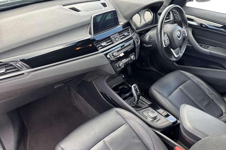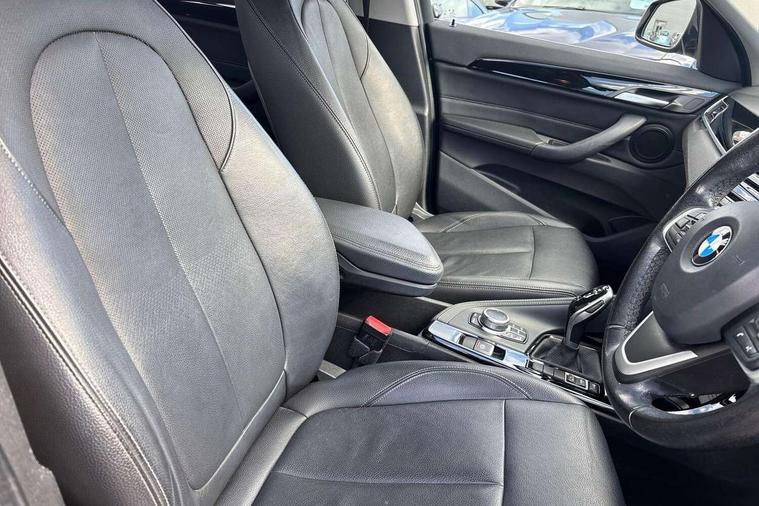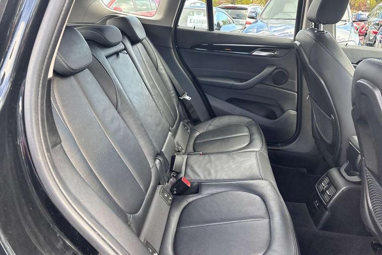 Active Guard incl speed limiting and lane departure functions with auto steering, and front collision warning with brake intervention, Ambient temperature display, Attentiveness assist, Automatic tailgate opening, BMW Online services, BMW remote services, BMW Teleservices, Brake pad wear indicator in front and rear, Lights on warning, Lights on warning by audio warning signal when ignition is switched off, On board computer, Outside temperature gauge, Personal Profile - automatic lock when driving away selectable, Service interval indicator, Servotronic PAS, Speed limiter, Stop/start button, Tyre puncture warning system, Drive performance control with ECO PRO comfort + sport mode, Electronic differential lock, High precision injection, Performance Control, 2 USB Power socket for rear seat, BMW professional radio with CD player, DAB Digital radio, USB connection located in centre console, USB/audio interface, Adaptive LED Headlights, Adjustable headlights, Body colour bumpers, Body colour door handles, Body colour door mirrors, Chrome tailpipe finisher, Clear lenses direction indicator lights, Direction indicator side lights integrated exterior mirrors, Dynamic brake lights, Electrically adjustable and heated door mirrors, Exclusive door sill finishers, Fingertip control / anti-trap function on electric window, Follow me home headlights, Front and rear electric windows, Front fog lights, Halogen headlights, Headlight beam throw control, Heat insulating tinted glass, Heated windscreen washer jets, High level third brake light, LED daytime running lights, Lightweight engineering, Rain sensor including auto headlights activation, Rear fog lights, Rear window wash/wipe, Reversing light in rear light cluster, Twin chrome exhaust tailpipes x2, Visible VIN plate, Welcome home function, 12v power point in centre console, 3 rear headrests, 3 spoke sport leather steering wheel, 4 grab handles, Black door sill finishers with BMW designation, Boot light, Centre console with cupholders, Dakota leather upholstery with perforation and contrast stitching, Driver and front passenger heated seats, Driver/passenger sunvisors with ticket holders, Drivers folding storage compartment, Dual zone automatic air conditioning, Extended storage, Front and rear door armrests, Front centre armrest/sliding cover, Front passenger isofix child seat attachment, Front/rear adjustable head restraints, Illuminated glovebox, Isofix rear child seat preparation, Leather gearknob/gaiter/handbrake grip, LED ambient lighting in door trim, Luggage area underfloor compartment, Luggage compartment lighting, Multifunction steering wheel, Rake/reach adjustable steering wheel, Rear coded belt buckles, Sliding/split/reclining 40/20/40 rear seat with 60/40 split rear seat base, Steering wheel gearshift paddles, Velour floor carpets, Extended storage package - X1, 3 rear 3 point seatbelts, ABS/EBD, Audio/visual collision warning system, Automatic Stability Control (ASC), Battery safety cut-off, BMW emergency call, Brake drying, Brake energy regeneration, Braking readiness, Collision mitigation braking system, Cornering brake control (CBC), Crash Sensor - activates hazard/interior lighting + unlocks doors, Driver/Front Passenger airbags, Driver/front passenger side airbags, Dynamic brake control, Dynamic stability control + (DSC+), Dynamic Traction Control - DTC, Electronic parking brake, Front and rear head airbags, Front passenger airbag deactivation, Front seatbelt force limiters, Front ventilated disc brakes, Hill start assist, Pyrotechnically pre-tensioned front seatbelts, Rear disc brakes, Rear door child safety locks, Seatbelt warning, Twin horns, Tyre pressure monitor, Warning triangle and first aid kit, Auto door lock when driving, Central locking including boot and fuel flap with deadlocks, Engine immobiliser, Locking wheel nuts, Remote control Thatcham category 1 alarm, High gloss black centre console, Low rolling resistance tyres,