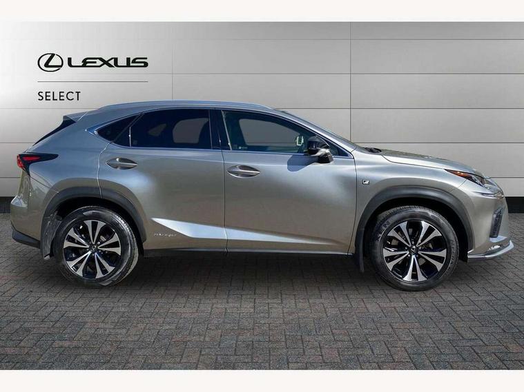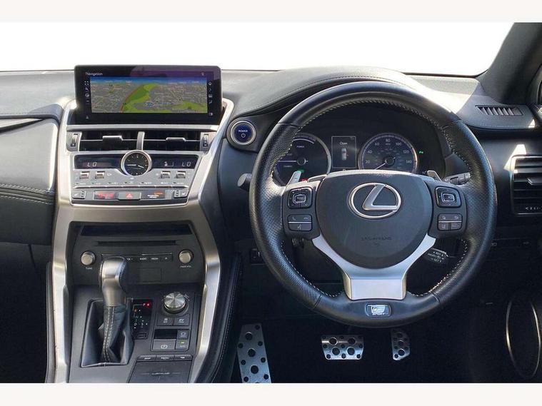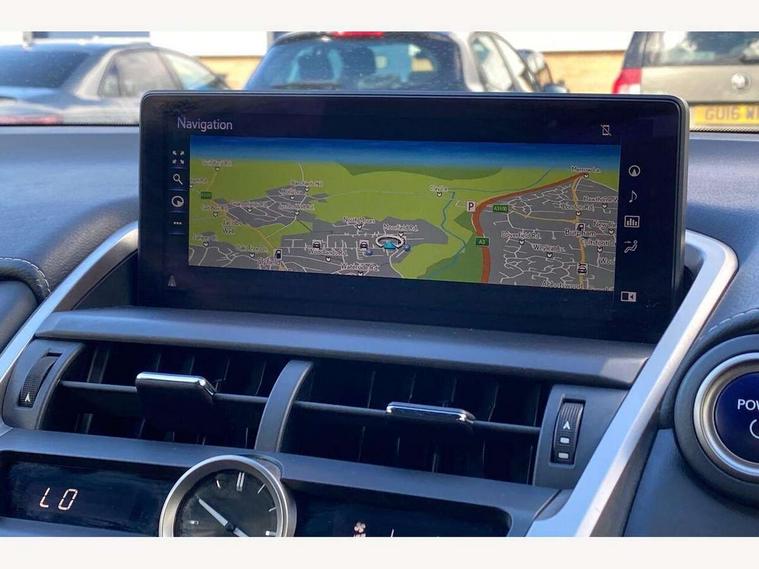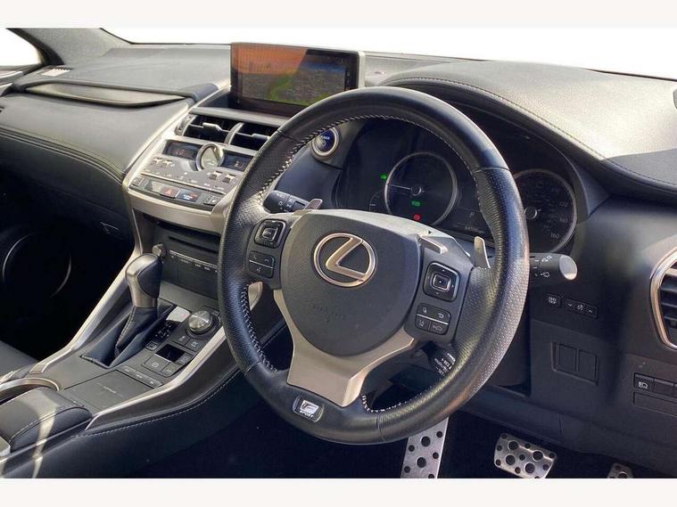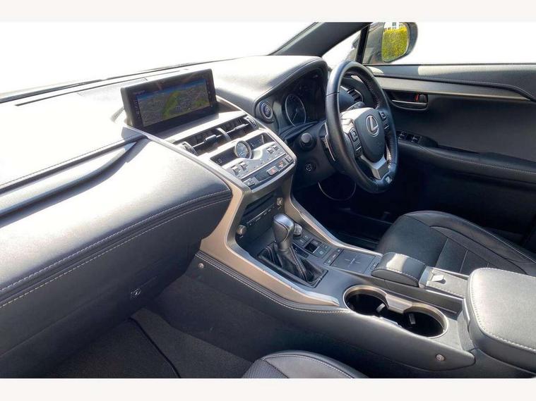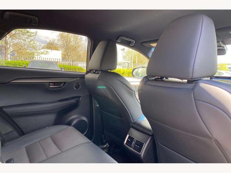 8" colour display screen, Adaptive cruise control + pre-crash system, Analogue clock, Bluetooth telephone connectivity, Drive mode selector, Electric speed sensitive power steering, Front and rear parking sensors, Lane keep assist, Multimedia display, Premium navigation system, Push button starter, Remote touch interface, Reversing camera, Service interval indicator, Traffic sign recognition, Trip computer, Performance dampers, Sports suspension, VDIM, Vehicle Stability Control (VSC), 10 speakers, Aux input, DAB Digital radio, DVD System, Steering wheel mounted audio controls, USB connection, Adaptive high beam assist, Black front grille, Black mirror caps, Body colour bumpers, Chrome grille surround, Door mirror memory, Electric windows-anti jam+driver side one touch, Electric/heated/folding door mirrors, Electrochromatic rear view mirror, Headlight washers, Illuminated door handles, LED daytime running lights, LED front fog lights with static cornering light function, LED Headlights, LED rear lights, Privacy glass, Puddle lights in exterior door handles, Rain sensor windscreen wipers, Rear wiper, Roof rails, Roof spoiler, Shark fin roof aerial, 12V socket in centre console and luggage area, 2 cupholders in front centre console, 3 spoke leather steering wheel, 60/40 split folding rear seat, 8 way electrically adjustable front seats, Active sound control, Adjustable height seatbelt anchor, Adjustable rear seat backrest, Aluminium pedals, Aluminium scuff plates, Centre armrest with storage box, Driver's electric adjustable lumbar support, Dual climate control air conditioning system, Electric adjustable steering column, Front and rear textile carpet mats, Front seat back map pockets, Gearshift paddles, Heated front seats, Isofix child seat attachment, Leather gear lever, Leather upholstery, LED interior illumination, Rear air vents, Rear centre armrest with 2 cupholders, Rear headrests, Shopping hook in boot, Sliding sunvisors with illuminated vanity mirrors, Tie down hooks in luggage area, Convenience pack - NX, 3x3 point rear seatbelts, ABS, Active front headrests, Curtain airbags, Driver/Front Passenger airbags, Driver/front passenger side airbags, Drivers knee airbag, EBD + Brake Assist, Electronic parking brake, Front/rear seatbelt pre-tensioners, Hill start assist, Passenger airbag cut-off device, Traction control, Tyre pressure warning, Alarm, Immobiliser, Locking wheel nuts, Remote central double locking, Smart keyless entry, Speed sensitive power door locks, Carbon interior trim, Space saver spare wheel,