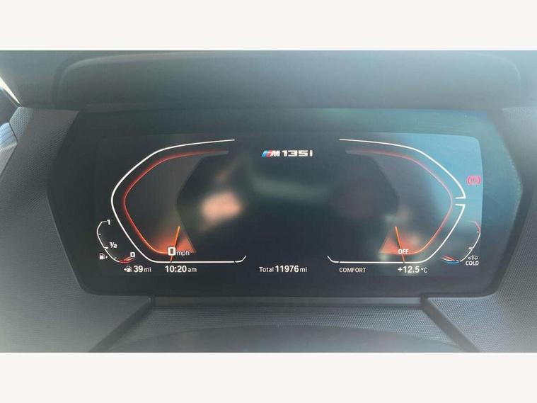 Active guard plus, Attentiveness assist, BMW ConnectedDrive online services, BMW Teleservices, Check Control warning system for monitoring of lights and door/luggage compartment open warning, Cruise control with speed limiter, Eco pro mode, Electric power steering, Electro hydraulically controlled multi-plate clutch transfers drive to rear axle and with power take-off device located on the front differential., Energy efficient operating strategy, Front axle single joint with specific axle kinematics to minimise drive influences on steering + provide increased rigidity agile driving behaviour, Gearshift time display in manual mode, Integrated owners handbook, Lane departure warning system, M Sports steering with M135i xDrive specific settings, Oil sensor for level and grade, On board computer, Optimum shift indicator, Personal Profile, Pull away assistant, Rigidly mounted rear subframe - Multi link construction with separate spring / damper configuration and excellent driving characteristics, Speed limit Info including no-overtaking indicator, Sporty fast gear shifting in sport mode, Aluminium lightweight construction, Anti roll bar front and rear, Balancer shaft, Double VANOS, Drive Performance Control, Eight speed sport automatic transmission with gearshift paddle switches, Electronic differential lock, Electronic selector lever, Engine cover with M performance designation, High precision injection, Larger fuel tank capacity (50 litres), Launch control, M135i specific heavily de-throttled engine intake air guide, M135i specific high-performance cooling package, M135i specific larger turbocharger with integrated divert-air valve, Petrol Particulate Filter, Twin tube gas filled shock absorbers with degressive characteristic curve, VALVETRONIC engine management, Variable, stepless and infinitely adjustable distribution of drive torque between the front and rear axles, xDrive intelligent all wheel drive with M135i specific reinforced components, DAB Digital radio, Auto dimming rear view mirror, Automatic headlight beam throw control, Automatic windscreen wipers and automatic headlight, Body colour door handles, Body colour roof trims, Cerium grey exterior mirror caps, Direction indicator side lights in exterior mirrors, Electrically adjustable exterior mirror with mirror adjustment switch on drivers armrest and aspheric on driver side, convex on passenger side, Exhaust tailpipe, Cerium Grey with bevelled finish - twin, round 100mm, left and right split, Fading support, Folding side mirrors with auto dimming/folding wing mirrors with auto dimming, Follow me home headlights, Front and rear bumper system with replaceable deformation elements, Front and rear electric windows with open and close fingertip control, anti trap facility and comfort closing, Front door sill finishers with M135i designation, Green tinted heat protection glazing, High gloss shadowline window frame, Recess cover mirror frames and B/C pillar embelisher trim, High level third brake light, Integrated front windscreen with washer jets, Kidney grille frame in Cerium Grey with Mesh design, LED daytime running lights, LED eyebrow turn indicators, Lightweight engineering, M logo designation side in cerium grey, M Performance exhaust system with valve control and minimised exhaust back pressure, M Performance specific setup, M Sport spoiler, Matt black air guide grilles, Matt black wheel arch trim, Model designation on electric bootlid includes xDrive designation for M135i xDrive, Nearside reverse light in rear light cluster, Preparation for high beam assistant, Rear fog lights, Rear side wing doors, Rear window wiper, Reinforced crank drive, new pistons and adapted con rods, Shark fin antenna, Trailer stabilisation logic, Visible VIN plate, Welcome lighting, 12V power socket in front centre console with blanking plug, 3 rear seat head restraints, 3 seat bench in 2nd row, 3 spoke sports leather steering wheel with black leather and stitching, pearl chrome decorative finish, specific M Badge, Anthracite headlining, Black boot net with lashing eyes, Cargo function on 2nd seat row, Child seat ISOFIX attachment for two outer rear seats and front passenger seat with anchorage points, Conditioned based service, Driver and front passenger backrest net on rear, Driver and front passenger seat heating, Driver side folding compartment in instrument panel, Folding rear clothes hook, Four grab handles integrated in roof lining, Front and rear door pockets with bottle holders, Front and rear side armrest integrated into door trim, Front armrest, Front M sports seats, Glove compartment, Height adjustable front head restraints, Luggage compartment for bag hooks on left and right, foldable luggage compartment liner and four lashing eyelets, Manual adjust steering wheel, Multi-function controls for steering wheel, Single front passenger seat, Storage compartment in centre console, Storage compartment in luggage compartment, Stowage of the parcel shelf in luggage compartment trim, Sun visors with vanity mirrors and insert tab, Two front centre console cupholders, Two zone automatic air conditioning, Type C two USB ports in rear centre console, Velour floor mats, Additional interior lighting pack - 1 Series M135i, BMW live cockpit professional pack- 1 Series, Connected pack professional - 1 Series, Interior lights pack - 1 Series, M Sport exterior styling aerodynamics pack - 1 Series 135i, 2 tone horn, 3 point seatbelts on all seats, front pyrotechnic belt tensioners, stopper and belt force limiters, rear coded belt buckles, Airbags - Front driver/passenger, front and rear curtain head protection, front side, manual deactivation of front passenger airbag, Anti lock braking system (ABS) with brake assist, BMW emergency call, Brake drying, Braking readiness, Child proof locking system in rear door, City braking function, Comfort modes, Cornering brake control, Crash sensor activating of airbags, Unlocking doors, hazard warning lights, interior light
