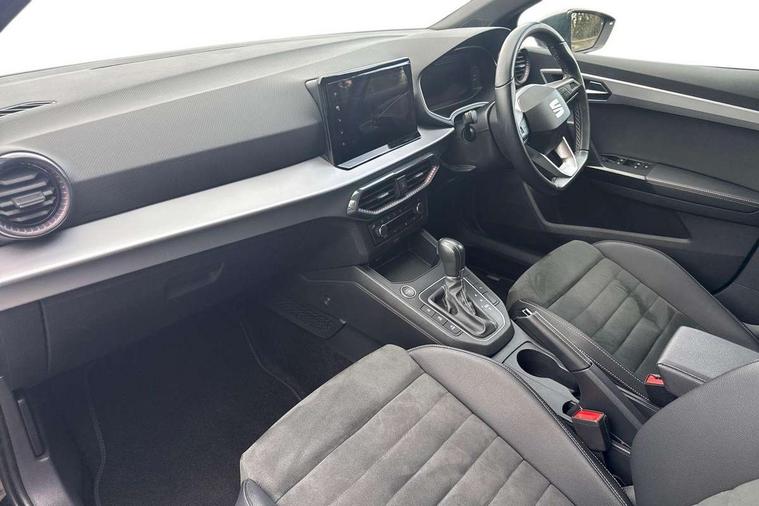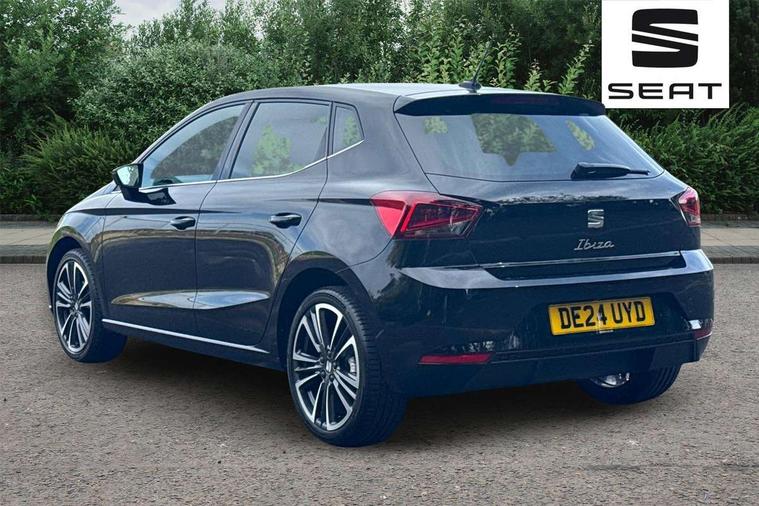 'Lights On' Reminder warning buzzer, 10" Digital cockpit, 9.2" touchscreen navigation system with type C USB socket, Voice control and DAB/AM/FM radio, Auto start and stop system, Bluetooth audio streaming with handsfree system, Digital clock, E-call, Front and rear parking sensors with rear view camera, Full link smartphone integration with mirror link, wireless apple carplay, Google android auto + USB Type C cable for apple and android devices, Lane assist, Low fuel warning light, Outside temperature gauge, Power Steering, Seat connect plus with safety, service, remote and online, SEAT drive profiles and ECO function, SEAT logo boot release, Speed limiter, Traffic sign recognition, Trip computer, Comfort suspension, Auxiliary input socket, Radio/MP3 player, SD card slot, Steering wheel mounted controls, Anti theft roof antenna, Atom grey door mirrors, Auto dimming rear view mirror, Automatic rain sensing wipers, Body colour bumpers, Body colour door handles, Chrome window surround and upper grille surround, Dark tinted rear windows, Electric adjustable/heated/folding door mirrors, Electric front windows, Electric headlight adjustment, Electric rear windows, Front/rear fog lights, FULL LED automatic headlights with dynamic headlight range control, coming and leaving home, LED daytime running lights, LED tail lights, Rear side wing doors, Rear wiper, Third brake light, 3 seat bench in 2nd row, 60/40 split folding rear seat, Ambient interior lighting, Chrome detailing and black headlining, Comfort seats, Dual zone climate control with combination filter, Front centre armrest, Front courtesy lights, Front cupholders x 2, Front reading lights, Gear shift indicator, Glovebox, Height adjustable front and rear headrests (five), Height adjustable front seats, Height/reach adjust steering wheel, Illuminated air vent surrounds, Illuminated boot, Instrument lighting with brightness control, Isofix, Leather multifunction flat bottomed sports steering wheel, Microsuede cloth upholstery, Passenger sunvisor, Single front passenger seat, Storage pockets on back of front seats, Sunvisors with mirror and driver side card holder, Safety and driving pack (M) - Ibiza, Safety and driving pack (S) - Ibiza, 3 point seatbelts on all 3 rear seats, ABS, Active front headrests, Child locks on rear doors, Electronic stability control, Energy recovery system, Front driver and passenger side airbags with curtain airbag and front passenger airbag deactivation, Hill hold control, Multi-Collision braking, Seat belt reminder for front and rear seats, Tiredness recognition system, Tyre pressure monitoring system, Electronic engine immobiliser, KESSY Keyless entry and go, Locking wheel bolts, Perimeter alarm and interior monitoring inc.backup horn, tow away protection and electronic engine immobiliser, Remote central locking + deadlocks, 18" Dynamic machined alloy wheels in Nuclear grey,
