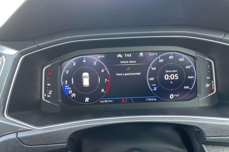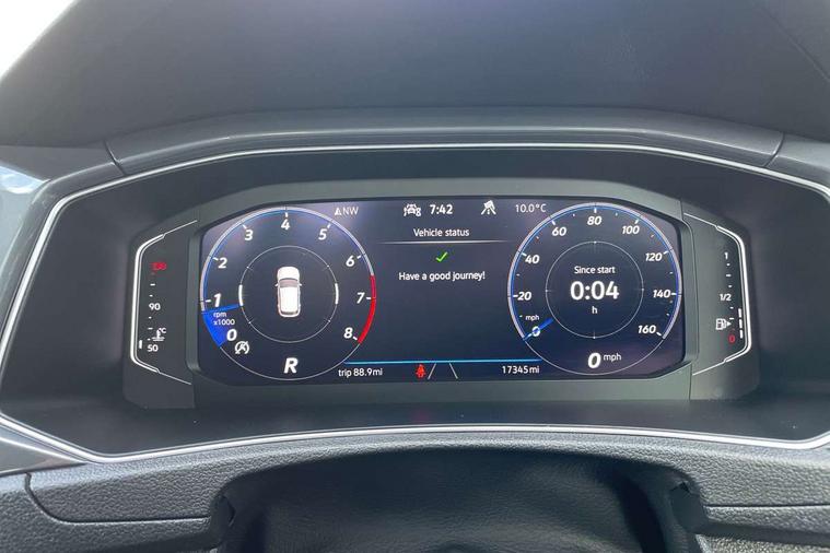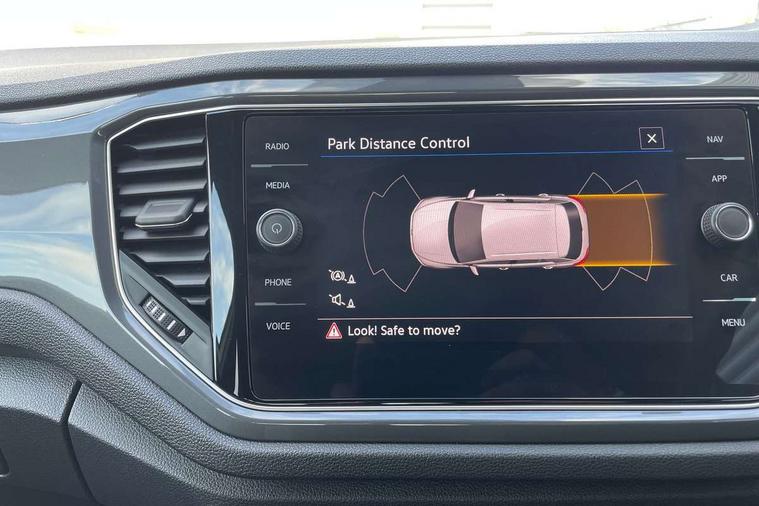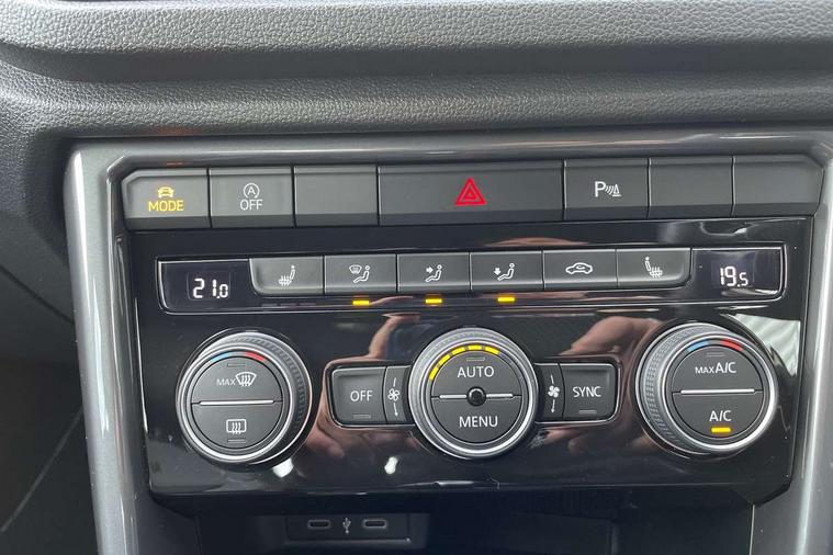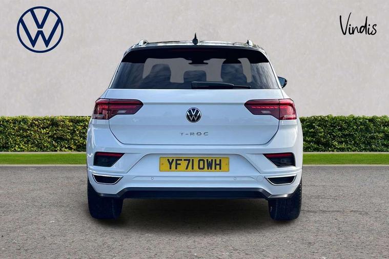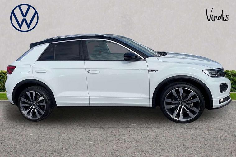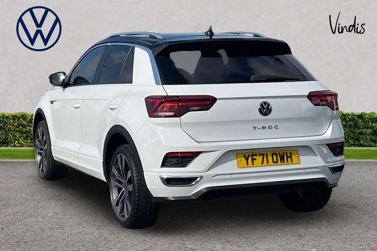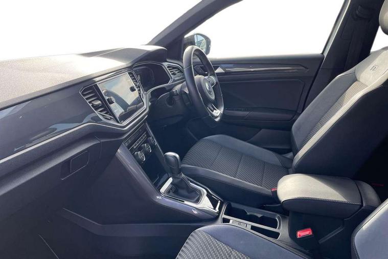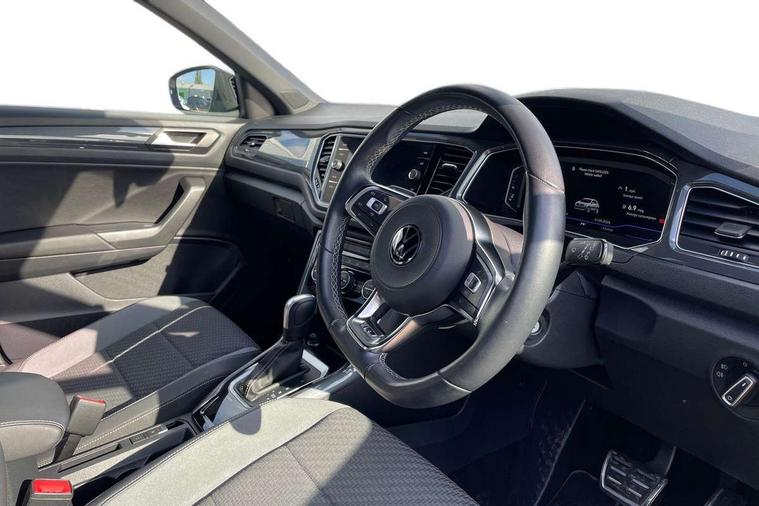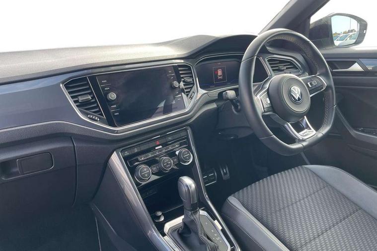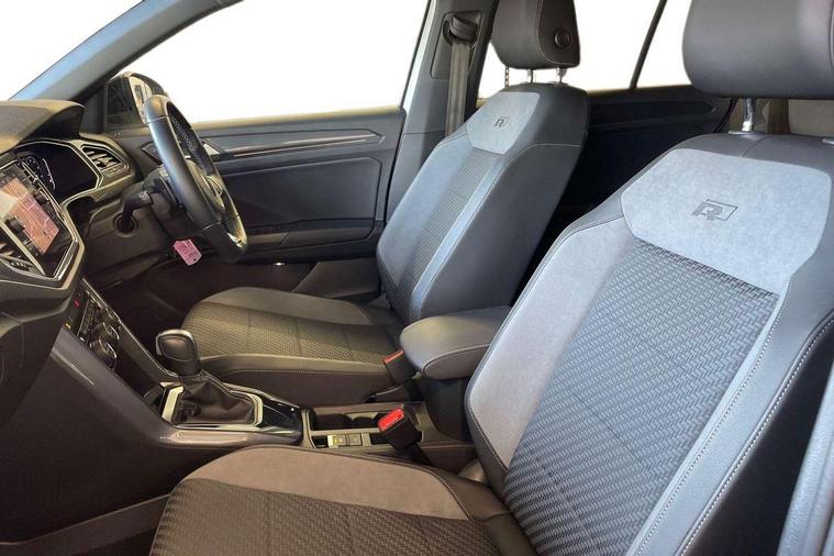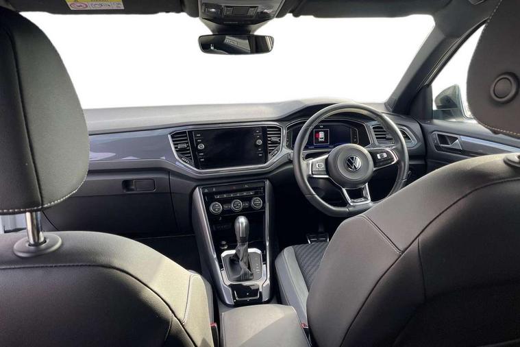 'Lights On' Reminder warning buzzer, Adaptive cruise control, Bluetooth telephone and audio connection for compatible devices, Car information display, Digital Cockpit Pro - Active info display, Driver alert system with audible and visual fatigue detection system, Driver tips and journey analysis, Emergency call service, Lane assist with warning text instrument cluster, Modified key software - reduce switch off time for key status change to Long no motion, Multifunction camera, Multifunction computer with visual gear change recommendation for fuel consumption, Navigation system discover media including streaming and internet, Service interval indicator, Think blue trainer driver tips and journey analysis, Traffic sign recognition, Voice activation, Warning sound and light for front seatbelts unfastened, Wireless app connect for apple carPlay, Battery regeneration during braking, Rear shock absorption for sports version, Start/stop function with battery regeneration, DAB Digital radio, Disk brakes in front, Diversity antenna for FM reception, Music playback - MP3, WMA and AAC files, Premium USB cable in choice of either Apple or Android smartphone compatibility, SD card slot, Simultaneous pairing of 2 compatible mobile devices, SMS functionality - read, compose and send SMS messages using touch-screen display, Storage compartment with longitudinal and height adjustable in armrest and two rear air vents, Three route options - Fast, Short, Eco, Title and cover art display, USB-C Interface and USB charging socket, Auto dimming interior rear view mirror, Automatic coming/leaving home lighting function and daytime running lights, Automatic hazard lights activation under emergency braking, Black grained lower door protectors, Body colored door lower parts, Body colour door handles, Body colour rear roof spoiler, Chrome effect left and right trapezoid exhaust tailpipe fascia surround, Chrome plated moldings, Chrome trim on upper and lower radiator grille, Dusk sensor, Dynamic headlight range control with self adjusting whilst driving, Electrically foldable, adjustable and heated door mirrors with puddle lights and reverse activated kerb-view adjustment on passenger's door mirror, External USB type C socket and charging sockets, Front and rear electric windows, Front fog lights with static cornering function, Front windscreen wiper with intermittent wipe and 4 position delay, Fully galvanised body, Heated rear window, Heated windscreen washer jets, High level 3rd brake light, LED darkened rear light clusters, LED headlamps with automatic range adjustment and unique signature LED separate daytime running lights, LED rear number plate lights, LED tail lamp rear comination lamps, Privacy glass, R-Line design body coloured bumpers, Rain sensor, Rear tinted glass from B-pillar backwards approx 65% tinted, Rear wash/wipe with intermittent wipe setting, Silver anodised roof rails, Volkswagen roundel, 12V socket in centre console storage area, 3 rear head restraints, 4 load lashing points in luggage compartment, Aluminium pedals, Black roof lining and sun visors, Branded points of interest, Carbon flag cloth upholstery, Chrome plated radiator grille inserts, air vent surrounds and light switch surrounds, Climate control - 2 zone electronic air conditioning with automatic air recirculation and allergy filter, Door and side trim panel, Door and side trim panel in foam film, insert in leatherette, Drawer under drivers seat, Front + rear carpet mats, Front centre armrest, Front cupholders x 2, Front seat back storage pockets, Front sports seats with R-Line logo on seat backrest, Glovebox, Heated front seats, Height adjustable front seats, Height/reach adjust steering wheel, Instrument lighting, white adjustable panel illumination, Interior light delay, Interior light in footwell, Isofix easy fit child seat preparation for 2 outer rear seats, Leather gearshift knob, Leather multi function sport steering wheel with gear change selection via paddle shift on steering wheel, LED interior light with switch off delay/dimmer and 2 front/rear LED reading lights, Load through provision with single cup holder when folded down, Luggage compartment cover, removable, Luggage compartment lighting, R Line badge, Scuff plates in door apertures, Split folding rear seat backrests with centre armrest, Stainless steel pedals, Storage compartment in left and right luggage area, Storage compartment in rear doors, Storage compartments in driver and front passenger doors, Sunvisors with illuminated vanity mirrors, Unique R Line door sill protectors, White ambient lighting, R line styling pack - T-Roc, Winter pack - T-Roc, 3 rear three point seatbelts, ABS, Curtain airbags, Driver and front passenger safety-optimised head restraints, Drivers and front passengers airbags with passengers deactivation switch, Drivers seatbelt reminder, Electronic parking brake with auto hold, Electronic stability control (ESC) includes ASR, EDL, EDTC and trailer stabilisation function, Front assist with city emergency braking and pedestrian monitoring, Front seat side impact airbags, Hill start assist, Predictive pedestrian protection, Rigid safety cell with front and rear crumple zones, Single tone horn, Three point height adjust front seatbelts + pretensioners, Tyre pressure loss indicator, Ventilated front and rear disc brakes, Volkswagen roadside assistance, Alarm with remote central locking and interior protection, Electronic engine immobiliser, Remote central locking with SAFELOCK, radio remote control with 2 remote control folding keys, Shadow grey decorative inserts in dash, centre console and door panel, 19" Suzuka alloy wheels with low rolling resistance tyres and anti wheel bolts,