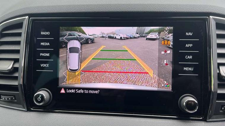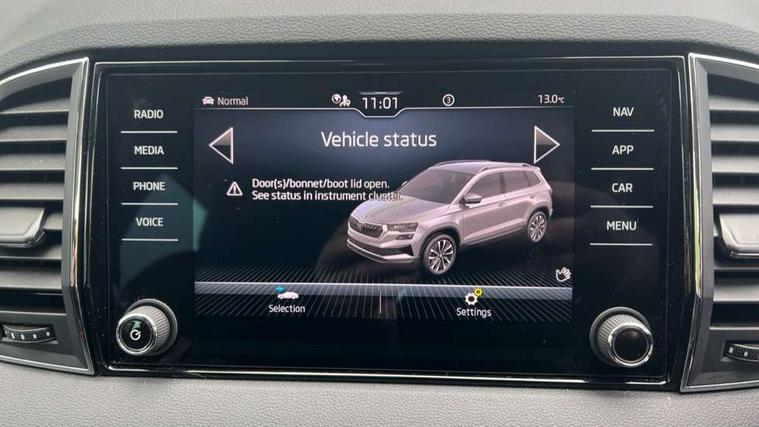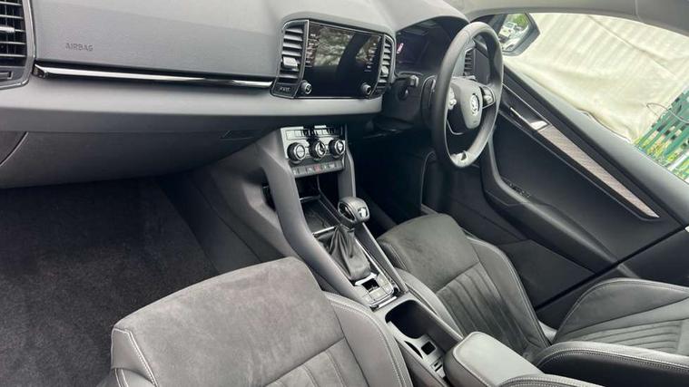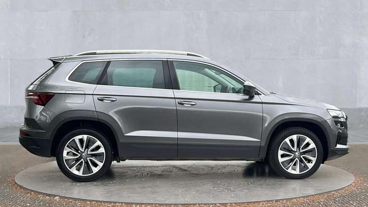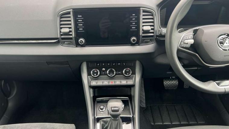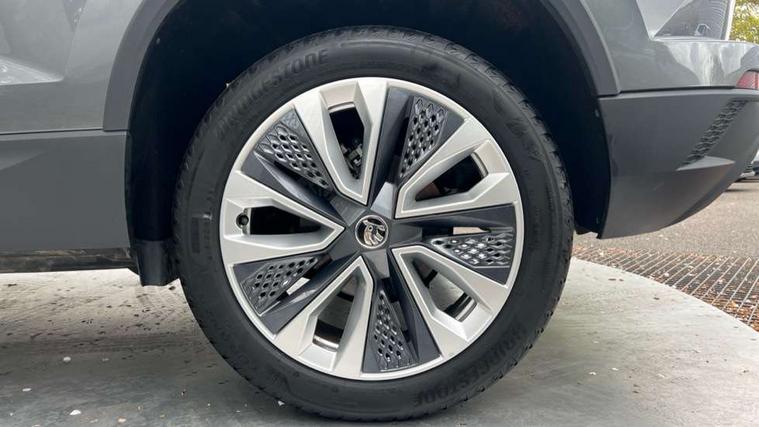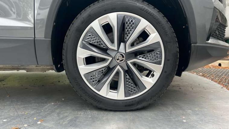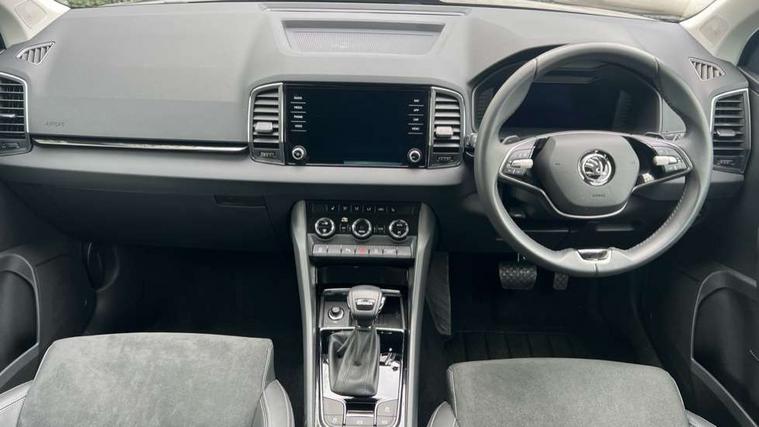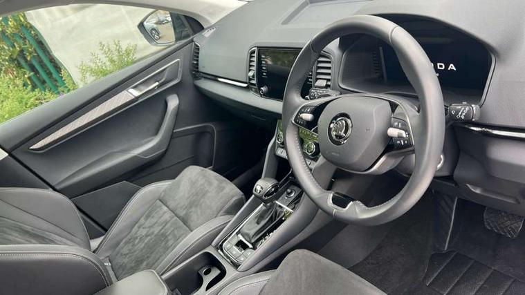 8" Digital display, Advanced driver attention and drowsiness monitor, Emergency services call system, Outside temperature gauge, Sensor for driver assistance systems, Service interval indicator, SmartLink wireless for Apple and wired for Android, Start/stop system with regenerative braking, USB C Port x 2 in front centre console, Virtual Cockpit - 10.25" digital display, Wireless smartphone charging, DAB radio with Bluetooth, USB connection, Acoustic glass, Aero front windscreen wipers with intermittent function, Auto dimming rear view mirror with light and rain sensors, Black electric window control buttons, Body colour door mirrors and handles, Electric front and rear windows with child proof lock, Heated rear windscreen, LED daytime running lights, LED rear lights with high functionality welcome effect and dynamic indicators, Light assistant (coming/leaving home/tunnel light), Plastic scuff plates in door apertures, Privacy glass, Rear side wing doors, Rear spoiler, Rear window wiper with washer system and intermittent control, Safety reflectors on front doors, Third brake light, 1.5 litre bottle holders in driver and front passenger door panels, 12V socket in boot, 12v socket in front centre armrest with storage compartment and rear air vents, 2 spoke leather heated multifunction steering wheel with DSG paddles, 2 x Tablet holder, 3 rear height adjustable headrests, 3 seat bench in 2nd row, 4 foldable roof handles with rear coat hooks, Black floor carpet, Chrome inner door handles, Foldable hooks in the boot, Front head restraints, Height adjustable front three point seats belts with tensioners, Height/reach adjust steering wheel, Ice scraper, Illuminated glovebox, Illuminated luggage compartment, Interior noise suppression, Isofix child seat preparation for front passenger seat, Isofix child seat preparation outer rear, Manual lumbar support for front seats, Pearl grey interior ceiling, Pen holder, Pollen filter, Rear boot cover, Rear reading lights, Rubbish bin door, Safety vest holder, Single front passenger seat, Storage box in upper central dashboard closed, Sunvisors with illuminated vanity mirrors, Textile floor mats, Ticket holder, Design Pack - Karoq, Non Smokers pack, Parking pack - Karoq, Automatic door unlocking in case of crash, Automatic fuel cut off in case of crash, Driver airbag, Electronic parking brake with auto hold function, Emergency rear braking signal, ESC (incl. ABS+MSR+ASR+EDS+HBA+DSR+RBS+MKB), Front side airbags, Head airbags, Hill hold control, Knee airbags, Passenger airbag with switch-off function, Pedestrian monitor, Seatbelt reminder signalisation and pretensioner for all seats, Three point seatbelts rear, Two tone horn, Tyre pressure monitor, Alarm with interior monitoring, back up horn and tilt sensor with safe function, Electronic engine immobiliser, Keyless entry and start/stop, Remote central locking with 2 remote folding keys, Black centre console, Chrome framed air vents, Satin black dashboard, Anti-theft wheel bolts protection, Breakdown and tool kit,