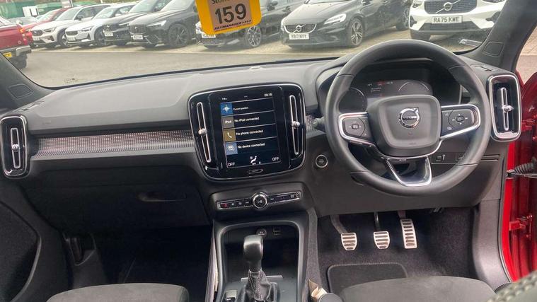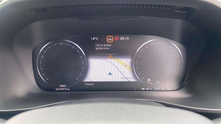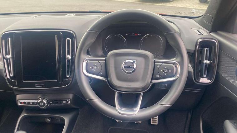 12.3" Active TFT crystal driver's instrument display, 9" centre console portrait touch screen, Adjustable steering wheel force, Bluetooth hands free telephone kit, Drive mode selector, Lane keep assist with driver alert control, Oncoming Lane Mitigation, Power operated tailgate, Sensus navigation with European mapping and traffic information, Speed limiter, Speed sensitive steering, Voice activated control for key functions, Volvo on call, Sports chassis, DAB Digital radio, Steering wheel mounted remote controls, Adaptive brake lights with high level LED brake lights, Auto dimming interior mirror, Automatic headlamp levelling, Black stone door mirrors, Black stone roof, Colour coordinated auto folding and heated power door mirrors, Dark tinted windows for rear door side windows and cargo compartment, Dual integrated exhaust pipes with high gloss black surround, Front aluminium tread plates, Front and rear electric windows, High gloss black front and rear skid plate, High gloss black lower front bumper, High gloss black mesh front grille with high gloss black surround, High gloss black roof rails, High gloss black sensus surround deco, High gloss black window trim, Home safe and approach lighting, LED Headlights + Active high beam incorporating daytime running lights, Rain sensor with automatic windscreen wiper activation, Rear side wing doors, Rear wiper, Roof antenna, Roof spoiler, Visible VIN plate, 12V socket in front tunnel console and luggage compartment, 2 zone electronic climate control and rear air vent, 3 seat bench in 2nd row, 60/40 versatile split folding rear seat, A-pillar parking ticket holder, Centre console cupholders and storage, Charcoal headlining, Driver's side lower dashboard credit card storage compartment, Front footwell illumination, Front headrests, Front reading light and theatre lighting, Front seat cushion extensions, Glovebox bag hook, Height/reach adjustable steering column, Illuminated glovebox, Illuminated luggage compartment, Illuminated vanity mirrors, Isofix attachments on outer rear seats, Key integrated remote, Leather gearknob, Load protection net, Multi directional lumbar support, Rear armrest / integral cup holders / storage tray, Rear coat hook, Single front passenger seat, Sports floor mats, Sports pedals, Sports tailored steering wheel, Underfloor cargo storage, 3x3 point rear seatbelts, City safety includes pedestrian, cyclist and large animal detection and front collision warning with full auto brake, Drivers knee airbag, Dual stage driver/passenger airbags, Electronic parking brake with auto hold, First aid kit, Front and outer rear seatbelt reminder and pretensioners, Front seats SIPS airbags, Hill descent control, Hill start assist, Inflatable curtain, Passenger airbag cut-off device, Road sign information display, Run off Road Mitigation, Run off Road Protection, SIPS (Side Impact Protection System), Slippery road and hazard light alert, Stability and Traction Control with Spin control, Engine Drag Control and Corner Traction Control, Tyre pressure monitoring system, Vehicle deceleration control with Anti-lock Brake System, Electronic Brake Distribution and Emergency Brake Assist, Warning triangle, WHIPS whiplash protection system - front, Anti-theft alarm including immobiliser/volume sensor + level sensor, Care key with user defined top speed, Key integrated remote control central locking + fuel flap with deadlocking system and auto open/close power windows, Locking wheel nuts, Private locking for tailgate, Cutting edge aluminium inlay, Lower dashboard, tunnel console and door panel in charcoal,
