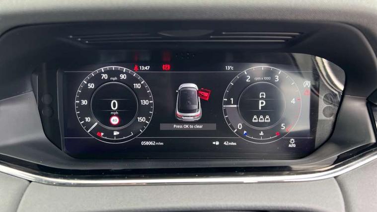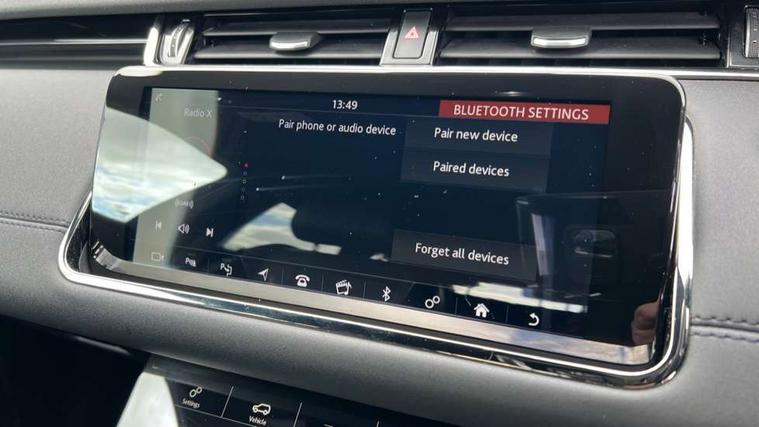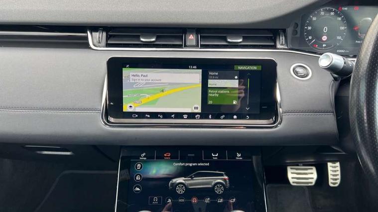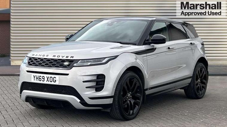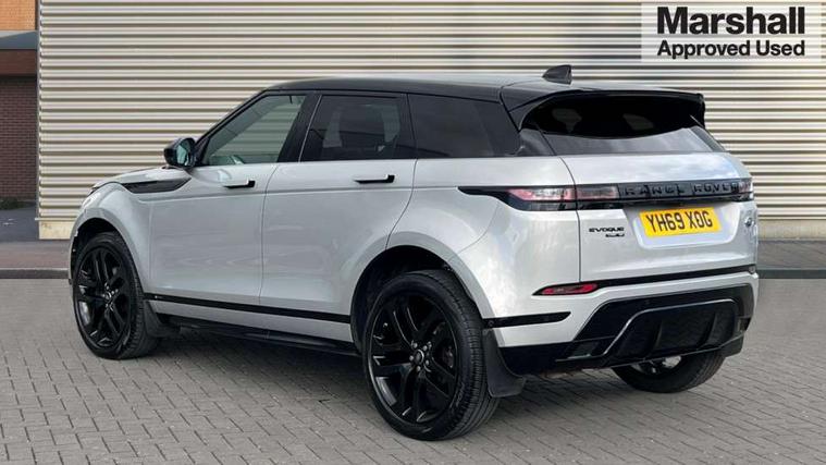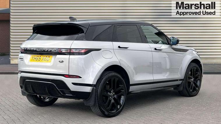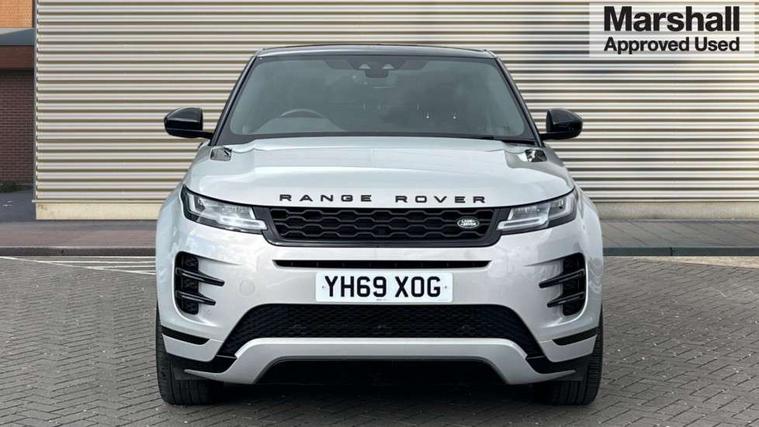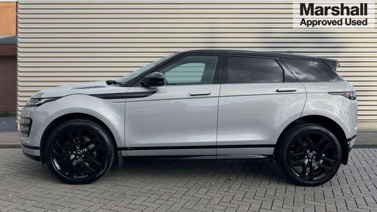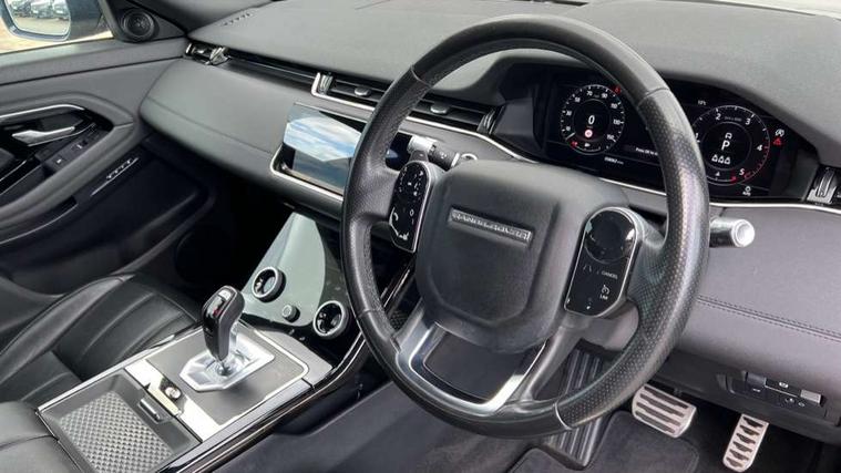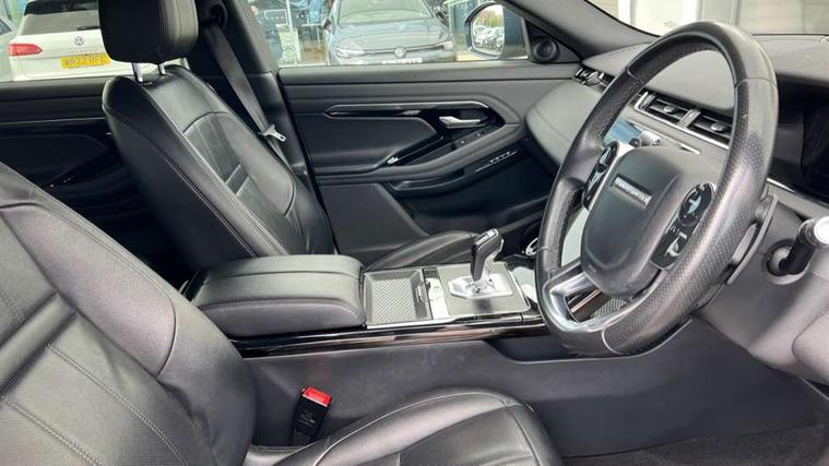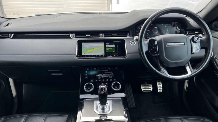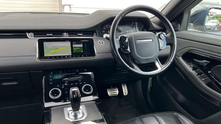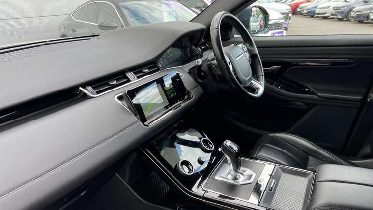 360 degree parking aid, Android Auto, Apple car play, Bluetooth connectivity, Brake pad wear indicator warning light, Clear exit monitor, Driver condition monitor, Duo touch pro, Electronic power assisted steering (EPAS), InControl remote, Interactive Driver display instrument cluster, Land Rover InControl apps, Lane keep assist, Navigation pro system, Park assist - Parallel, perpendicular and parking exit, Pro services and wifi hotspot, Push button starter, Rear traffic monitor, Smart settings, Traffic sign recognition with adaptive speed limiter, Voice control system, All terrain progress control, Efficient Driveline, Passive suspension, Terrain Response 2 Auto, Digital Audio Broadcast radio-DAB, Steering wheel mounted controls, Automatic headlight levelling, Electric windows with one touch open/close and anti trap, Evoque and R-Dynamic badge, Flush deployable exterior door handles, Heated rear window with timer, Heated washer jets, Heated windscreen, Power fold, auto-dimming, heated door mirrors with memory and approach lights, Rain sensing windscreen wipers, Rear fog lights, Shadow atlas bonnet and tailgate script, Tailgate spoiler, 40:20:40 split folding rear seats, Black gearshift paddles, Bright metal pedals, Isofix system on outer rear seats, Overhead lighting console, Overhead stowage for sunglasses, Passive front head restraints, Rear air vents, Rear centre headrest, Sunvisors with illuminated vanity mirrors, Twin front cupholders with cover, Twin sliding front centre armrest, Two zone climate control, Anti-lock braking system (ABS), Customer configurable autolock, DSC - Dynamic Stability Control, Electronic brake force distribution, Electronic parking brake, Electronic traction control, Front and rear seatbelt reminder, Hill descent control, Hill launch assist, Low traction launch, Power operated child locks, Roll stability control, Six airbags - Driver and passenger airbags/driver knee airbag/front side airbag and curtain airbags, Torque vectoring brake, Tyre pressure monitoring system, Alarm, Immobiliser, Intrusion sensor, Locking wheel nuts,