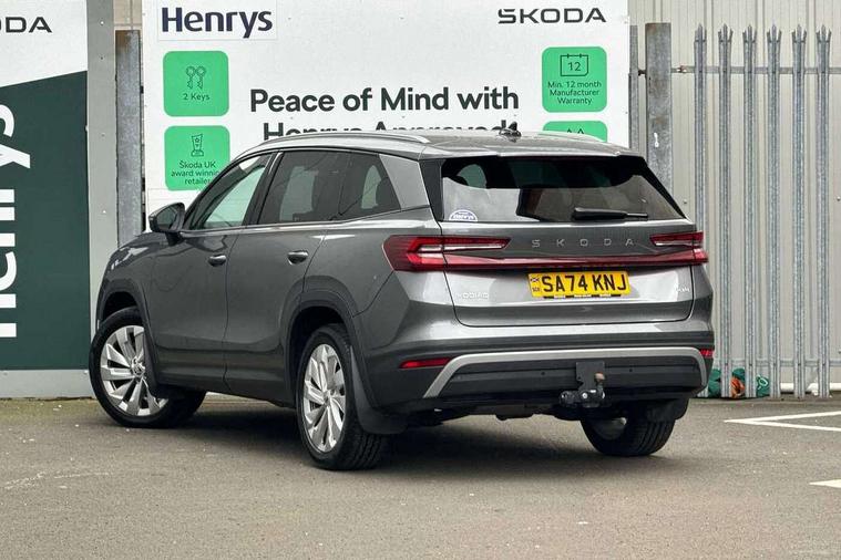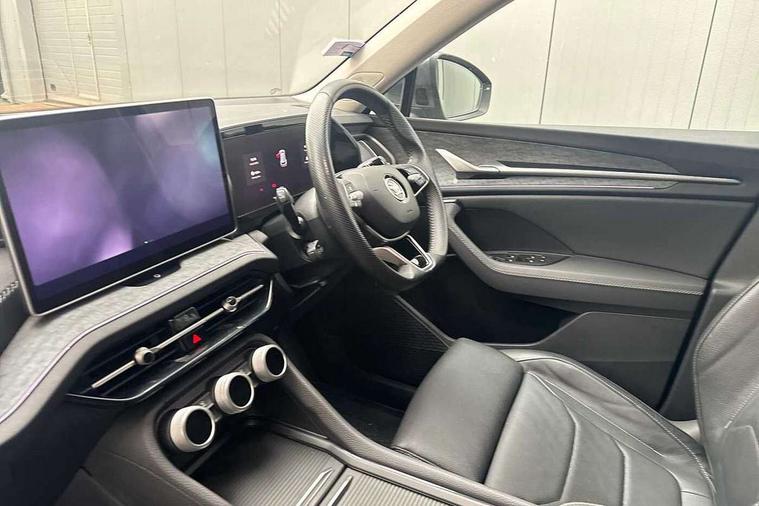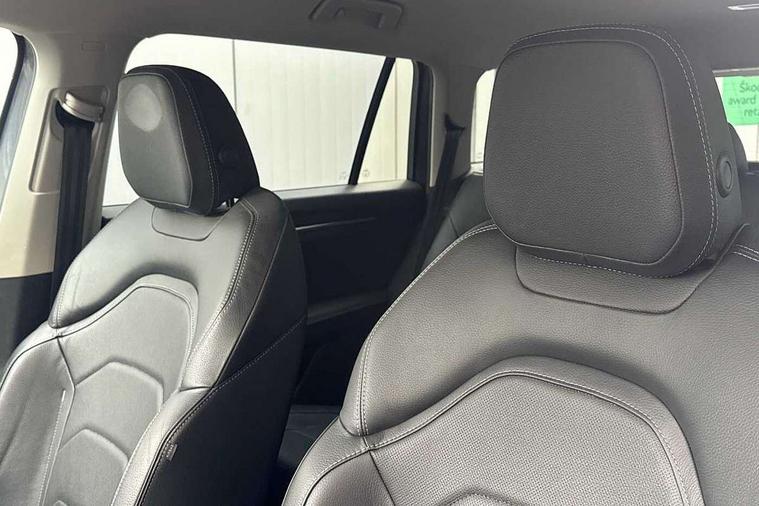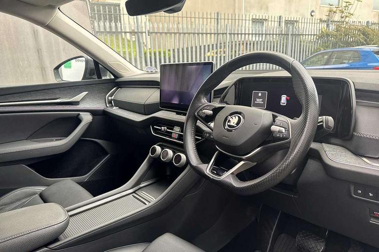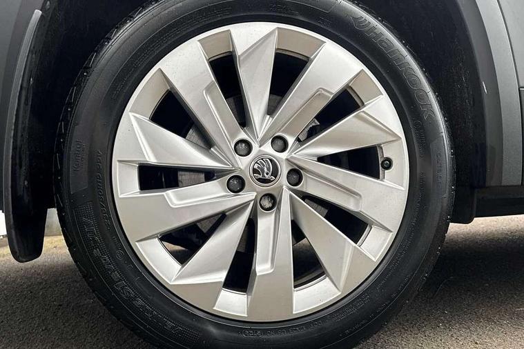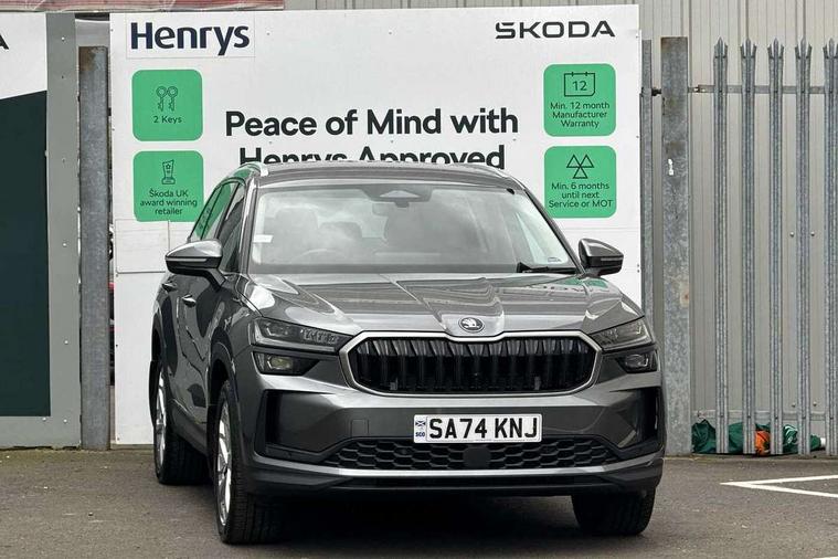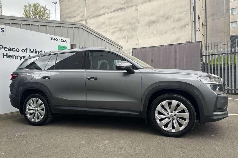 13" satellite navigation touchscreen display, Blind spot detection with door exit warning, Bluetooth system, ChatGPT functionality, Drive mode selector, Driver alert with fatigue sensor, Driver drowsiness alert system, Dry display cleaner, e call+, Front cross traffic assist, Lane assist, PAS, Rear traffic assist, Tailgate unlocking from outside, Traffic sign recognition, USB C Port x 2 in front centre console, Virtual Cockpit - 10.25" digital display, Voice control system, Wireless charging for two smartphones (15W) with cooling function, Wireless SmartLink for Apple CarPlay and Android Auto, Stop/start function, 2x USB-C in the rear, DAB Digital radio, Aero front windscreen wipers with intermittent function, Auto dimming rear view mirror, AWL (all weather lighting) and all weather light with cornering function, Black wheel arch surrounds, Body colour bumpers, Body colour door mirrors and handles, Cornering light and poor weather light, Electric folding /adjustable/separted heated/folding door mirrors, auto dimming with boarding sports and memory function, Electric front and rear windows, Exterior black decorative trims, Heat insulating glass in windshield, Heated rear window, Ice scraper in fuel tank cap, Invisible tailpipe, LED daytime running lights, LED rear fog light, LED third brake light in rear spoiler, Light assistant with automatic headlight control and coming home feature, Logo projection in door mirrors, Privacy glass, Rear side wing doors, Rear spoiler, Rear window wiper, Red decorative strip between rear LED lights, Safety reflectors on front and rear doors, Window control switches with black trim, Windscreen wipers with rain sensor, Without engine designation, 1.5l bottle holder points in all door, 12V socket in boot, 1x centre rear reading light, 2 seat bench in 3rd row, 3 configurable smart dials with 32mm coloured display, 3 seat bench in 2nd row, 4 foldable roof handles with rear coat hooks, Ambient interior lighting - Dashboard, front-door stowage compartments, front and rear door panels and footwell lighting, Automatic gear selector on steering wheel, Chrome interior door handles, Driver/front passenger reading lights, Fabric headlining, Fixed bench 40:60:40 split folding backrests, Front and rear floor mats, Front centre armrest with jumbo box storage compartment, cup holder and 12V socket, Front courtesy lights, Height adjustable front headrests, Isofix child seat fittings in outer middle row rear seats and front passenger with top tether, Manually adjustable steering column, Pollen filter, Rear centre armrest with cupholders, Rear seat boot backrest release, Retractable luggage compartment cover, Single front passenger seat, Sliding trunk cover, Small Bags on the inner sides of the front backrests, Storage pocket including mobile phone pockets on the backs of the front seats, Sunvisors with illuminated vanity mirrors, Three rear height adjustable headrests, Ticket holder on A Pillar, Tri zone climate control, Umbrella in door panel x1 made from sustainable materials, Upper and lower glovebox with card holder and coin compartment, USB C port by rear view mirror for charging only (15W), Exterior styling pack - Kodiaq, Auto door release and activation of warning lights in the event of an accident, Driver and front passenger airbag with knee airbag and front passenger airbag deactivation, Electric child locks, Electronic parking brake, ESC (incl. ABS+EMD+MSR+ASR+EDL+HBA+DSR+RBS+ESBS+MCB+TSA+XDS), Front assist with braking reaction to vehicles, pedestrians and cyclists, Front disc brakes, Fuel cut off safety device, Height adjustable front 3 point seatbelts + pretensioners, Hill hold control, Junction assist with automatic emergency braking, Rear disc brakes, Safety vest holder in door, Seat belt reminder for all seats, Three point rear seat belts, Two tone horn, Tyre pressure monitor, Anti-theft wheel bolts, Immobiliser, Remote central locking with 2 keys, Breakdown kit,