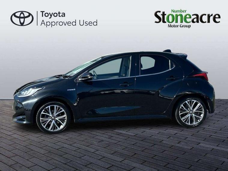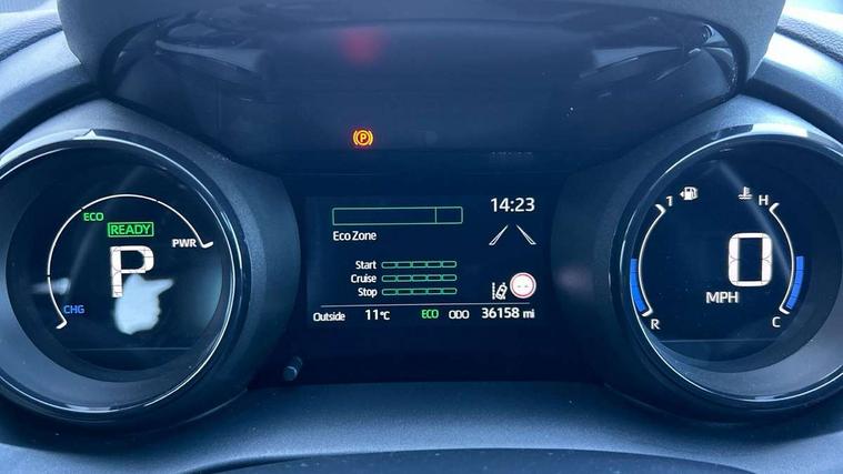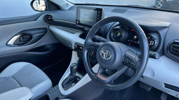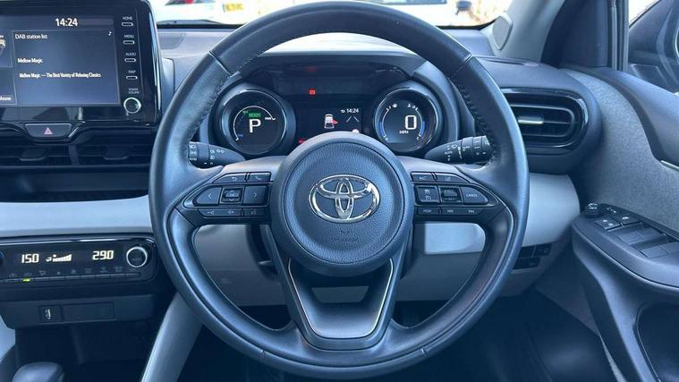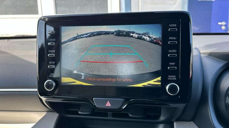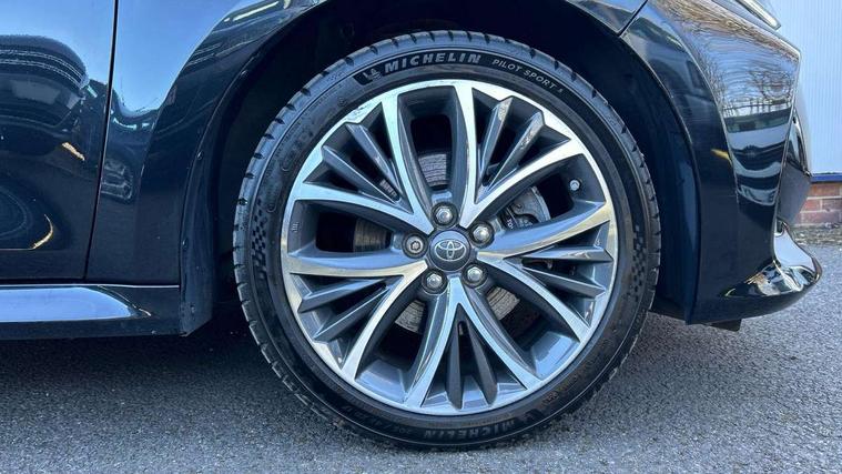 Adaptive cruise control, Adjustable speed limit with speed warning, Blind spot monitoring, Bluetooth connectivity, Colour binocular inspired displays with digital speedometer, E-call, Electric power steering, Front and rear parking sensors and intelligent clearance sonar with automatic braking, Hybrid energy display, Multi information display switches on steering wheel, Reversing camera, Smartphone integration with Apple CarPlay and Android auto, Vehicle Stability Control (VSC), 6 speakers, 8" Multimedia display touch screen, Toyota Touch 2 with DAB, USB connection, Acoustic windscreen glass, Auto windscreen wipers, Automatic headlights, Automatically retractable door mirrors, Body coloured door mirrors, Electric adjustable heated door mirrors, Follow me home headlights, Front auto power windows with anti jam protection, Full LED rear lights, LED daytime running lights, LED front fog lights, LED Headlights, LED High mounted stop lamp, Painted front grille, Rear auto power windows with anti jam protection, Rear privacy glass, Rear spoiler, Satin lower front grille, Shark fin antenna, Turning signal integrated indicators in door mirrors, 3 adjustable rear headrests, 3 spoke leather steering wheel, 60/40 split folding rear seat, Adjustbale boot height, Coat hooks in rear grab handles, Cup holders (2 front & door), Data Communication Module (DCM) connected services, Dual zone automatic air conditioning, Fabric seat with partial synthetic leather upholstery, Front armrest, Front sport seats, Glovebox, Height adjustable driver's seat, Height adjustable passenger seat, Isofix seat fixing, Leather gearshift, Map pockets on the backs of the front seats, Pollen filter, Shopping bag hooks, Tilt/telescopic steering column, 3 point seatbelts on all rear seats, ABS+EBD+Brake assist, Active headrests, Electronic parking brake, Emergency brake light system (EBS), Front passenger airbag on/off switch, Front seatbelt reminder, Hill start assist control (HAC), Rear child proof door locks, Rear seat belt reminder, Supplemental Restraint System (SRS) 8 airbags: Driver & passenger's airbags, dual side curtain airbags, side impact airbags, front centre airbag, Toyota Safety Sense 2, Precollison + Night time Pedestrian & Cyclist Detection, Lane Trace Assist, Auto High Beam, Intelligent ACC & Road Sign Assist, Tyre pressure warning system, Alarm/immobiliser, Keyless smart entry with push button start, Remote powered central double locking doors, Satin chrome interior styling, Soft touch instrument panel, Space saver spare wheel,