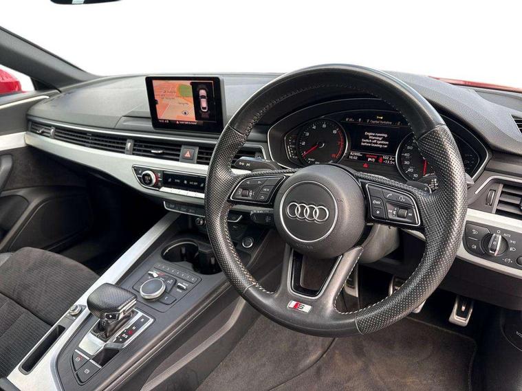7" Colour driver information system, Audi connect, Audi drive select, Audi parking system plus with front and rear sensors, Audi smartphone interface, Automatic start-stop system with coasting functionality and efficiency programme, Bluetooth interface, Electro-mechanical power steering, MMI Navigation, Power tailgate, Service interval indicator, Voice control system, 2 x USB charging port with aux input socket, CD player, DAB Digital radio, Two SDXC card slots, Air inlet in matt aluminium with horizontal inlay, Aluminium roof frame and window trim, Auto dimming rear view mirror, Black grained rear grille, Body colour bumpers, Body coloured door mirrors, Chrome plated exhaust pipe, Electric adjustable heated door mirrors, Electric front windows, Front fog lights, High beam assistant, High gloss black B pillar trims and triangular rear door trim, Honeycomb side air inlet in titan black, Rain and light sensors, Rear diffuser in Twilight grey matt with honeycomb grille, S line badges on front wings, S Line body styling, S Line front and rear bumpers, S Line side skirts in black, S line sill plates, Twilight grey matt radiator grille in matt aluminium inlay, Windscreen with acoustic glazing, 40/20/40 split folding 3 seater rear bench seat, Adjustable steering column, Black headlining, Black perforated leather gearknob, Centre console with cupholders, Contrast stitching on seats, steering wheel and gear lever gaiter, Deluxe 3 zone electronic climate control, Front centre armrest, Front head restraints, Front/rear floor mats, Gearshift paddles, Illuminated door sill trim with S logo, ISOFIX child seat mounting and top tether, Jack and tool kit, Luggage compartment mat, Rear headrests, S embossed logo on front sport seats, Stainless steel pedals and foot rest, Non Smokers pack, 3x3 point rear seatbelts, 6 airbags - Driver, front passenger, curtain and side airbags, Electromechanical parking brake, Electronic Stabilisation Control (ESC) including ABS, ASR and EDL, Front passenger airbag deactivation, Height adjustable front seatbelts, Hill hold function, Multi-Collision braking, Pop-up bonnet for pedestrian protection, Pre sense city, Seatbelt monitoring, Tyre pressure warning, Variable restraint system, Warning triangle and first aid kit, Anti theft alarm system, Anti theft wheel bolts, Immobiliser, Keyless Go, Remote central locking, Tyre repair kit,