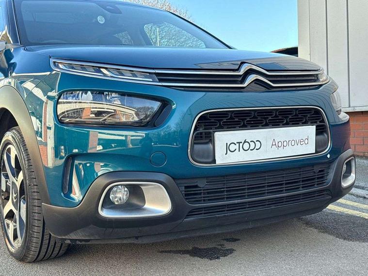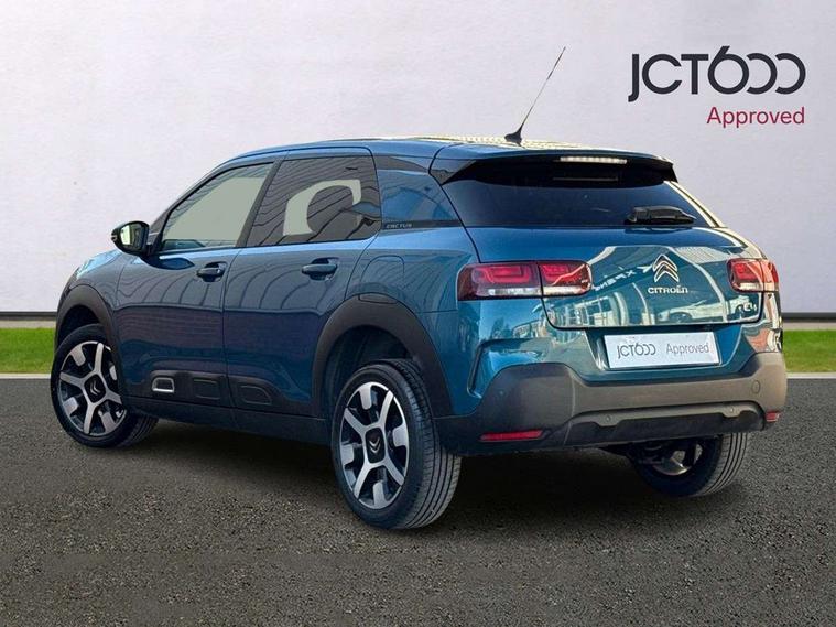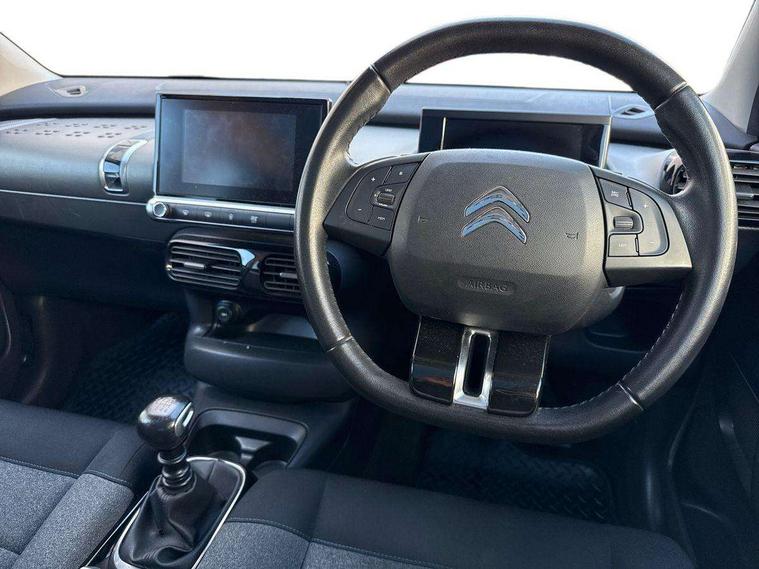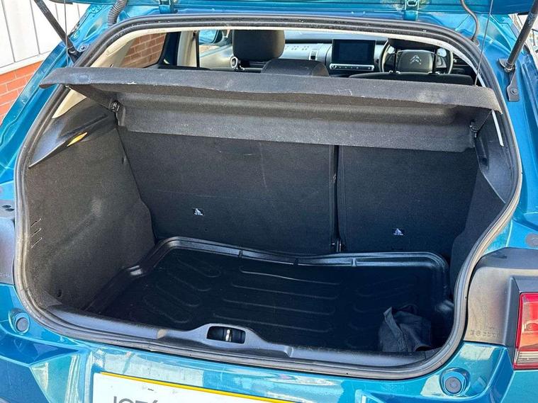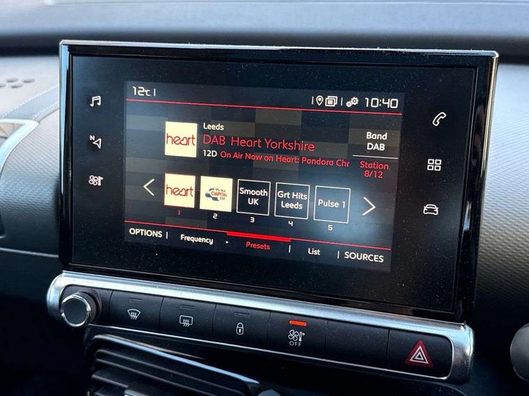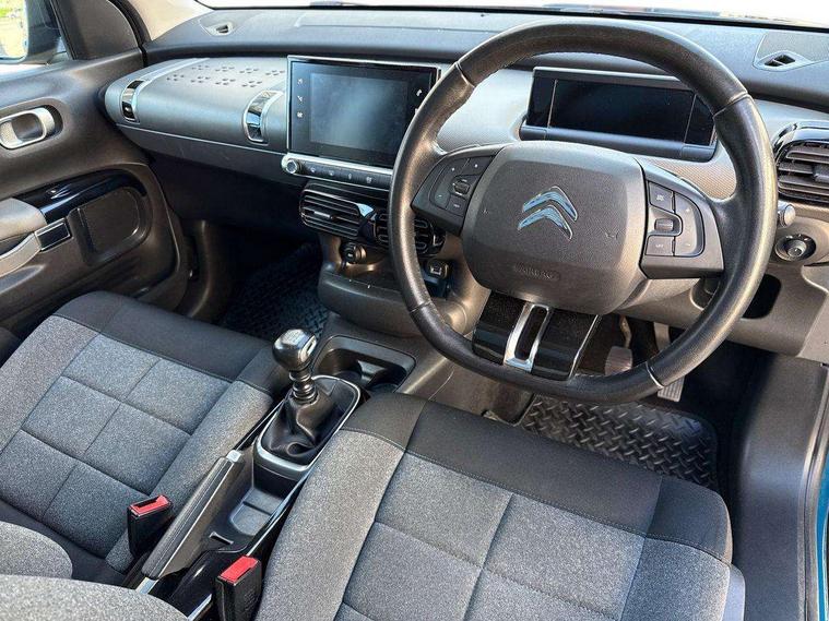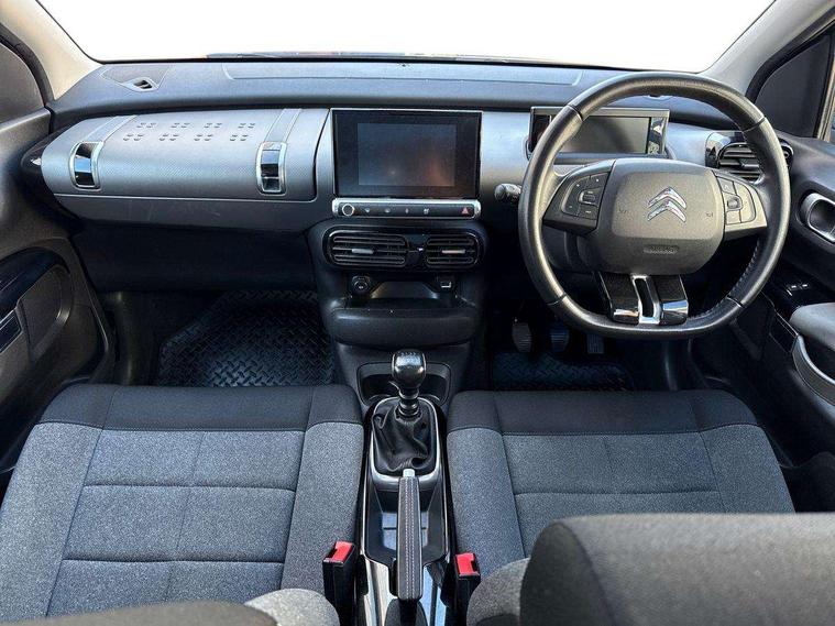 7" touch screen, Citroen connect box emergency assist system, Citroen connected nav with connect box and emergency assist system, Coffee Break Alert, Cruise control + speed limiter, Driver attention alert system, Electric power steering, Exterior temperature display with ice alert, Gear efficiency indicator, Lane departure warning system, Mirror Screen with Apple car play/Android Auto, Diesel particulate filter, Suspension with Progressive Hydraulic Cushions, Auxiliary input socket, Bluetooth handsfree and media streaming, DAB Digital radio, RDS radio with MP3 player and 6 speakers, Steering wheel mounted controls, USB socket, 3D effect LED rear lights, Acoustic windscreen, Body colour door handles, Body coloured bumpers, Dark tinted rear windows, Electric adjustable/heated/folding door mirrors, Electric front windows - anti trap + one touch, Electrochrome rear view mirror, Front fog lights with cornering function, Gloss black rear insert with Cactus lettering, Halogen headlights with height adjustment, Hinged rear windows, LED daytime running lights, Magic wash, Rear wiper, Thermal insulated panoramic sunroof, Wheel arch extensions, 1/3 to 2/3 split folding rear seats, 12V socket in cabin, 3 rear headrests, Carpet mats, Driver seat lumbar adjustment, Driver's footrest, Front armrest, Front courtesy lights, Front head restraints, Front sunvisors with driver courtesy mirror, Height adjustable driver/front passenger seats, Larger front door pockets, Lashing eyes in boot, Leather steering wheel with integrated controls, LED front and rear reading lights, Open storage towards top of rear doors, Reach + rake adjustable steering column, Rear door pockets with bottle holders, Rear garment hooks, Rear parcel shelf, Rear storage pockets, Semi raised centre console with two cup holders, Top box dashboard storage compartment, Two front cupholders, Two rear isofix mounting points, Auto pack - C4 Cactus, City camera pack with Rear parking sensor - C4 Cactus, Gloss black pack - C4 Cactus, 3x3 point rear seatbelts, ABS with Electronic brakeforce distribution and Emergency braking assistance, Active safety brake, Airbags - Driver and front passenger with cut off device, front lateral and curtain, Electric child locks, Electronic stability control, Front seatbelt pretensioners with force limiters, Height adjustable front seatbelts, Hill start assist, Passenger airbag deactivate switch, Road sign recognition, Tyre pressure monitor, Unfastened seat belt warning on all seats, Alarm, Locking wheel nuts, Remote central locking + deadlocks, Transponder immobiliser, Space saver spare wheel,