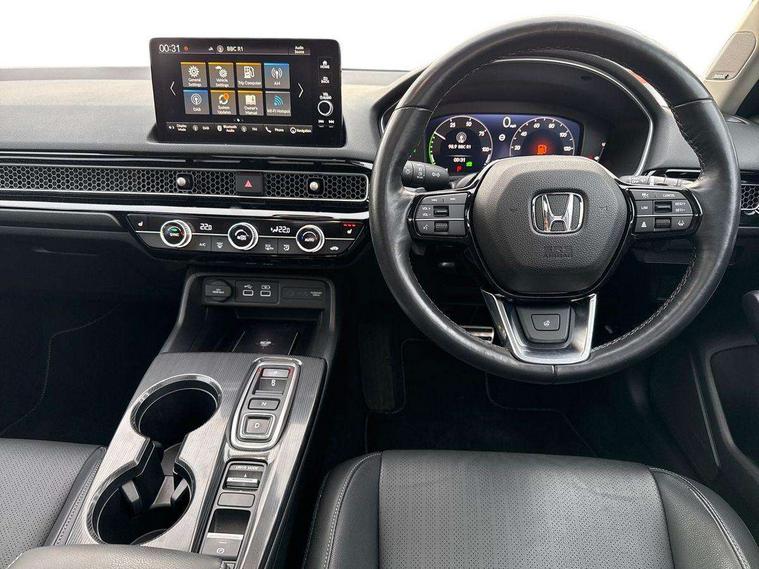 10.2" Multi information display, Adaptive cruise control, Adaptive motion for electric power steering, Adjustable speed limiter, Agile handling assist, BLIS (Blind Spot Information System) with Cross Traffic Monitor, Bluetooth hands free telephone connection, Driving modes, Economy mode, Electric power steering wheel with variable gear ratio steering, Emergency call service, Emergency stop signalling system, Forward collision warning, Front and rear parking sensors, Honda CONNECT with Navigation 9" touchscreen, AM/FM/DAB, Apple Carplay and Android Auto, live traffic info, Honda sensing, Idle stop, Intelligent speed limiter, Lane departure warning system, Lane keep assist, Low speed following, Power meter, Rear parking camera, Road departure mitigation, Smartphone wireless charging plate, Tailgate, Traffic jam assist, Traffic sign recognition, Wireless apple carplay, Vehicle stability assist, 'Shark fin' mobile antenna, 2x USB Front socket (1 data & 1 charge), Centre speaker, Digital Audio Broadcast (DAB) Tuner, Front tweeters, Premium BOSE audio system with 12 speakers, Steering wheel mounted audio controls, Subwoofer, Adaptive driving beam, Aspherical driver door mirrors, Auto dimming rear view mirror, Auto headlight adjuster, Auto headlights, Automatic coming/leaving home lighting function, Automatic rain sensing wipers, Body colour door handles, Body colour door mirrors, Chrome window garnish, Electric adjustable heated door mirrors, Electric front and rear windows, Electrically folding door mirrors, Headlight extension aluminium, High beam assist, High level LED brake light, LED daytime running lights, LED front fog lights, LED front turn type, LED Headlights, LED rear lights, Material finish grille, Panorama glass roof, Pop up hood, Privacy glass, Rear side wing doors, Rear wiper, Single hidden exhaust pipe, Variable front intermittent wipers, 3 seat bench in 2nd row, 4 way electric adjustable passenger seat, 60/40 split folding rear seat, 8 way electric adjustable drivers seat, Cargo accessory power socket, Cargo net hooks, Driver and front passenger seat armrests, Driver and front passenger seat electric lumbar adjustment, Driver's seat electric height adjustment, Driver/passenger front seatback pockets, Dual climate control air conditioning system, Front accessory power socket, Front map lights, Front/rear courtesy lights, Glovebox light, Heated front seats, Heated steering wheel, Hybrid emblem, Isofix points/i size, Leather steering wheel, Leather/synthetic leather upholstery, Meter Illumination white, Platinum chrome interior door handles, Rear air vents, Rear head restraints, Rear reading lights, Rear seat centre armrest, Single front passenger seat, Stainless steel sports pedals, Sunglasses holder, Sunvisors with illuminated vanity mirrors, Tilt/telescopic adjustable steering wheel, Tonneau cover, Trunk light, USB Rear number 2 x charge, White ambient roof light, 3x3 point rear seatbelts, ABS+EBD+Brake assist, Airbags - driver and front passenger, Airbags - Knee (AS), Airbags - Knee (DR), Anti-whiplash front headrests, Brake hold function, Collision mitigation braking system, Collision mitigation throttle control, Deflation detection system, Driver SRS airbag (single stage inflation), Electronic parking brake with auto hold, Front and rear curtain airbags, Front and rear seat belts with emergency locking retractor (ELR), Front centre airbag, Front side airbags, Hill start assist, Low speed brake system, Manual child lock in rear doors, Passenger airbag deactivate switch, Rear airbags, Regenerative braking/deceleration paddle control, Immobiliser, Mirrors and windows key fob, Remote central locking with 2 jack knife keys, Security alarm, Selectable door unlock, Smart entry + Smart start, Superlocking, Tilt sensors, Ultrasonic security sensor, 18" 2 tone black diamond cut alloy wheels, Tyre repair kit,