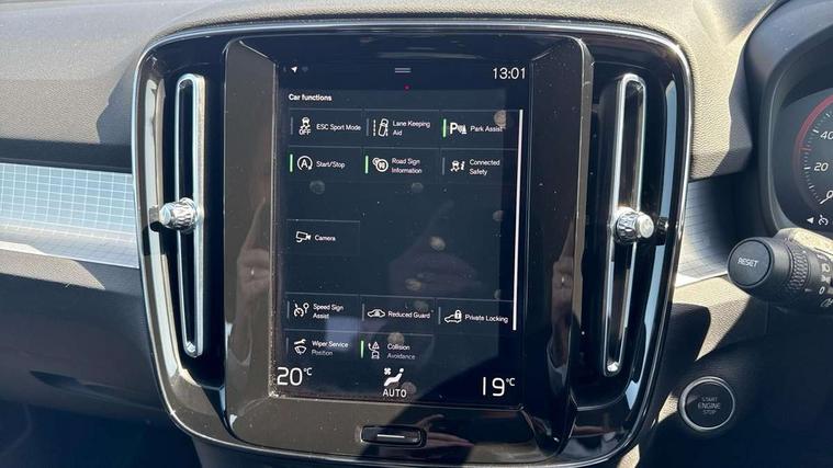 12.3" Active TFT crystal driver's instrument display, 9" centre console portrait touch screen, Adjustable steering wheel force, Bluetooth hands free telephone kit, Drive mode selector, E-call, Lane keep assist with driver alert control, Oncoming Lane Mitigation, Sensus navigation with European mapping and traffic information, Speed limiter, Speed sensitive steering, Voice activated control for key functions, Volvo on call, Dynamic chassis, DAB Digital radio, Sensus connect with high performance sound, 8 speakers/250W, front USB and 2 rear type C USB, Steering wheel mounted remote controls, Adaptive brake lights with high level LED brake lights, Auto dimming interior mirror, Automatic headlamp levelling, Automatic LED Headlights + Active high beam incorporating daytime running lights, Colour coordinated auto folding and heated power door mirrors, Dark grey front grille with chrome surround, Front and rear electric windows, High gloss black sensus surround deco, High Gloss silver front and rear skid plate, Home safe and approach lighting, Integrated roof rails in silver, Rain sensor with automatic windscreen wiper activation, Rear side wing doors, Rear wiper, Roof antenna, Roof spoiler, Visible VIN plate, 12V socket in front tunnel console and cargo compartment, 2 zone electronic climate control and rear air vent, 3 seat bench in 2nd row, 3 Spoke tailored steering wheel with chrome trim, 60/40 versatile split folding rear seat, A-pillar parking ticket holder, Centre console cupholders and storage, Floor mats, Front footwell illumination, Front headrests, Front reading light and theatre lighting, Front tunnel net pocket and integrated waste bin, Glovebox bag hook, Height adjustable passenger seat, Height/reach adjustable steering column, Height/tilt adjustable driver's seat, Illuminated glovebox, Illuminated luggage compartment, Illuminated vanity mirrors, Isofix attachments on rear seats, Load protection net, Rear armrest / integral cup holders / storage tray, Rear coat hook, Rear headrests, Single front passenger seat, Tailored gearknob, Underfloor cargo storage, Vanity mirror with ticket holder, 3x3 point rear seatbelts, City safety includes pedestrian, cyclist and large animal detection and front collision warning with full auto brake, Drivers knee airbag, Dual stage driver/passenger airbags, Electronic parking brake with auto hold, First aid kit, Front and outer rear seatbelt reminder and pretensioners, Front seats SIPS airbags, Hill descent control, Hill start assist, Inflatable curtain, Passenger airbag cut-off device, Road sign information display, Run off Road Mitigation, Run off Road Protection, SIPS (Side Impact Protection System), Slippery road and hazard light alert, Stability and Traction Control with Spin control, Engine Drag Control and Corner Traction Control, Tyre pressure monitoring system, Vehicle deceleration control with Anti-lock Brake System, Electronic Brake Distribution and Emergency Brake Assist, Warning triangle, WHIPS whiplash protection system - front, Anti-theft alarm including immobiliser/volume sensor + level sensor, Care key with user defined top speed, Key integrated remote control central locking + fuel flap with deadlocking system and auto open/close power windows, Keyless Start, Locking wheel nuts, Private locking for tailgate, Urban grid aluminium inlay,