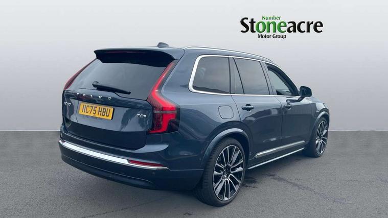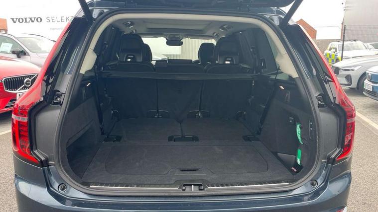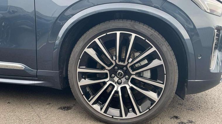 11.2" centre console touch screen, 12.3" Progressive Driver Display, 360 degree surround view parking camera with side proximity sensors, Adjustable steering wheel force, Apple carplay (wired), Bluetooth handsfree system, Drive mode settings, Driver alert control with lane keeping aid, Driver assistance (pilot assist and adaptive cruise control), Driver awareness - Blind spot information system with steer assist, cross traffic alert with autobrake and rear collision warning and mitigation, Driver Understanding System (Eye Tracking), Emergency call service, Front and rear park assist, Google Automotive Services - Navigation with Voice recoginition and google assistant, Handsfree power tailgate opening and closing, Intelligent speed assistance, Oncoming Lane Mitigation, PAS, Power operated tailgate, Service interval indicator, Speed sensitive steering, Trip computer, Volvo on call, Wireless/Inductive Mobile Phone Charging, 6m 3 phase 16amp Type 2 / mode 3 charge cable, 8 speed automatic transmission with start/stop + manual change functions, Active four C chassis - four corner adaptive dampers with electronic air suspension, Electric rear axle drive, Lithium-ion battery, On board charger - 6.4 kW 2 phase/3.7kW single phase, Recharging port located in nearside front wing, DAB Radio (Digital Audio Broadcasting), Low speed exterior sound speaker, Premium Sound by Bowers and Wilkins, dirac live, dolby pro logic II surround sound, 18 speakers/1400W output and fresh air subwoofer, Steering wheel remote infotainment controls, Adaptive brake lights with high level LED brake lights, Auto dimming interior + exterior mirrors, Auto folding and heated power door mirrors, Automatic headlight levelling system, Automatic matrix LED headlights with Adaptive shadow technology and Active high beam, incorporating Day running lights, Body colour bumpers, Dark tinted windows - rear side windows and rear screen, Front and rear power windows, Headlight cleaning system, High gloss black door mirrors and window surround, High gloss black front and rear bumper deco, High gloss black front grille and deco, Home safe and approach lighting, Integrated roof rails in high gloss black, Laminated side and rear windows, Power glass tilt and slide panoramic sunroof with sun curtain, Puddle lights, Rain sensor with automatic windscreen wiper activation, Rear side wing doors, Rear wash/wipe with intermittent wipe setting, Roof antenna, Roof spoiler, Visible VIN plate, 12V socket in luggage compartment, 2nd Row centre armrest with and cupholders, 3 Spoke tailored sport steering wheel with chrome trim, 4 zone electronic climate control with Clean zone air quality system + pollen filter, A-pillar parking ticket holder, Air conditioning for 3rd row of seats, Air purifier PM2.5, Ambient door and instrument panel lighting, B Pillar ventilation, Bright metal luggage scuff plate, Centre console cupholders and storage, Floor mats, Front and rear courtesy lights, Front and rear door pocket illumination, Front footwell and side step illumination, Front headrests, Front reading lights, Front seat cushion extensions, Front tunnel storage illumination, Glovebox compartment light, Heated front seats, Heated rear seats, Heated steering wheel, Height/reach adjustable steering column, Illuminated front and rear aluminium tread plates, Illuminated luggage compartment, Illuminated tailgate, Illuminated vanity mirrors + ticket holder, Inner door release handle illumination, Integrated sun curtains in rear doors, Isofix outer rear child seat preparation in 2nd row, Load cover, Load protection net, Lockable glovebox compartment, Luggage compartment divider with grocery bag holder, Outboard armrest with cupholder and storage for third row passengers, Power driver seat with multi directional lumbar support and memory for seat and exterior mirrors, Power folding 2nd row headrests, Power passenger seat with multi directional lumbar support and memory, Rear footwell and side step illumination, Rear headrests, Rear reading lights, Second row integrated child seat for centre seat, Single front passenger seat, Three 2nd row individual folding passenger seats with fore/aft adjustment, Two 3rd row individual folding passenger seats, Underfloor luggage compartment storage, 7 three point seatbelts, City safety with steering support includes pedestrian, cyclist detection, front collision warning with full auto brake and rear auto brake, Driver and passenger airbags, Drivers knee airbag, First aid kit, Front seats SIPS airbags, Hill descent control - off drive mode, Hill start assist, IC (Inflatable Curtains) - Full Length, Passenger airbag cut-off switch, Power child locks on rear doors, Power parking brake with auto hold function, Road sign information display, Run off Road Protection, Seatbelt reminder and pretensioners for all seats, SIPS (Side Impact Protection System), Slippery road and hazard light alert, Stability and Traction Control with Spin control, Engine Drag Control and Corner Traction Control, Tyre pressure monitoring system, Vehicle deceleration control with Anti-lock Brake System, Electronic Brake Distribution and Emergency Brake Assist, Warning triangle, WHIPS whiplash protection system - front, 2x Key integrated remote control central locking + deadlocking system and auto open/close windows, Anti-theft alarm including immobiliser/volume sensor + level sensor, Keyless drive includes keyless entry and keyless start, Locking wheel nuts, Tailored instrument panel and door tops, Tyre sealant kit and compressor,