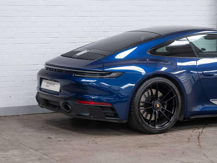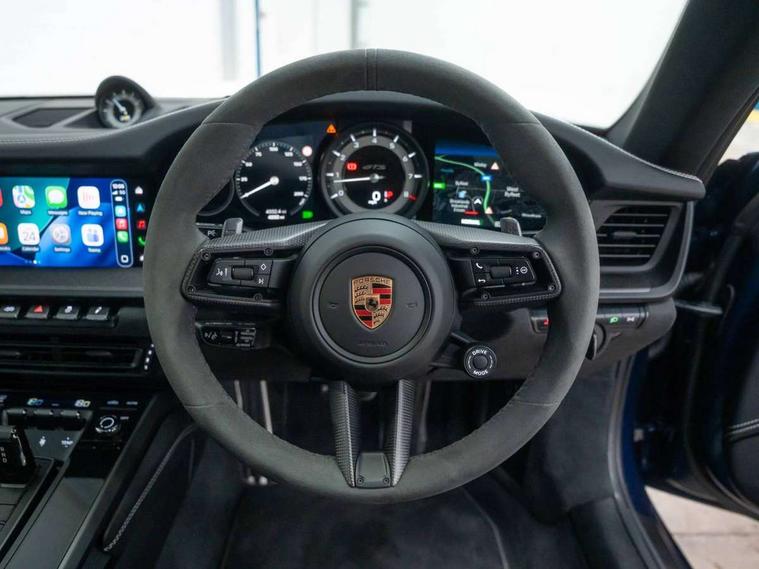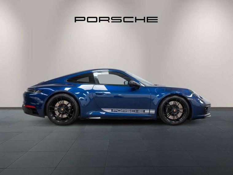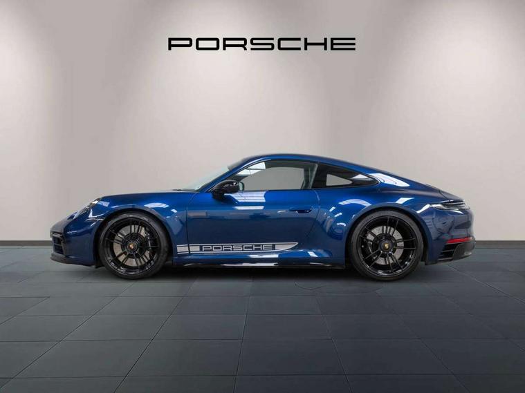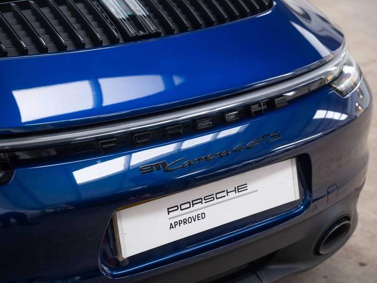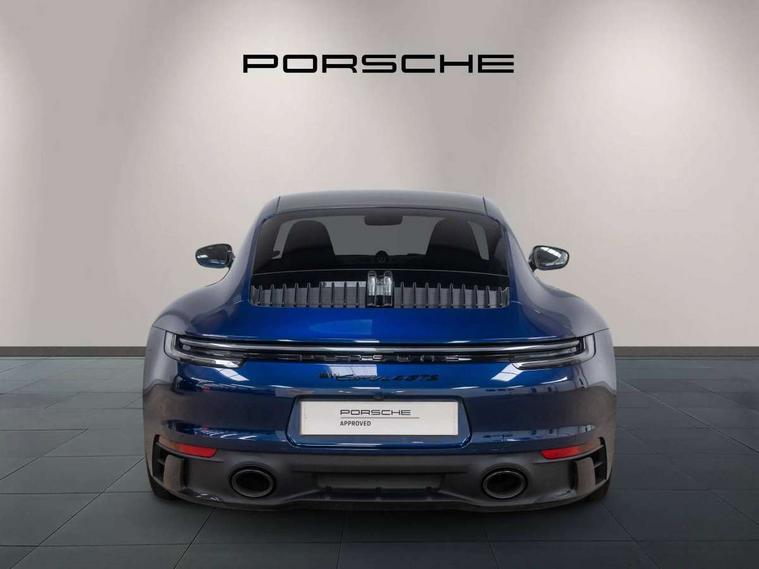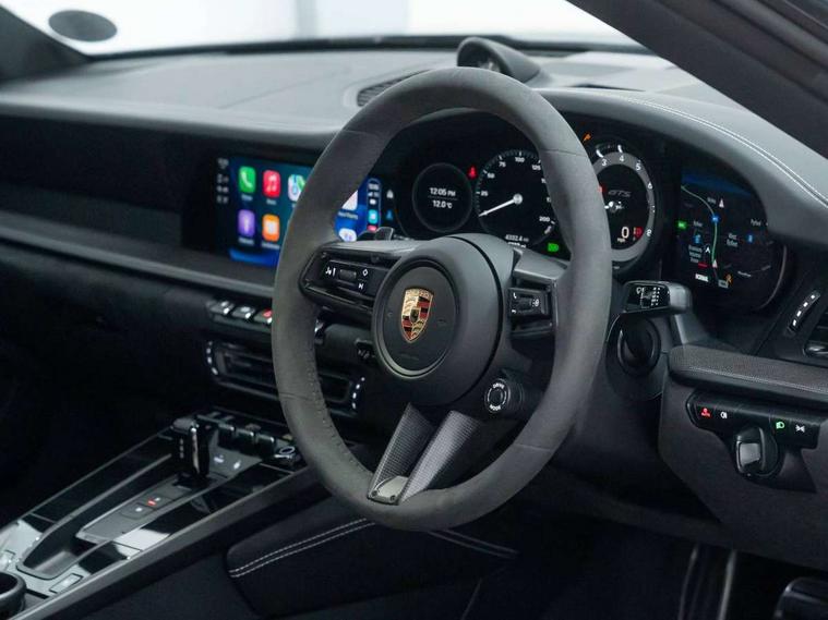 10.9 inch centre display, Automatic start/stop system, eCall emergency system, Gear indicator in rev counter, Instrument cluster with central analogue rev counter and two 7-inch TFT displays, Porsche Communication Management (PCM) including online navigation module, mobile phone preparation, audio interfaces and voice control system, Service indicator, Smartphone integration with Apple CarPlay and Android auto, Stationary management with HOLD function, Trip computer, Warn and brake assist including pedestrian protection, 8 Speed Porsche Doppelkupplung (PDK) with dual mass flywheel, All wheel drive with map controlled multi plate clutch Porsche Traction Management (PTM), Aluminium block and cylinder heads, Catalytic converters, Direct fuel injection (DFI), Dry sump lubrication, Expansion intake manifold, Four valve per cylinder, McPherson-strut suspension with anti-roll bar at front, Porsche Stability Management (PSM), ABS with extended brake functions, Porsche Torque Vectoring Plus (PTV Plus) inc electronically regulated rear differential lock and fully variable torque distribution, Twin turbocharger intercooled, Two gasoline particulate filter, VarioCam Plus variable valve timing and switchable valve lift, Water-cooled engine with thermal management, 4 valves per cylinder, 2 USB-C connectivity and charge ports in the centre console storage compartment, DAB Digital radio, 3rd brake light, Auto deploying rear spoiler, Automatic headlight activation including welcome home lighting, Automatically dimming interior and exterior mirrors with integrated rain sensor, Black trim strips, Body coloured bumpers, Green tinted heat insulating glass, Heated rear windscreen, Intelligent lightweight body in Aluminium/Steel composite construction, LED auxiliary light units in the front end with position lights, direction indicators and side indicators, LED daytime running lights, PORSCHE black lettering integrated in taillight strip, Power windows with one touch operation and door seal protection, Rear boot, Rear lid grille with vertical slats in satin black, Side skirts trim in black, Trims on sideskirts in black, Windscreen washer system with aero wiper blades and washer jets, 12V socket in front passenger footwell, 2 individual seats in 2nd row, 2+2 seater with rear engine, Ascending centre console with storage compartment, Black race-tex on steering wheel rim, seat centres, door handles, door panel armrests, gear lever, centre console storage compartment lid partially, Driver and front passenger illuminated vanity mirrors, Front and rear head restraints, Heated front seats, LED door lights, LED footwell lights, LED glove compartment lighting, LED ignition light, LED luggage compartment lighting, LED orientation light, LED reading lights, Lockable glove compartment, Luggage compartment lid release, Particle/pollen filter with active carbon filter, Single front passenger seat, Split folding rear seats, Storage compartments in each doors, Two individual cupholders 1x as inlet in centre console and 1x passenger side, Two zone auto climate control with separate temperature settings for driver/front passenger, automatic air recirculation mode incl air quality sensor, Sport Design pack - 911 GTS, 6 piston aluminum monobloc fixed front calipers and 4 piston aluminum monobloc fixed rear calipers with cross-drilled, internally vented brake discs, Electric parking brake, Electromechanical power brake, Full size two stage airbags for driver and front passenger, Pedestrian protection, Porsche side impact protection system includes side impact protection in doors, curtain, head/thorax airbags for driver/front passenger in each door, Tyre pressure monitoring system, Dashcam preparation, Engine immobiliser with remote central locking and alarm system with ultrasonic sound based interior surveillance, Porsche vehicle tracking system (PVTS Plus), Tyre sealing compound and electric air compressor kit,