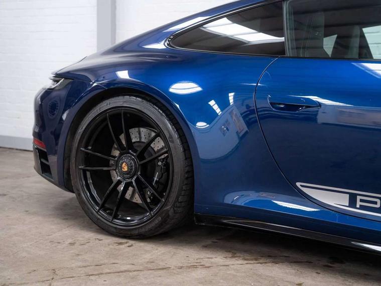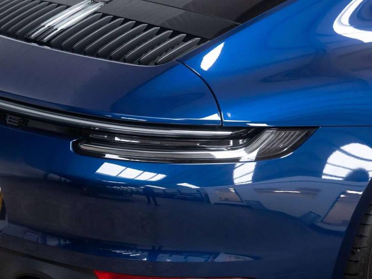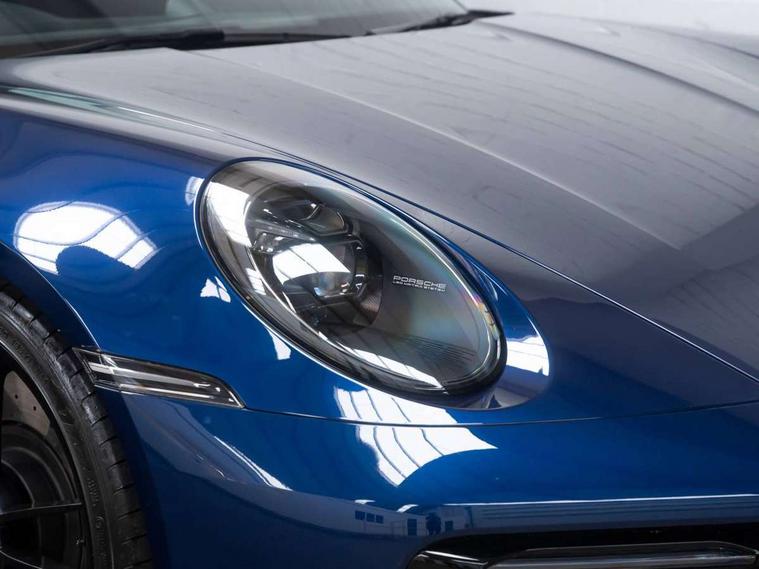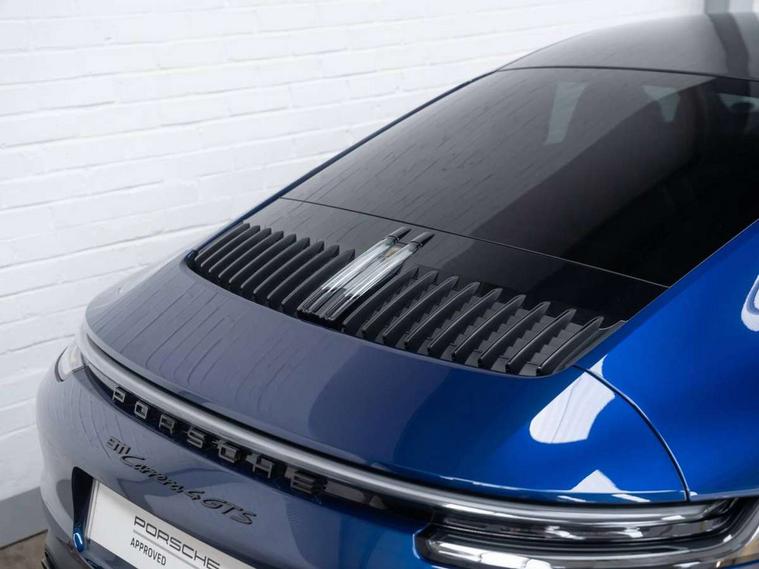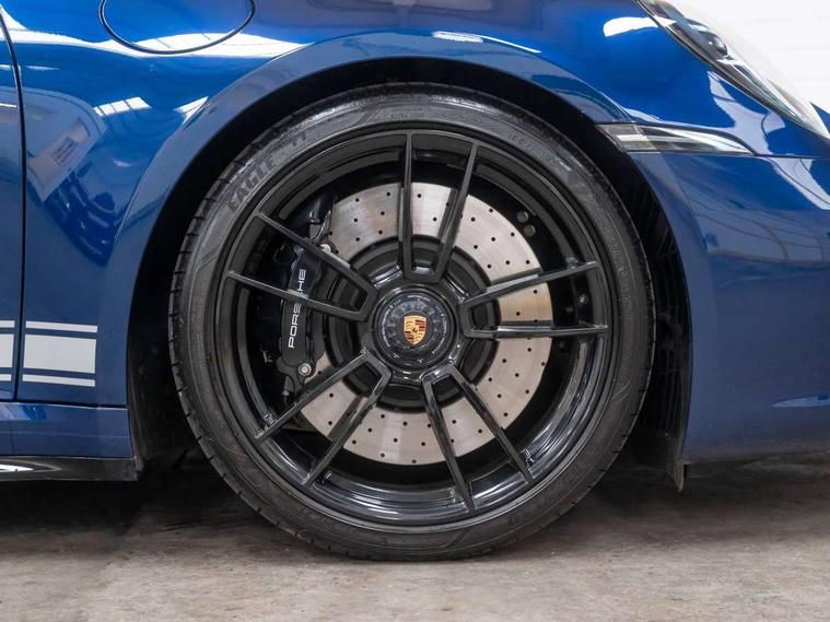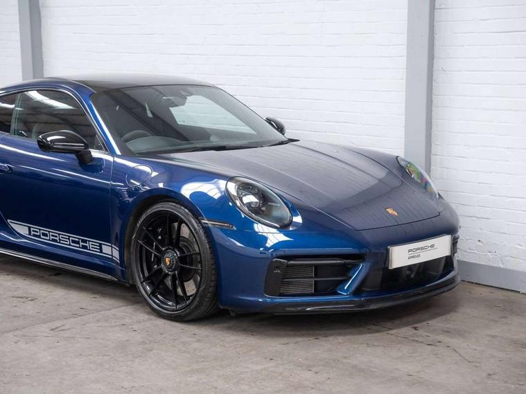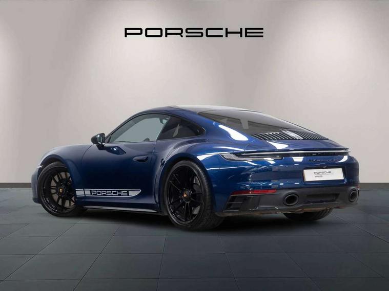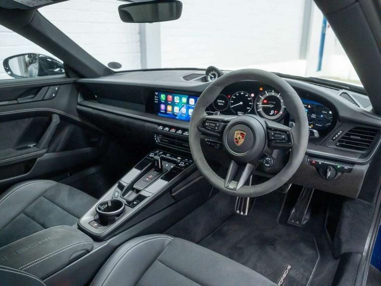 10.9 inch centre display, Automatic start/stop system, eCall emergency system, Gear indicator in rev counter, Instrument cluster with central analogue rev counter and two 7-inch TFT displays, Porsche Communication Management (PCM) including online navigation module, mobile phone preparation, audio interfaces and voice control system, Service indicator, Smartphone integration with Apple CarPlay and Android auto, Stationary management with HOLD function, Trip computer, Warn and brake assist including pedestrian protection, 8 Speed Porsche Doppelkupplung (PDK) with dual mass flywheel, All wheel drive with map controlled multi plate clutch Porsche Traction Management (PTM), Aluminium block and cylinder heads, Catalytic converters, Direct fuel injection (DFI), Dry sump lubrication, Expansion intake manifold, Four valve per cylinder, McPherson-strut suspension with anti-roll bar at front, Porsche Stability Management (PSM), ABS with extended brake functions, Porsche Torque Vectoring Plus (PTV Plus) inc electronically regulated rear differential lock and fully variable torque distribution, Twin turbocharger intercooled, Two gasoline particulate filter, VarioCam Plus variable valve timing and switchable valve lift, Water-cooled engine with thermal management, 4 valves per cylinder, 2 USB-C connectivity and charge ports in the centre console storage compartment, DAB Digital radio, 3rd brake light, Auto deploying rear spoiler, Automatic headlight activation including welcome home lighting, Automatically dimming interior and exterior mirrors with integrated rain sensor, Black trim strips, Body coloured bumpers, Green tinted heat insulating glass, Heated rear windscreen, Intelligent lightweight body in Aluminium/Steel composite construction, LED auxiliary light units in the front end with position lights, direction indicators and side indicators, LED daytime running lights, PORSCHE black lettering integrated in taillight strip, Power windows with one touch operation and door seal protection, Rear boot, Rear lid grille with vertical slats in satin black, Side skirts trim in black, Trims on sideskirts in black, Windscreen washer system with aero wiper blades and washer jets, 12V socket in front passenger footwell, 2 individual seats in 2nd row, 2+2 seater with rear engine, Ascending centre console with storage compartment, Black race-tex on steering wheel rim, seat centres, door handles, door panel armrests, gear lever, centre console storage compartment lid partially, Driver and front passenger illuminated vanity mirrors, Front and rear head restraints, Heated front seats, LED door lights, LED footwell lights, LED glove compartment lighting, LED ignition light, LED luggage compartment lighting, LED orientation light, LED reading lights, Lockable glove compartment, Luggage compartment lid release, Particle/pollen filter with active carbon filter, Single front passenger seat, Split folding rear seats, Storage compartments in each doors, Two individual cupholders 1x as inlet in centre console and 1x passenger side, Two zone auto climate control with separate temperature settings for driver/front passenger, automatic air recirculation mode incl air quality sensor, Sport Design pack - 911 GTS, 6 piston aluminum monobloc fixed front calipers and 4 piston aluminum monobloc fixed rear calipers with cross-drilled, internally vented brake discs, Electric parking brake, Electromechanical power brake, Full size two stage airbags for driver and front passenger, Pedestrian protection, Porsche side impact protection system includes side impact protection in doors, curtain, head/thorax airbags for driver/front passenger in each door, Tyre pressure monitoring system, Dashcam preparation, Engine immobiliser with remote central locking and alarm system with ultrasonic sound based interior surveillance, Porsche vehicle tracking system (PVTS Plus), Tyre sealing compound and electric air compressor kit,
