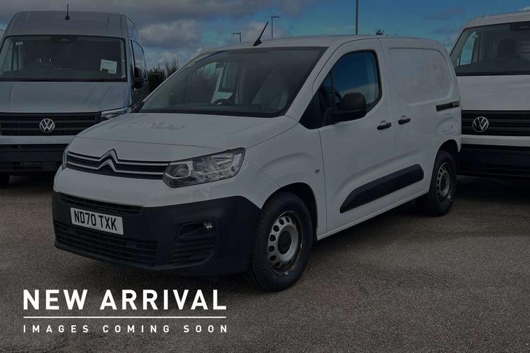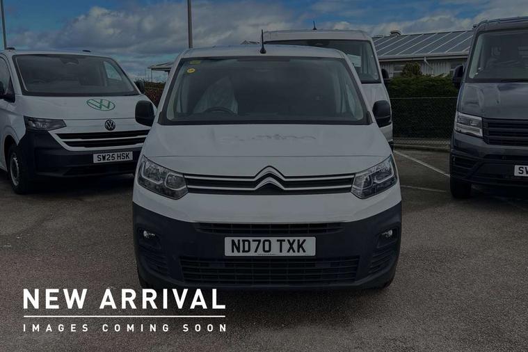 Citroen connect box with emergency and assistance system, Electric power assisted steering with height and reach adjustable steering wheel, Lockable fuel cap, Multi-function trip computer, Rev counter with maintenance and gear efficiency indicators (GEI), Tyre pressure monitor, Electric front windows with one touch operation, Electrically adjustable door mirrors, Front fog lights, High level third brake light, Manually folding door mirrors, Nearside side sliding door, Side protection rubbing strips, Two speed intermittent front wipers, Visible VIN at windscreen base, 6 floor mounted load securing rings, 6 way adjustable driver seat with lumbar support and under seat storage, Cup holders for driver and passenger on either side of the dashboard, Curitiba cloth upholstery, Extenso modular fold front passenger 2 seat bench - pivot writing table, storage under central seat, load through hatch bulkhead, load protect cover, Front door pockets with bottle holder, Hard plastic floor protection in cabin, Overhead storage shelf in cabin, Topbox storage compartment, Loading pack - Berlingo, Worksite pack - Berlingo, Automatic activation of hazard warning lights on major deceleration, Door opening warning and audible lights on warning, Driver seatbelt unfastened warning, Driver's airbag, Dashboard mounted central locking push button and auto locking above 7mph, Remote central locking with deadlocking, selective cab and load area locking via 3 button plip remote control key, Thatcham approved rolling code transponder immobiliser, Automatic electronic parking brake, Electronic Stability Control and ABS with hill start assist, EBA and EBFD, 16" steel wheels with black centre cap, Full size steel spare wheel,