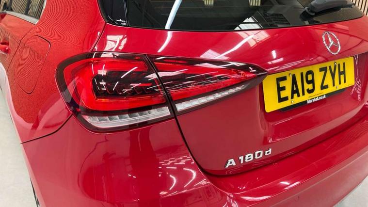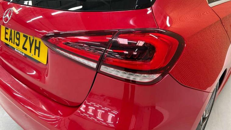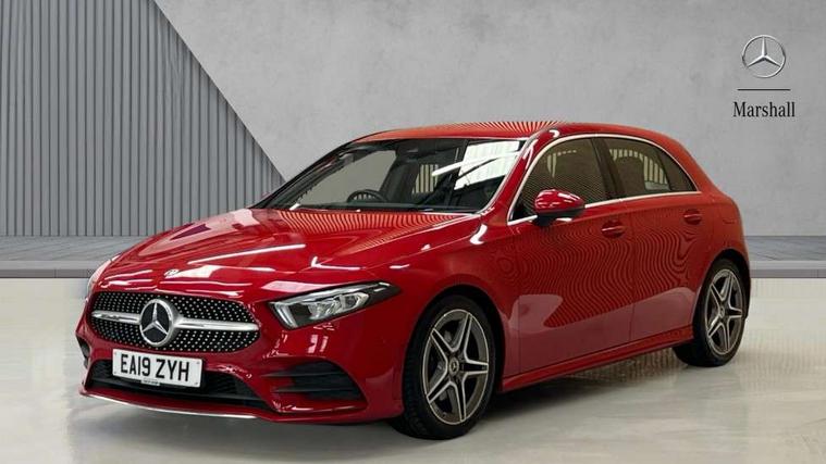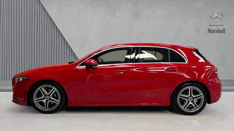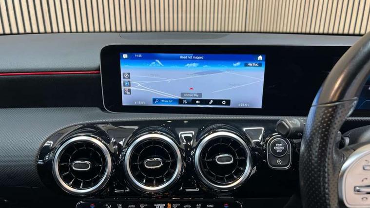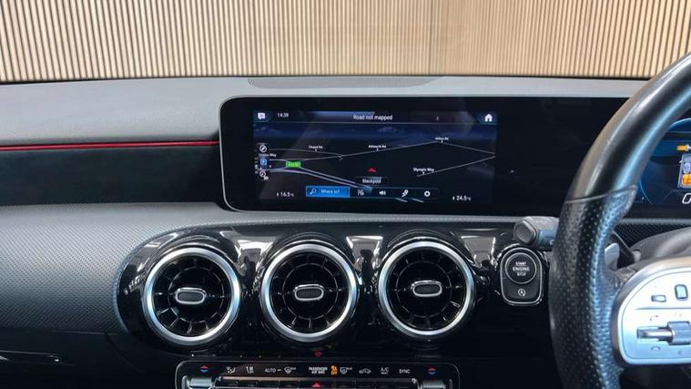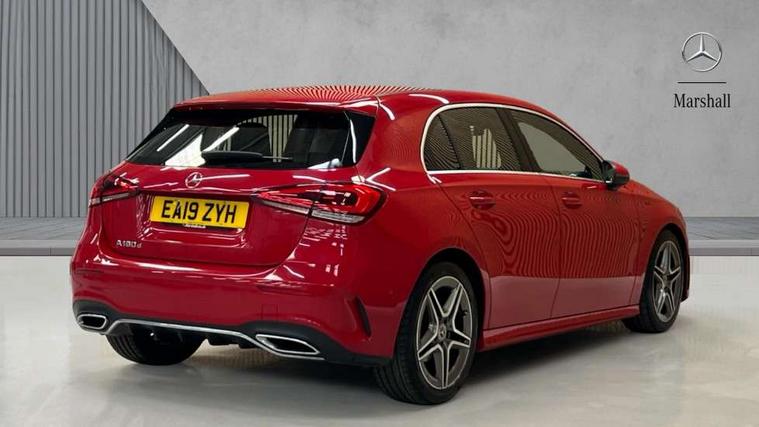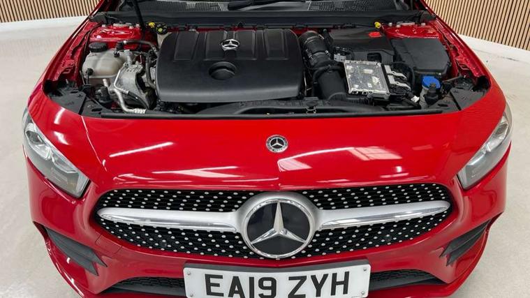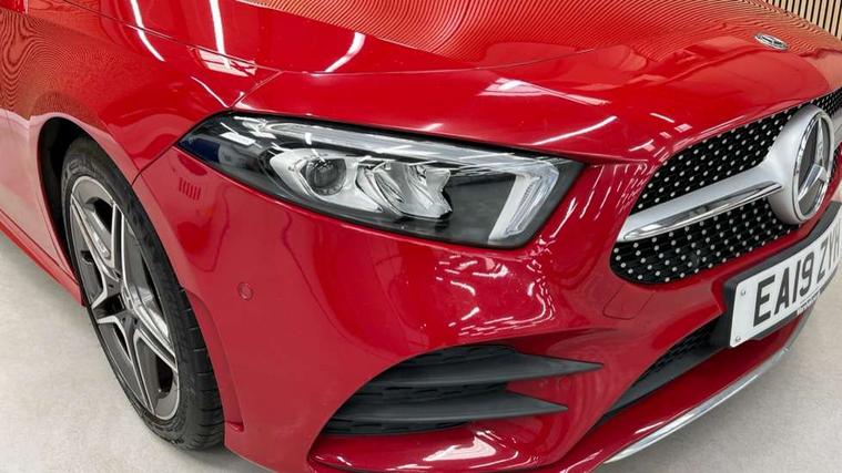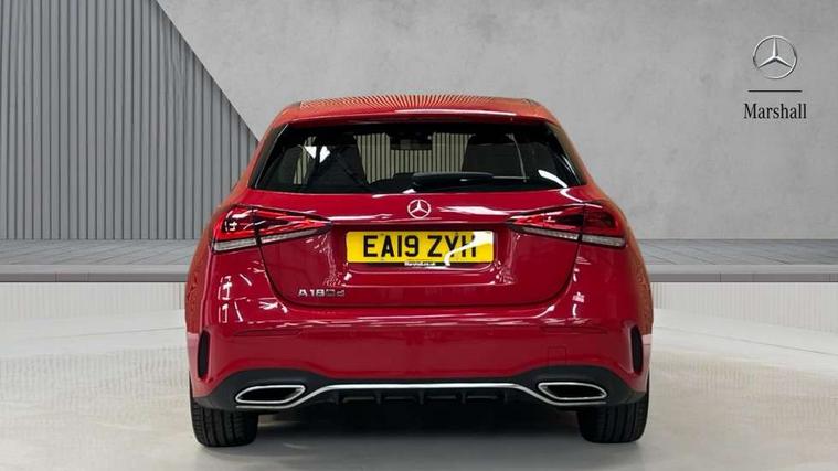 10.25" media display, 180 degree rear view camera with parking guidelines, 7" colour screen in instrument panel, Active lane keep assist, Active park assist with parktronic system including front and rear parking sensors, Attention assist, Brake pad wear indicator warning light, Direct steering, Direction indicators with lane change function, DYNAMIC SELECT with a choice of driving modes (ECO, Comfort, Sport, Sport+ and Individual), Fluid level warning indicator for fuel, oil, coolant and washer fluid, Hard-disk navigation, Lamp failure indicator, Mercedes me connect including emergency call system, accident recovery, breakdown management and maintenance, Outside temperature gauge, Radio aerial integrated into roof spoiler, Service indicator (ASSYST), Speed sensitive power steering, Stop/start system, Trip computer, Voice activation, Lowered comfort suspension, DAB Digital radio, Dual bluetooth interface, 2 USB ports (type C), MBUX multimedia system with DAB digital radio and touchpad including satellite navigation, Active aerodynamics with AIRPANEL in the front apron, Adaptive brake lights, AMG front, rear apron and side skirts, Blue tinted glass, Body colour bumpers, Body colour door handles, Body colour side skirt, Body coloured door mirrors, Chrome beltline trim, Diamond radiator grille with chrome pins and silver louvre + chrome insert, Electric adjustable and heated door mirrors with integrated LED side indicators, Electric front windows, Electric rear windows, Exhaust system - Twin trapezoidal tailpipes in polished stainless steel, Headlamp assist automatic headlamp activation, Heated glass rear windscreen + timer control, LED high performance headlamps with integrated LED daytime running lights, LED tail lamp, LED third brake light, Rain sensor windscreen wipers, Rear fog lights, Rear wiper, 12V socket, 3 Spoke flat bottom leather multi function steering wheel with perforated leather in grip area, 40:20:40 split folding rear seats, Air vents surround and cruciform nozzle in silver chrome, AMG floor mats with red stitching, Artico man-made leather/Microfibre Dinamica upholstery with red contrast stitching, Auto Mercedes-Benz child seat recognition sensor, Black roof lining, Brushed stainless steel sports pedals with rubber studs, Controller on centre console with chrome surround, Cup holder and stowage compartment lighting, Front centre armrest with storage compartment, Front door sills with Mercedes Benz lettering, Front doors with ambient and signal light, Front footwell lights, Front reading lamps, Front seat backs luggage nets, Front seat cushion length adjustment, Front signal exit lamp, Front vanity lights, Gearshift paddles on steering wheel, Handle recess/closing light, Heated front seats, Height/reach adjustable steering column, Illuminated glovebox, ISOFIX Child seat top tethers and anchor fixings, Load securing rings in luggage compartment, Luggage compartment cover, Manual height adjustable front seats, Oddments tray lighting, Rear head restraints, Rear Reading Lamps, Seat occupancy sensor for front passenger seat, Sports seats with integrated headrests, Storage compartment under load area floor, Sunvisors with illuminated vanity mirrors, Touchpad, Touchpad illumination, Twin front cupholders, Two zone thermotronic luxury automatic climate control, Mirror package - A Class, Seat comfort pack - A Class, 3 rear 3 point seatbelts, ABS with Brake Assist, Active bonnet, Adaptive brake assist with hold function and hill start assist, Black seatbelts, Brake calipers with Mercedes-Benz lettering + perforated brake discs, Childproof locks manually operated for rear doors and electrically operated for rear power windows, Crash responsive emergency lighting, Driver and passenger head and side airbags, Drivers knee airbag, Dual stage driver/passenger airbags, Electronic parking brake, ESP curve dynamic assist, ESP with ASR, Front and rear seatbelt reminder, Tyre pressure monitoring system, Warning triangle and first aid kit, Window airbags, Alarm system/interior protection/immobiliser, Keyless Go, Remote central locking and crash sensor with emergency opening function, 18" AMG 5 twin spoke light alloy wheels in titanium grey with highsheen finish, Tirefit sealant kit,