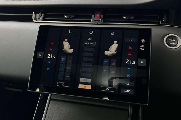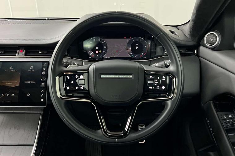11.4" touch screen, 3D 360 degree surround camera with wade sensing, Adaptive cruise control, Android Auto, Apple car play, Blind spot assist, Bluetooth connectivity, Brake pad wear indicator warning light, Driver condition monitor, eCall emergency system, Eco mode, Electronic power assisted steering (EPAS), Front and rear parking aid, Head up Display, InControl remote, Interactive driver display, Land Rover InControl apps, Lane keep assist, Pivi pro connected includes diamond pivi variant, smart settings, connected navigation pro, nuance speech licence, Powered tailgate/boot lid, Rear collision monitor, Rear traffic monitor, Traffic sign recognition with adaptive speed limiter, Voice control system, Wireless device charging, Adaptive dynamics, All terrain progress control, Configurable dynamics, Diesel exhaust fluid (DEF) large tank, Efficient Driveline, Large fuel tank, Terrain Response 2, Digital Audio Broadcast radio-DAB, Steering wheel mounted controls, Acoustic laminated windscreen, Auto headlights, Automatic headlight levelling, ClearSight interior rear view mirror, Electric windows with one touch open/close and anti trap, Flush deployable exterior door handles, Front and rear recovery eyes, Front fog lights, Heated rear window with timer, Heated washer jets, Heated windscreen, Pixel LED headlights with signature DRL and LED tail Lights, Power fold, auto-dimming, heated door mirrors with approach lights and auto dimming driver side, Rain sensing windscreen wipers, Range rover branding illuminated metal tread plates in loadspace and row 1 with brand name script and metal in row 2, Rear animated directional indicators, Rear fog lights, Rear side wing doors, Rear wiper, Side repeater indicators in mirror, Sliding panoramic roof with powered sunblind, Tailgate spoiler, Third brake light, Winter wiper park position, 14 way driver memory electric front seats with 2 way manual headrests + 4 way lumbar support, bolsters, 40:20:40 split folding rear seats with centre headrest and armrest, Ambient interior lighting, Bright metal pedals, Cabin Air Purification plus, Configurable cabin lighting, Customer configurable single point entry, Electrically adjustable steering column with memory function and easy entry/exit, Front and rear cupholders, Heated and cooled front seats, Heated rear seats, Heated steering wheel, Isofix system on outer rear seats, Overhead lighting console, Overhead stowage for sunglasses, Passive front head restraints, Premium carpet mats, Rear air vents, Rear head restraints, Satin chrome gearshift paddles, Single passenger seat, Sunvisors with illuminated vanity mirrors, Twin sliding front centre armrest, Online pack with data plan - Evoque, Power socket pack 2 - Evoque, 3 rear 3 point seatbelts, Anti-lock braking system (ABS), Brake hold function, Customer configurable autolock, DSC - Dynamic Stability Control, Electronic brake force distribution, Electronic parking brake, Electronic traction control, Emergency braking, Front and rear seatbelt reminder, Hill descent control, Hill launch assist, Low traction launch, Occupant protection assist, Passenger seat occupant detector, Power operated child locks, Roll stability control, Six airbags - Driver and passenger airbags/driver knee airbag/front side airbag and curtain airbags, Torque vectoring brake, Tyre pressure monitoring system, Alarm, Immobiliser, Intrusion sensor, Keyless entry, Locking wheel nuts, All season tyres,