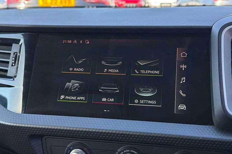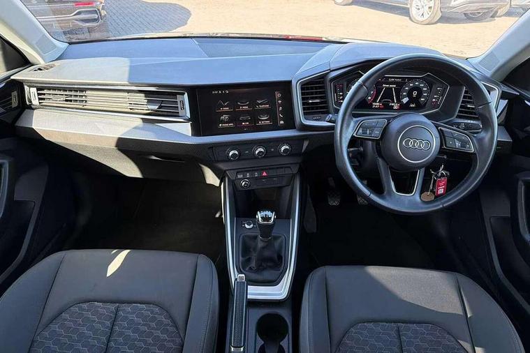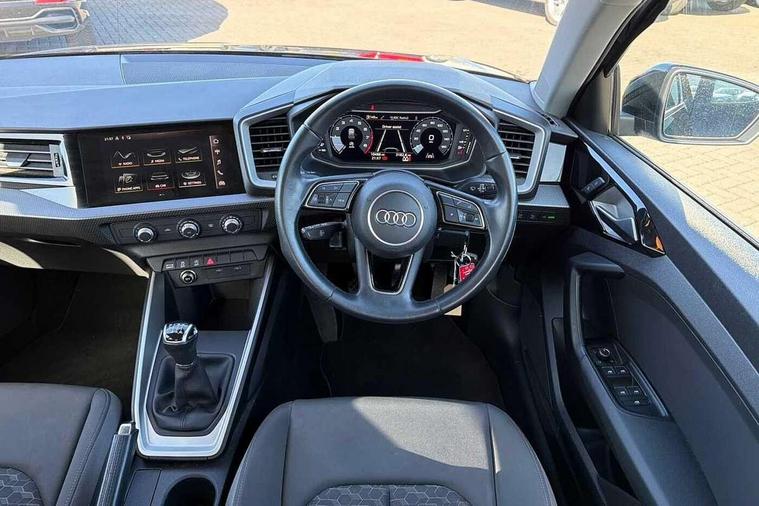 10.25" Digital instrument cluster display classis style instrument dials + speed, odometer, time, outside temperature, telephone menu + fuel level warning, Audi connect safety emergency and service including E-call, Audi drive select - power steering assistance + engine, Audi smartphone interface with connect compatible smartphone via USB directly MMI display + Nav, music, third party apps controlled via MMI controller, Automatic start/stop system, Bluetooth interface, Cruise control, Driver's information system, Electromechanical power steering, Emergency services call system, Lane departure warning system, Service interval indicator, Speed limiter, Voice control system, Washer fluid level indicator, Dynamic suspension, 1 x SDXC card reader, 2 x USB type C connection points, DAB Digital radio, MMI radio plus with 8.8" colour MMI display screen and MMI touch, Auto dimming rear view mirror, Body coloured bumpers, Body coloured door mirrors, Electric front and rear windows, Electrically adjustable, heated, folding door mirrors with integrated LED side indicator, Front side air inlets in grained matt black and C frame in titanium black, Heat insulating glass windscreen and side windows, Heated rear windscreen, High level LED brake light, LED headlights with LED rear lights + dynamic rear indicators + headlight adjustment and high beam, turning light + LED daytime running lights, Radiator grille and rear diffuser in matt titanium black, Radiator protective grille frame in matt aluminium silver, Rain and light sensors, Rear fog lights, Rear side wing doors, Rear wing door, Rear wiper, Side front spoiler lips in grained matt black, 12V socket in centre console with two cup holders, 3 rear seats with headrests, 3 seat bench in 2nd row, 40:60 Split folding rear seat or folded fully, Door sill trims with aluminium inlay, Driver and passenger seat with manual height adjust with forward and backwards adjustment, Front head restraints, Front passenger seat, Front/rear floor mats, Height and reach adjustable steering wheel, ISOFIX child seat mounting for front passenger and outer rear seats including top tether attachment point of outer rear seats, Leather gear knob with aluminium trim, Leatherette handbrake grip, Luggage compartment light with front and rear reading lights, Manually adjustable lumbar support in front seats, Novum cloth upholstery with front sport seats, Titanium grey cloth headlining, Luggage compartment pack - A1, 3x3 point rear seatbelts, Audi pre-sense front with pedestrain and cyclist recognition, Brake assist function, Driver and front passenger airbag with front side and head airbags, Electronic Stability Control including ABS, EBD, ASR and EDL, Front passenger airbag deactivation switch, Hill hold assist, Manual rear child locks, Seatbelt height adjustment for front seats, Seatbelt monitoring, Tyre pressure warning light, Warning triangle and first aid kit, Anti theft alarm, Anti theft wheel bolts and loose wheel warning, Immobiliser, Remote central locking with 2 foldaway keys, Aluminium trim for control switches, air vents and digital instrument cluster, Silver grey accent areas including air vents, door handle recesses and centre console in diamond paint finish, Slate grey inlays polygon structure in fine paint finish,