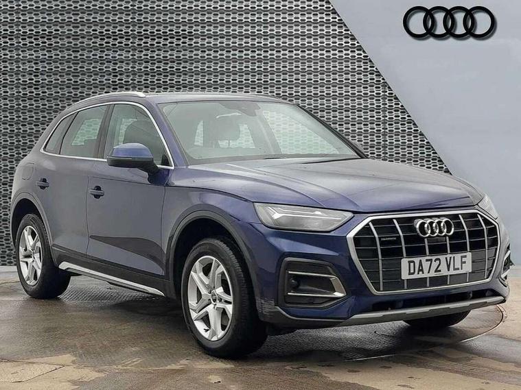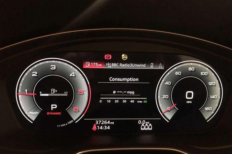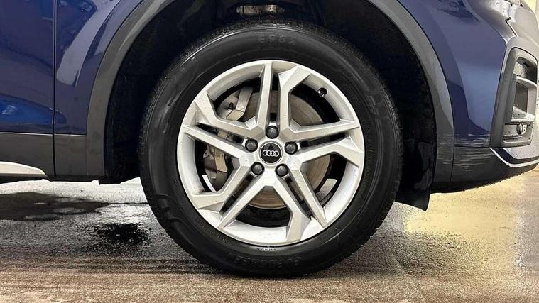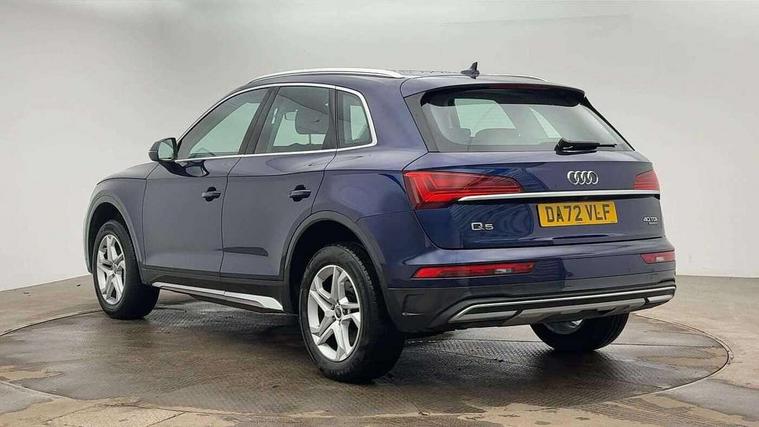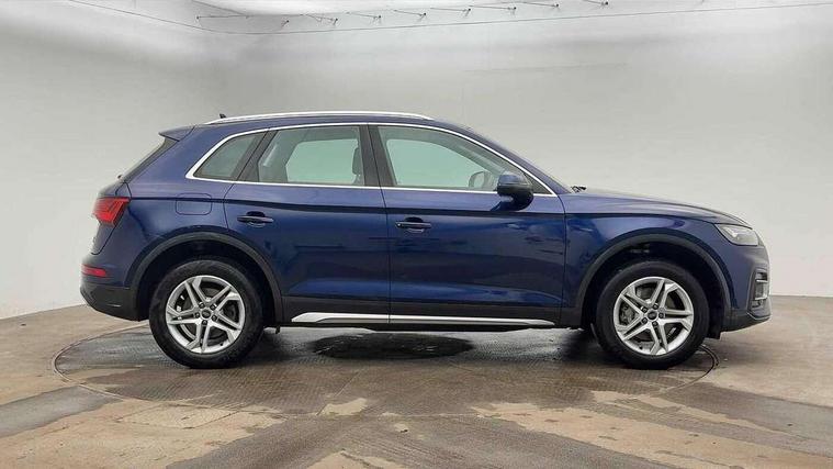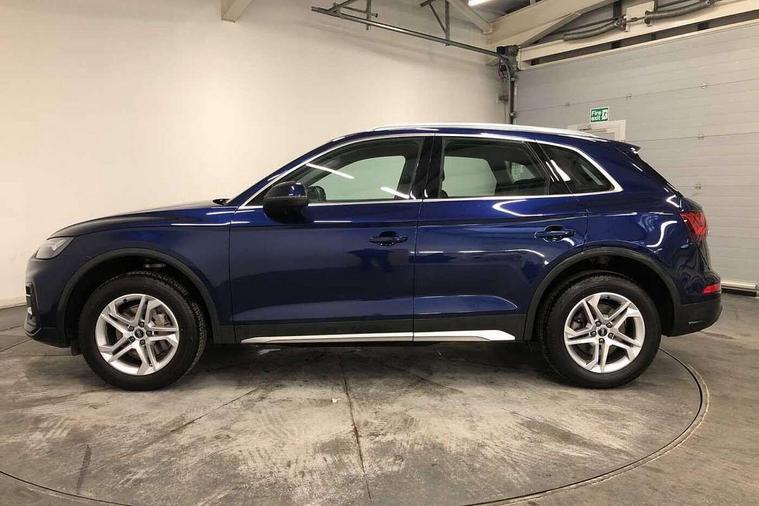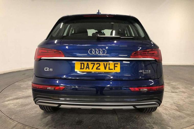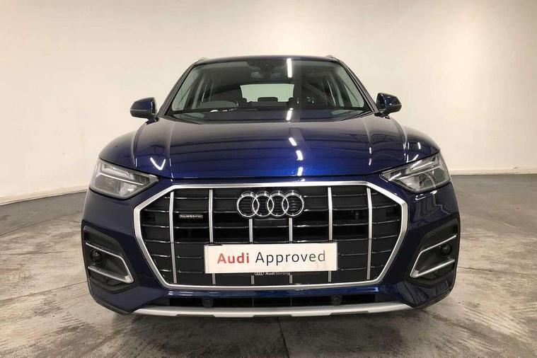 Audi connect safety and service (e-call), Audi connect with Amazon Alexa Integration, Audi drive select, Audi virtual cockpit plus with 12.3" screen and three different layout designs, Audi wireless smartphone interface, Automatic start-stop system with coasting functionality and efficiency programme, Bluetooth interface, Cruise control + speed limiter, Electro - mechanical power assisted steering, MMI navigation plus with 10.1" touch screen, Power tailgate, Reversing camera, Service interval indicator, Voice control system with Audi hotword activation "Hey Audi", Diesel particulate filter, Dynamic suspension, Quattro on demand, 2 x USB charging port with aux input socket, DAB Digital radio, Acoustic windscreen, Air inlets in matt titanium black with blades in matt aluminium silver, Aluminium roof rails, Auto dimming door mirrors, Auto dimming rear view mirror, Automatic headlight adjustment, Automatic headlights and windscreen wipers, Body colour bumpers, Body colour door mirrors, Chrome plated exhaust trims, Daytime running lights, Door sills in Selenite silver, Electric adjustable/heated/folding door mirrors, Front and rear electric windows, High level LED brake light, LED headlights and LED tail lights, Lower bumpers painted in contrast Manhattan grey, Matt selenite silver underbody protection, Matt twilight grey radiator grille with chrome vertical struts, Rear chrome trim strip below lights, Rear diffuser strip in selenite silver, Rear side wing doors, Rear spoiler, Rear wiper, Roof bars, 3 rear headrests, 3 spoke multifunction leather steering wheel with shift paddles, 40:20:40 split folding 3 rear bench seat in 2nd row with rear centre armrest, Comfort front centre armrest, Deluxe 3 zone electronic climate control, Door sills trims with aluminium inlays, Front/rear floor mats, Heated front seats, Height adjustable front head restraints, Height/reach adjustable steering column, ISOFIX child seat mounting and top tether, Luggage compartment cover, Manual seat adjustment with 4-way electric lumbar support, Removable luggage compartment floor, Silver cloth headlining, Single front passenger seat, Sunvisors with vanity mirrors, Twin leather upholstery + front sports seats, High gloss pack - Q5, LED interior light pack - Q5, 3 point seatbelts on all seats, 6 airbags - Driver, front passenger, curtain and side airbags, Electrically operated child locks on rear doors, Electromechanical parking brake, Electronic stabilisation control including ABS, ASR and EDL, Front passenger airbag deactivation, Hill descent control, Hill hold assist, Multi collision brake assist, Pop-up bonnet for pedestrian protection, Pre sense city, Seat belt force limiter, Seatbelt monitoring, Tyre pressure warning, Warning triangle and first aid kit, Anti theft alarm, Anti-theft wheel bolts, Keyless Go access/ignition system, Remote central locking, Aluminium rhombus inlay,