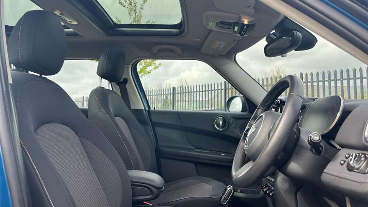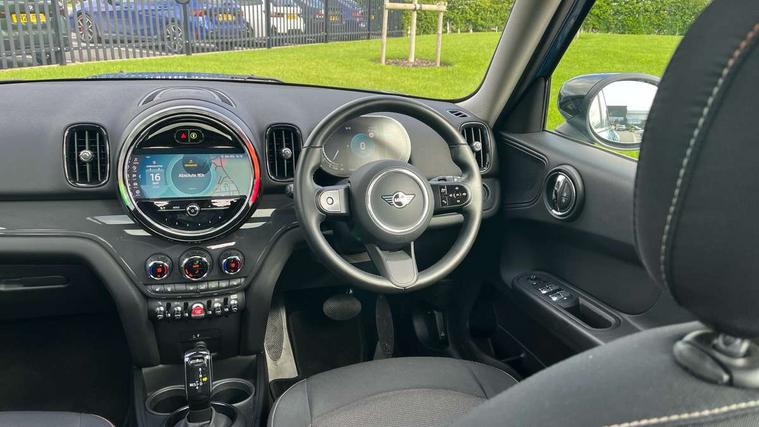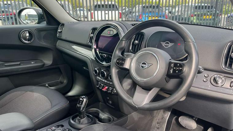 Active Guard incl speed limiting and lane departure functions with auto steering, and front collision warning with brake intervention, Automatic start/stop function with brake energy recuperation, Compatible mobile phone bluetooth with audio streaming, Cruise control with brake assist, Electro-mechanical speed dependant steering assistance, Instrument cluster, Mini E-call, On board computer, Rear parking distance control, 51 Litre fuel tank, Double Vanos system, Fully variable valve control, High precision injection, Performance Control, Steptronic transmission with double clutch, FM tuner and DAB digital radio, 3rd brake light, Body colour fuel filler cap, Day time driving lights, Door sill strips, Dynamic brake lights, Electric windows, Heated rear window, Heated windscreen washer jets, LED fog lights, LED Headlights, Left exhaust tailpipe with chrome finisher, Model logo, Model logo on Tailgate, Radiator grille, Rain sensor with auto headlights, Rear fog lights, Rear side wing doors, Rear window wiper, Side scuttle panel with integrated indicator, Split rear doors, Sun/heat protection glass, White indicator lenses, 12V socket in centre console, 3 seat bench in 2nd row, 3 spoke sport leather steering wheel + limiter function and audio controls, 360L luggage compartment capacity, 4 lashing eyes in luggage compartment, 40:20:40 split folding rear seats, Chrome interior highlights, Colour line - Carbon black, Cupholders, English handbook, Floor mats, Front headrests, Glove compartment, Headliner with grab handles and clothes hooks, Height and length steering column adjustment, Interior lighting with 12 basic colours selectable via toggle switch in roof, Isofix rear child seat preparation, Leather gearshift lever and handbrake gaiters, LED reading lights, vanity mirror lights, front foot well light and spotlight on front seats, Manual air conditioning, Mechanical seat adjustment, driver seat height adjust, forward/back and front seats backrest, Multifunction steering wheel, Passenger seat height adjuster, Rear headrests, Single front passenger seat, Storage compartments in doors, Sunvisors with vanity mirrors, Excitement pack - Countryman, Navigation pack - Countryman, 2 tone horn, 3 point seatbelts on all seats, 6 Airbags - front, side, head and seat belt tensioners, Anti-lock braking system (ABS), DSC - Dynamic Stability Control, Electronic handbrake, Front and rear disc brakes, Hill start assist, Manual rear child locks, Tyre pressure monitoring system, Alarm system with tilt sensor, monitoring doors, bonnet interior and tailgate, Auto drive away locking, Deadlocking function, Electronic vehicle immobiliser, Locking wheel bolts, Start/stop toggle with keyless go, Tool kit,