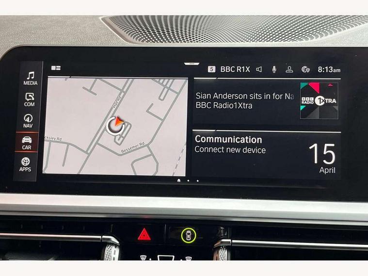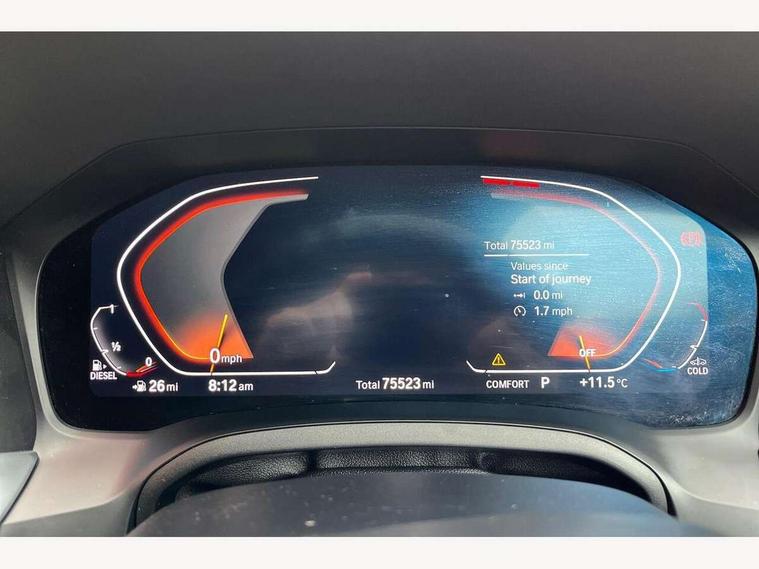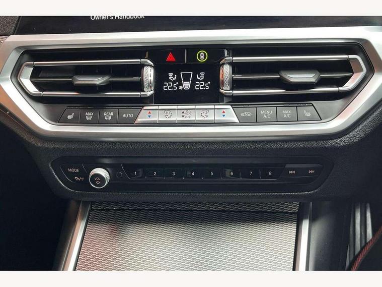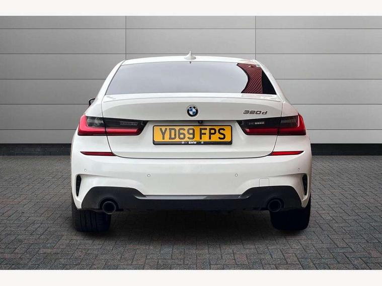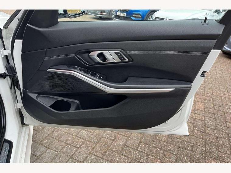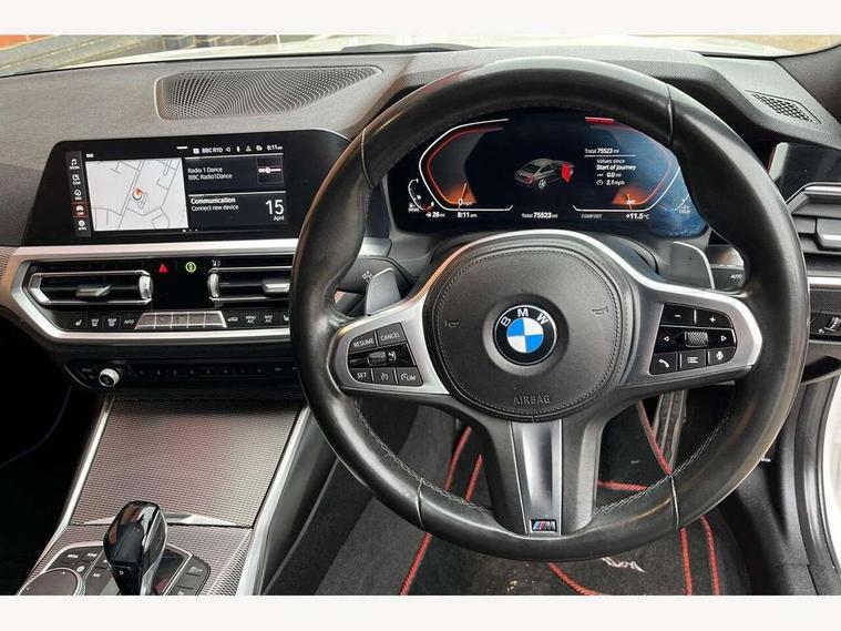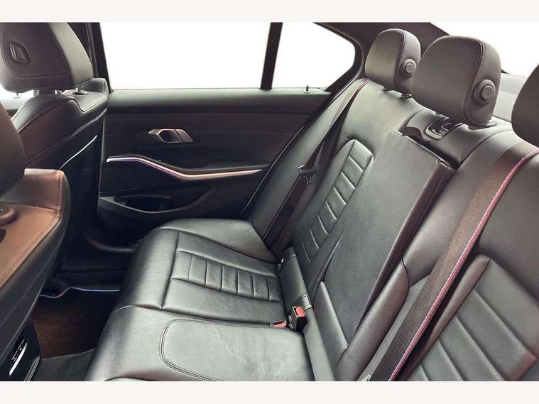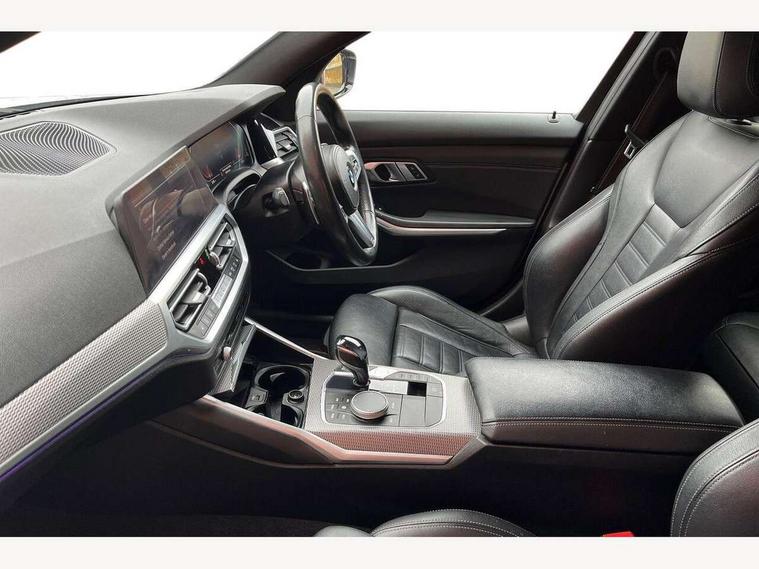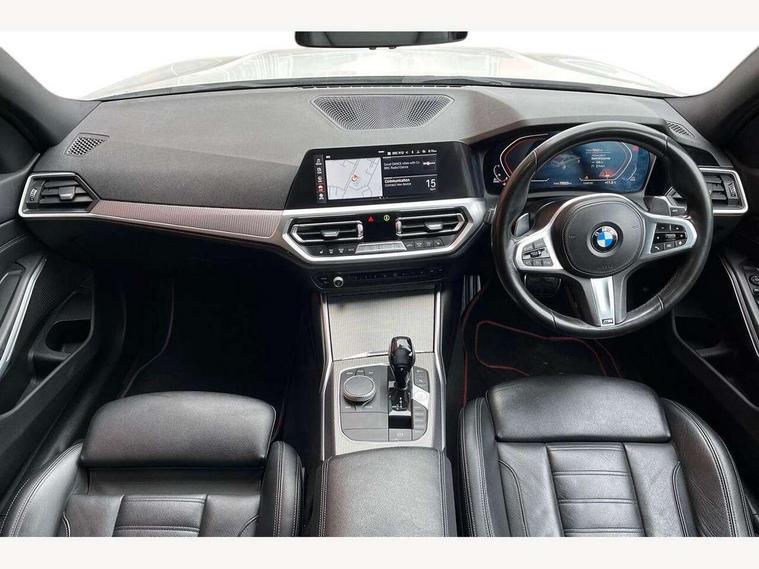 Active guard plus, Attentiveness assist, Auto start-stop, BMW ConnectedDrive online services, BMW Live Cockpit Professional sat nav system including 10.25" high resolution display and Intelligent Voice Assistant, BMW service history, BMW Teleservices, Brake pad wear indicator in front and rear, Check Control warning system for monitoring of lights and door/luggage compartment open warning, Condition based service, Electric power steering with Servotronic steering optimised at all speed ranges, iDrive controller on centre console, Instrument cluster with speedometer with mph readout, tachometer, fuel gauge and oil temperature gauge, Integrated owners handbook, Oil sensor for level and grade, warning by check control system, On board computer - average speed+fuel consumption, service interval, clock/date, odometer/trip meter, outside temperature display and ice warning, Optimum shift indicator, Personal Profile - automatic lock when driving away selectable, Variable sport steering, Balanced 50/50 weight distribution, Battery cut-out switch, Diesel particulate filter, Drive performance control - ECO PRO, comfort and sport modes, Incorrect fuelling protection, Larger capacity fuel tank, M sport suspension, Sport automatic transmission with steering-wheel mounted gearshift paddles and launch control, Stroke dependent dampers, DAB tuner, Electronic service booklet, Acoustic glazing, Active airstream chrome frame kidney grille with 8 high gloss black vertical slats, Automatic headlight beam throw control with load dependent regulating reaction, dynamic compensation of braking dive and acceleration squat, Black roof mouldings, Body colour - fuel filler flap, front and rear bumpers, door handles and mirror caps with integrated turn indicator + bottom segment in matt black, Dynamic brake lights, Electric windows - front and rear, with open/close fingertip control, anti-trap facility and comfort closing, Exhaust tailpipe - split left and right, Extended LED headlights, Exterior mirrors - electrically folding with anti-dazzle, Fading support, Front and rear bumper system with replaceable deformation elements, Front black door sill finishers with BMW designation, Green tinted heat protection glazing, High gloss shadow line exterior trim, Interior rear view electrochromatic mirror with automatic anti dazzle function, LED front fog lights, Lightweight engineering, M designation on front side panels, left and right, Matt black exterior B pillar, Model designation on right side of tailgate, Rain sensor with automatic headlight activation, Rear wiper, Shark fin antenna, Two part LED tailights in L-shape with components in smoked glass, brake light, LED turn indicator and rear fog light, Visible VIN plate, Welcome lights in interior and door handle area, Windscreen wipers with integrated washing jets, 12V power socket in front storage compartment, 2 front cupholder in centre console with clamping elements and matt black inlay, 3 rear seats with non folding headrests with 3 point seat belts, 3 zone automatic air conditioning, 4 pieces lashing eyelets in luggage compartment, 40:20:40 split folding rear seat with loading system, Ambient lighting with welcome carpet light, Anthracite headlining, Armrest integrated in front and rear door trim + front centre console armrest, Centred top Luggage compartment lights, Four grab handles integrated in roof lining, Front and rear door exit lighting (left / right), Front and rear door pockets, Front and rear reading lights, Front and rear velour floor mats, Front head restraints, Front sport seats, Heated driver and front passenger seats, Height adjustable mechanically and infinitely variable steering column, Illuminated armrest storage compartment, Illuminated glove compartment with separate small compartment, Interior lighting - front centre over interior mirror with soft light, rear centre and front and rear footwell lighting, M Sport multifunction leather steering wheel, Make-up mirror lights, Rear centre armrest with 2 cupholders, Rear centre console with storage compartment and ventilation grille, Sunvisors with vanity mirrors and ticket pocket, Toolkit located in luggage compartment, Connected pack professional - 3 Series Saloon/Touring, M Aerodynamics pack - 3 Series Saloon/Touring, 2 tone horn, BMW emergency call, Brake energy regeneration, Braking pre-tensioning, Child proof locking system in rear door, Child seat ISOFIX attachment rear outer seats, Coasting in idle in ECO PRO mode, Crash sensor activating of airbags, Unlocking doors, hazard warning lights, fuel cut off, interior lighting+activation of safety battery terminal clamp, Driver and front passenger side airbags, integrated in the door side seat backrest bolsters for all seat variants, Driver/Front Passenger airbags, Dry braking, Dynamic brake control, Dynamic stability control + (DSC+) - Anti-lock Braking System (ABS) with brake assist and cornering brake control + Automatic Stability Control (ASC), Dynamic Traction Control - DTC, Electromechanical parking brake including automatic hold function and automatic release of the parking brake when pulling away, Electronic differential lock control (EDLC), Front passenger manual airbag deactivation, Head airbags for all 4 outer seats, Hill start assist, Seat belt security check for driver and front passenger, Side impact protection, Three 3 point seat belts on all seats including front belt stopper, pyrotechnic belt tensioners and belt force limiters, Tyre pressure monitoring with three level warning strategy, Ventilated front and rear disc brakes, Warning triangle and first aid kit, Alarm system (Thatcham 1) with remote control and electronic engine immobiliser, Central locking switch for all doors, fuel filler cap and luggage compartment, Remote control with integrated key one button open/close vehicle and windows, sole opening of the luggage compartment lid and panic mode, Start/stop button with Comfort Go keyless engine start and auto Start/stop deact