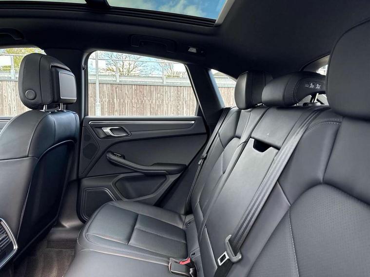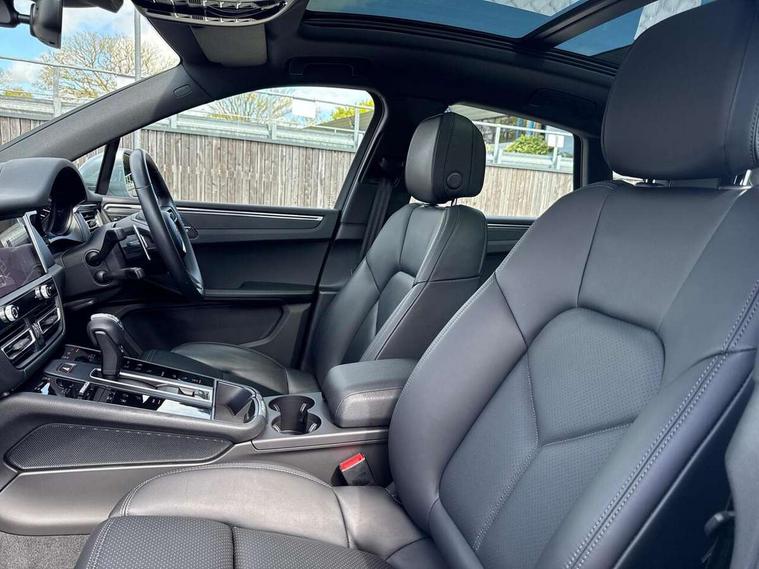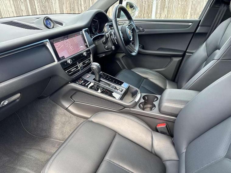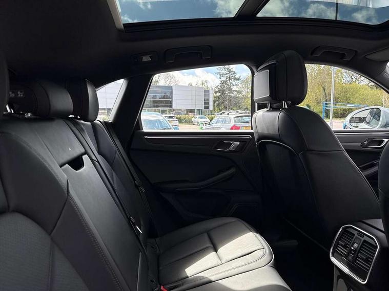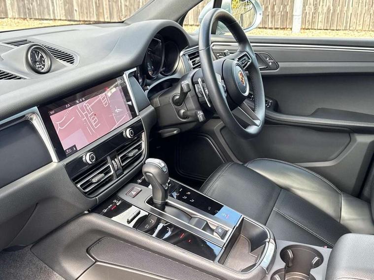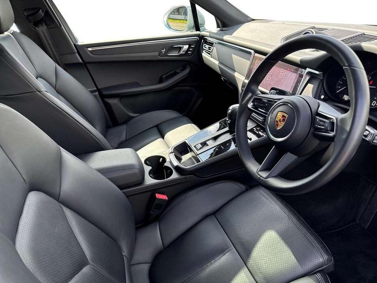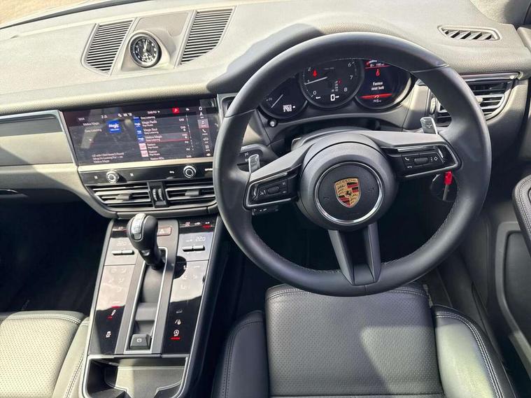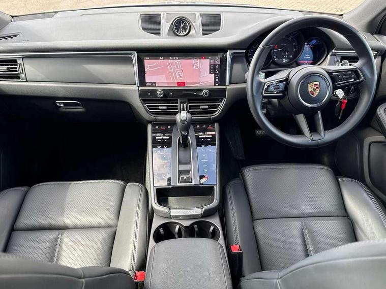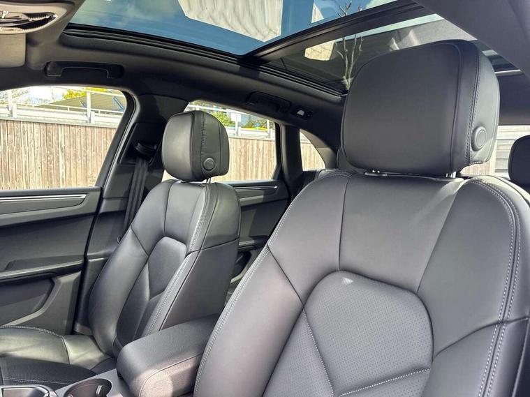 Analogue clock on dashboard, Automatic start/stop system, Automatic tailgate, eCall emergency call system, Instrument cluster with high resolution 4.8-inch TFT display, gear indicator for PDK, service interval display, external temperature indicator, fuel gauge, Off-road button, On board computer, Porsche Communication Management (PCM) including online navigation module, mobile phone preparation, audio interfaces and voice control system, Sports button in centre console, 7-Speed Porsche Doppelkupplung (PDK) with automatic mode and manual controls (gearshift paddles) on steering wheel, Direct fuel injection (DFI), Gasoline particulate filter, VarioCam camshaft control for inlet and exhaust valves, 2 USB sockets in rear centre console, Apple CarPlay with Siri voice recognition, Connect Plus including online navigation, LTE communication module with SIM card reader, wireless internet access, Porsche Car Connect services, DAB Digital radio, Porsche Vehicle Traking System Plus (PVTS Plus), Smartphone compartment with wireless charging, Two USB C charging and connectivity ports in the front centre console storage compartment, Active radiator grille shutters, Automatic headlight activation including welcome home lighting, Bumper system with high strength cross members and two deformation elements + One threaded fixture point for towing eye contained in onboard tool kit, Dynamic cornering lights, speed-sensitive headlight and dynamic range control, adverse weather function, four-point LED daytime running lights, Electric front and rear windows with remote closing function + anti trap + one touch, Electrically folding and heated exterior mirrors, Front light modules with LED position lights and direction indicators, Front windscreen wipers with two speeds, intermittent wipe and rain sensor, Front with integrated cooling air intakes, Fully galvanised body, Heated rear window with automatic switch off, High level 3rd LED brake light integrated into roof spoiler, Loading edge protection in aluminium, Rear side wing doors, Rear window wiper with intermittent function and washer jet, Roof spoiler in high gloss black, Towbar preparation, 3 adjustable rear headrests, 3 rear seats, 3 zone auto climate control separate temperature setting+air recirculation include quality sensor, airflow regulation+AC MAX button+humidity sensor, 4 way adjustable front head restraints, 40:20:40 split folding rear bench seat, Cloth hook b-pillar, Fold up centre console armrest with fore/aft adjustment, Front and rear bottle holders in door panels, Front passenger seat, Glove compartment, Isofix fastening system for child seats on outer rear seats, Luggage compartment cover, Particle/pollen filter with active carbon filter, Rear armrest with 2 cupholders, Storage bin in centre console, Storage compartment in side of luggage compartment and storage compartment in spare wheel recess, Storage pocket in front and rear doors, Two integrated cup holders in front with variable diameter, Two socket 12V power outlets in front console and luggage compartment, Uncovered storage compartment in centre console, Ambient comfort lighting pack - Macan, Lower exterior trim package in black - Macan, 3-point automatic seatbelts with front and outer rear seats pretensioners and force limiter + manually height adjustable seatbelt + reminder warning, Auto hold function, Black painted brake calipers, Child locks on rear doors, Curtain airbags along entire roof frame and side windows from A pillar to the C pillar, Electronic parking brake, Front passenger airbag deactivation facility for installation of child seats indicator in overhead console, Front side airbags integrated into seat, Full size driver and passenger airbags, Internally vented brake discs with diameter of 350mm at front and 330mm at rear, Multi-Collision braking, Porsche hill control (PHC), PTM(Porsche Traction Management) and All-wheel drive with map-controlled multi-plate clutch, Roll over sensor for curtain airbag and seatbelt pretensioners, Side impact protection in doors, Tyre pressure monitoring system, Vehicle stability system, Porsche stability management (PSM) including ABS, ASR, ABD, MSR and trailer stability management, Vented discs brake with 4 piston aluminium monobloc fixed caliper at front, Vented discs brake with combination floating calipers at rear, Alarm system with ultrasonic interior surveillance, Dashcam preparation, Engine immobiliser with key transponder, Remote control central locking, Accent trims with silver coloured finish,