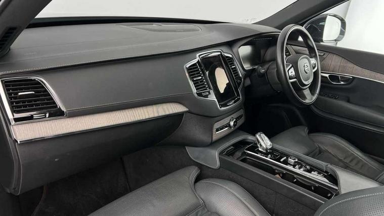 12.3" Active TFT crystal driver's instrument display, 9" centre console portrait touch screen, Adjustable steering wheel force, Bluetooth hands free telephone connection, Drive mode settings, Driver alert control with lane keeping aid, Driver assistance (pilot assist and adaptive cruise control), Driver awareness - Blind spot information system with steer assist, cross traffic alert with autobrake and rear collision warning and mitigation, Front and rear park assist, Handsfree power tailgate opening and closing, Oncoming Lane Mitigation, Remote engine start, Sensus navigation with European mapping and traffic information, Service interval indicator, Smartphone integration with Apple CarPlay and Android auto, Speed limiter, Speed sensitive steering, Trip computer, Voice activated control for key functions, Volvo on call, 8 speed automatic transmission with start/stop + manual change functions, Active four C chassis - four corner adaptive dampers with electronic air suspension, All wheel drive system, DAB Radio (Digital Audio Broadcasting), Steering wheel audio controls, Steering wheel remote infotainment controls, Adaptive brake lights with high level LED brake lights, Auto dimming interior + exterior mirrors, Automatic headlight levelling system, Automatic LED Headlights + Active high beam incorporating daytime running lights, Body colour bumpers, Chrome Front and Rear Bumper plus Lower Side Mouldings, Chrome window surround, Colour coordinated auto folding and heated power door mirrors, Dual integrated exhaust pipes, Front and rear power windows, Heated washer nozzles, Home safe and approach lighting, Integrated roof rails in silver, Matt silver front grille with chrome detailing, Puddle lights, Rain sensor with automatic windscreen wiper activation, Rear wash/wipe with intermittent wipe setting, Roof antenna, Roof spoiler, Visible VIN plate, 12V socket front tunnel console, rear passenger compartment and cargo area, A-pillar parking ticket holder, Ambient door and instrument panel lighting, B Pillar ventilation, Bright metal luggage threshold, Cargo divider with grocery bag holder, Centre console cupholders and storage, Driver's side lower dashboard storage compartment, Front and rear door pocket and front cupholder illumination, Front footwell and side step illumination, Front headrests, Front seat backrest massage, Front seat cushion extension and power adjustable front seats side support, Heated front seats, Height/reach adjustable steering column, Illuminated front and rear tread plates, Illuminated luggage compartment, Illuminated tailgate, Illuminated vanity mirrors + ticket holder, Illumination lockable glovebox compartment, Integrated sun curtains in rear doors, Load protection net, Luxury floor mats, Multicolour theatre lighting, Orrefors Crystal gear lever knob, Outboard armrest with cupholder and storage for third row passengers, Perforated and ventilated nappa soft leather upholstery, Power driver seat with multi directional lumbar support and memory for seat and exterior mirrors, Power folding 2nd row headrests, Power passenger seat with multi directional lumbar support and memory, Rear footwell and side step illumination, Rear headrests, Semi automatic load cover, Three 2nd row individual folding passenger seats with fore/aft adjustment, Two 3rd row individual folding passenger seats, Underfloor cargo storage, Lighting pack - XC90, 7 three point seatbelts, City safety includes pedestrian, cyclist and large animal detection and front collision warning with full auto brake, Drivers knee airbag, Dual stage driver/passenger airbags, First aid kit, Front seats SIPS airbags, Hill descent control, Hill start assist, IC (Inflatable Curtains) - Full Length, Passenger airbag cut-off switch, Power parking brake with auto hold function, Road sign information display, Run off Road Mitigation, Run off Road Protection, Seatbelt reminder and pretensioners for all seats, SIPS (Side Impact Protection System), Slippery road and hazard light alert, Stability and Traction Control with Spin control, Engine Drag Control and Corner Traction Control, Tyre pressure monitoring system, Vehicle deceleration control with Anti-lock Brake System, Electronic Brake Distribution and Emergency Brake Assist, Warning triangle, WHIPS whiplash protection system - front, Anti-theft alarm including immobiliser/volume sensor + level sensor, Care key with user defined top speed, Key integrated remote control central locking + fuel flap with deadlocking system and auto open/close power windows, Keyless drive (includes keyless entry and keyless start) with remote tag, Locking wheel nuts, Private locking for glovebox and tailgate, Grey ash inlays, Tailored instrument panel and door tops, Tempa spare wheel and jack,