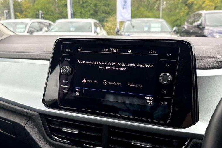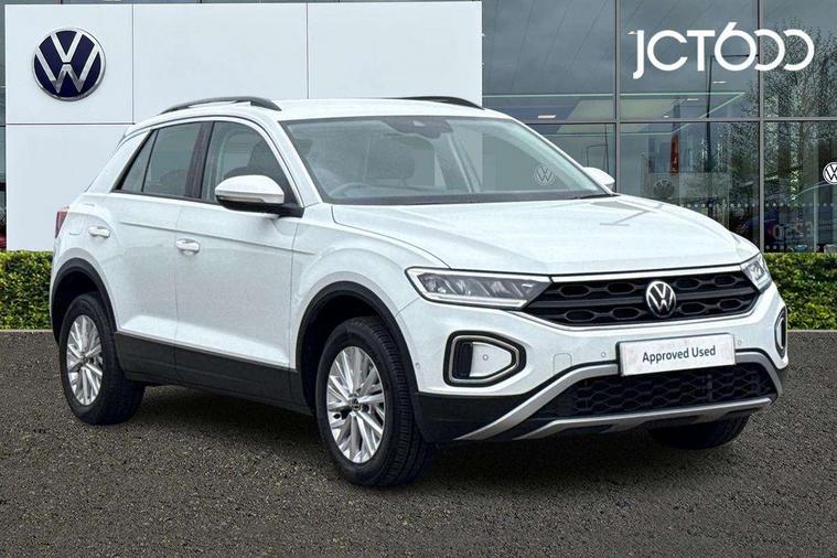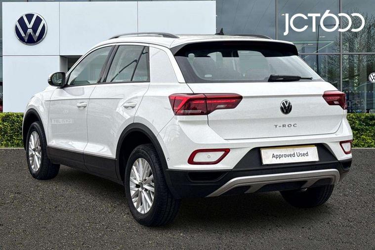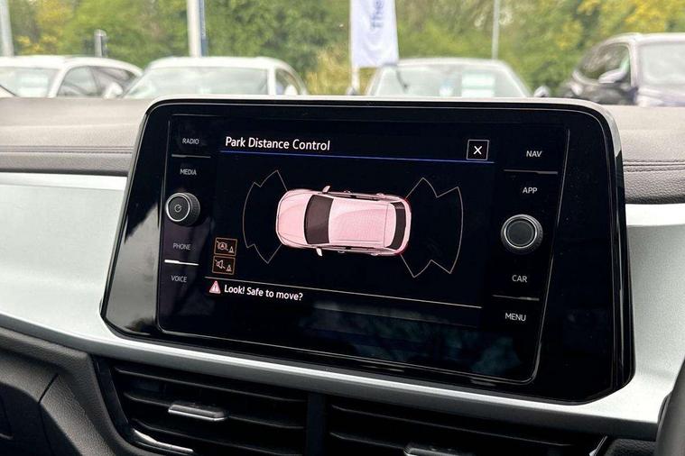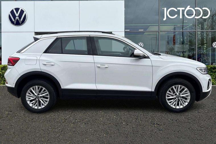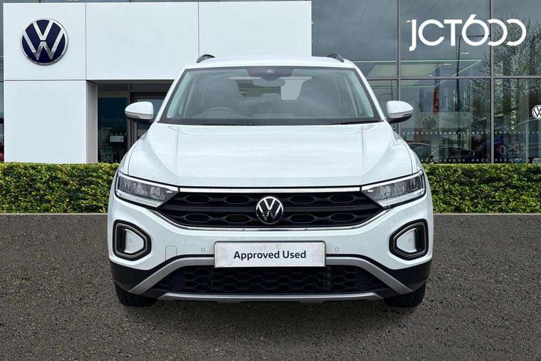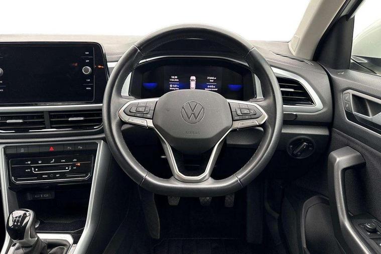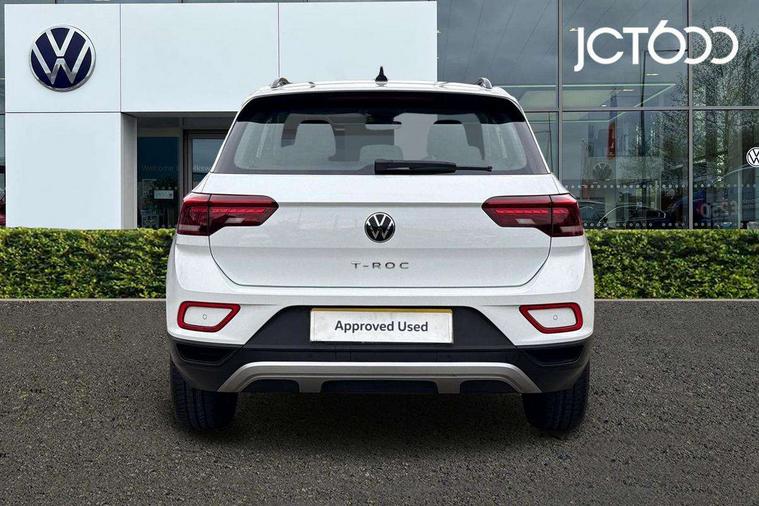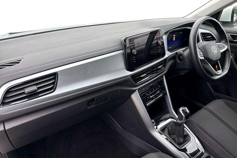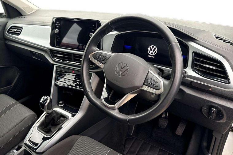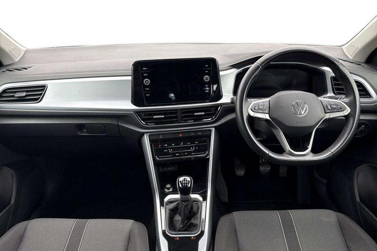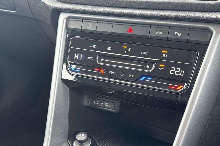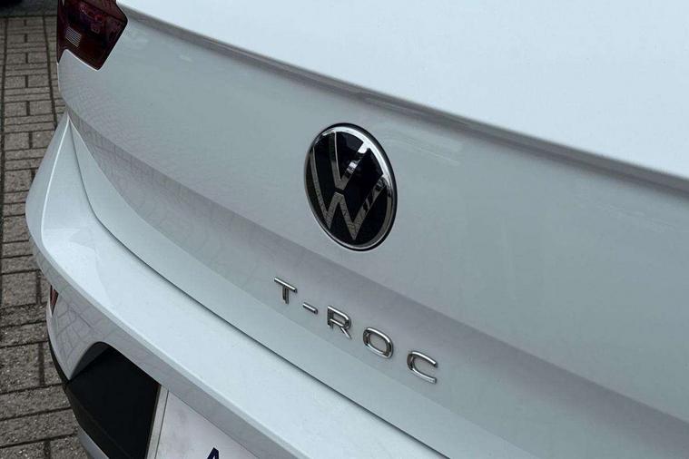 Bluetooth mobile phone interface, Driver alert system with fatigue detection, Driver tips and journey analysis, Emergency call service, Lane keeping system Lane Assist, Modified key software - reduce switch off time for key status change to Long no motion, Online services, Park assist including front and rear parking sensors, Power assisted speed sensitive steering, Service interval indicator, Tailgate/trunk lid release from outside, Think blue trainer driver tips and journey analysis, Warning sound and light for front seatbelts unfastened, Wireless app connect, Battery regeneration during braking, Front shock absorption, Rear shock absorption chassis with increased ride height, Start/stop function with battery regeneration, DAB Digital radio, Diversity antenna for FM reception, Front and rear 6 speakers, Music playback - MP3, WMA and AAC files, Premium USB cable in choice of either Apple or Android smartphone compatibility, SD card slot, Simultaneous pairing of 2 compatible mobile devices, Title and cover art display, We Connect and We Connect Plus functionality, 3rd brake light, Auto dimming interior rear view mirror, Automatic hazard lights activation under emergency braking, Automatic headlight control with LED separate daytime running lights with coming/leaving home function, Black roof rails, Body coloured bumpers and radiator grille with chrome trim and front fog lamps with chrome bezel, Body coloured exterior mirror housings and door handles, Extended roof spoiler, Exterior mirrors aspherical on driver side, convex on front passenger side, External USB type C socket and charging sockets, Front windscreen wiper with intermittent wipe and 4 position delay, Heated rear window, LED Headlights, LED rear combination lamps, LED rear number plate lights, LED tail lamp rear comination lamps, Power windows with comfort operation and circuit breaker, Rain sensor, Rear exhaust tailpipe, Rear fog light on one side and reversing lights on both sides, Rear side wing doors, Rear wash/wipe with intermittent wipe setting, Remote electrically foldable door mirrors, puddle lights and reverse activated passenger's door mirror, 12V power socket in centre console, 3 rear head restraints, 3 seat bench in 2nd row, 4 load lashing points in luggage compartment, Air care climatronic air conditoning system with active combination filter and 2-zone temperature control, Ambient lighting with mirror logo projection, Cloth upholstery, Door and side trim panel in cloth, Drawer under drivers seat, Driver/front passenger seat height adjustment, Front centre armrest, Front comfort sports seats, Front cupholders x 2, Front reading light, Instrument lighting, white adjustable panel illumination, Interior light delay, Isofix child seat preparation, Leather gearshift handle, Load-through provision with cup holder when folded down ('Unsplit rear seat bench, split folding backrest, with centre armrest), Luggage compartment lighting, Lumbar support for driver's and front passengers seat, Non-folding front passenger seat backrest, Single front passenger seat, Storage compartment in left and right luggage area, Storage compartment in rear doors, Storage compartments in driver and front passenger doors, Sunvisors with illuminated vanity mirrors, Variable boot floor, height adjustable and removable, Driver assistance pack without proactive passenger protection - T-Roc, 3 point height adj front seatbelts + pretensioners, 3 point seatbelts in outer rear with ECE label, ABS, Child locks on rear doors, Driver and front passenger airbag with front passenger airbag deactivation, Driver and front passenger safety-optimised head restraints, Drivers seatbelt reminder, Electronic parking brake, Electronic Stability Control (ESC) inc EDL (Electronic Differential Lock) and ASR (Traction Control), Front and rear passengers curtain airbag system including front side airbags, Front assist with city emergency braking and pedestrian monitoring, Front disc brakes, Front seat side impact airbags, Hill start assist, Predictive pedestrian protection, Rear disc brakes, Single tone horn, Tyre pressure loss indicator, Volkswagen roadside assistance, Alarm with interior protection, Anti-theft alarm system with interior monitoring, backup horn, and towing protection, Remote central locking with SAFELOCK, radio remote control with 2 remote control folding keys, Pewter matt decorative inserts for intrument panel, centre console and door panels at the front, Trims for alloy wheels,