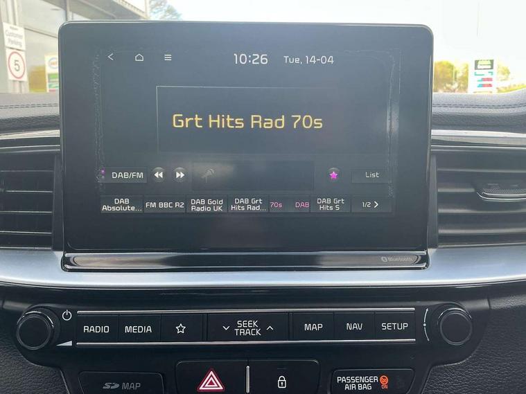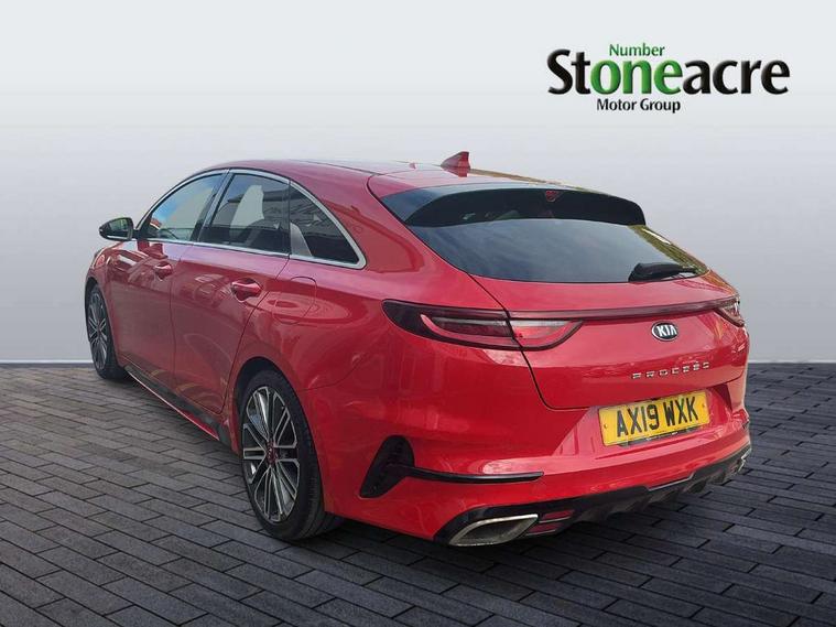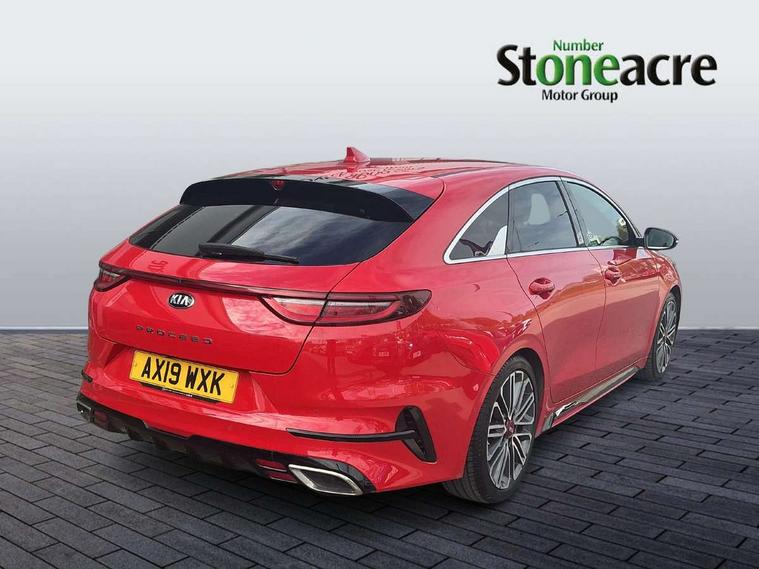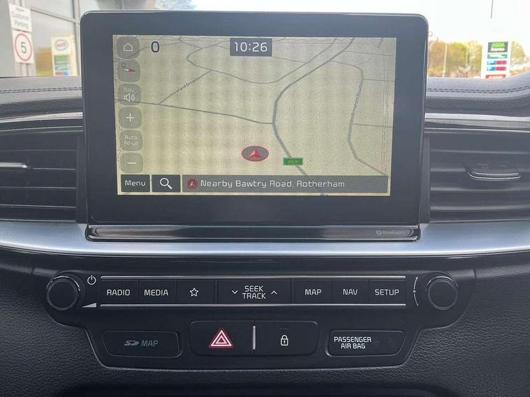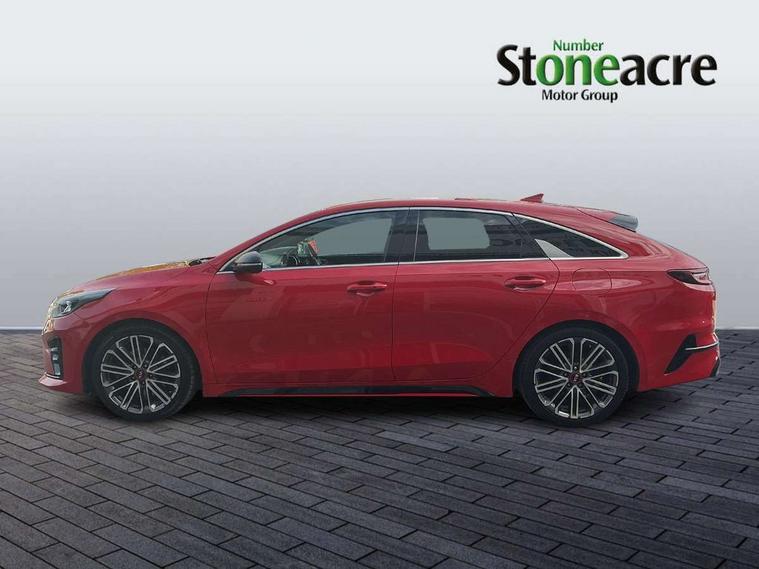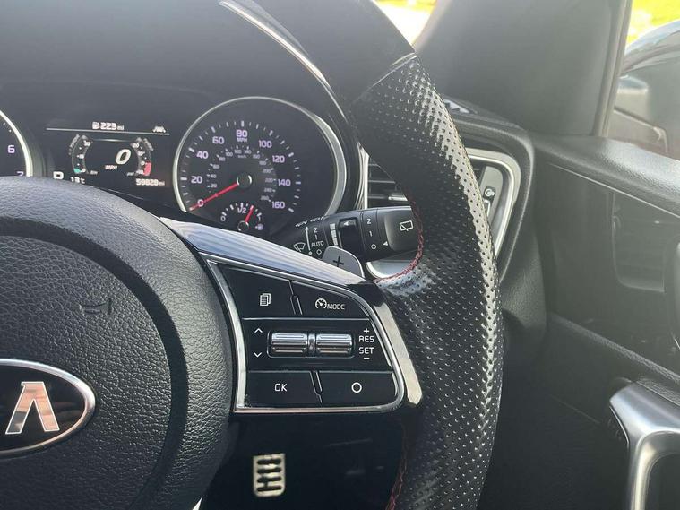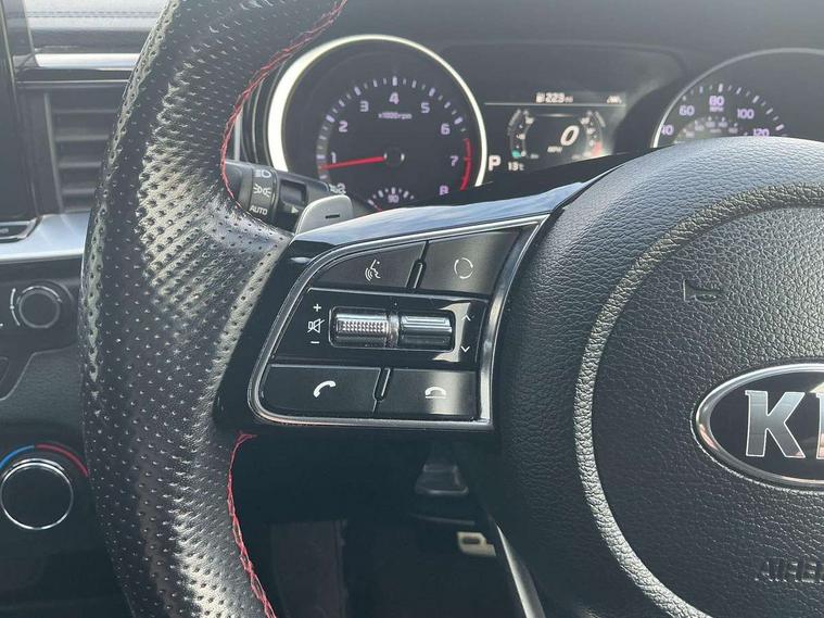 4.2" supervision cluster colour display with GT performance mode, 8" touchscreen satellite navigation with European mapping and traffic messaging channel, Apple car play/Android Auto, Bluetooth with Voice Recognition & Music Streaming, Cruise control + speed limiter, Drive mode selector, Driver attention warning, Emergency stop signalling system, Kia connected services featuring TomTom live, Lane keep assist, Motor driven power steering, Rear parking sensor, Reversing camera with dynamic guide lines, Smart park assist system (SPAS) with parallel/perpendicular/reverse with front/rear parking sensors, Trip computer, Intelligent Stop and Go, 6 speaker audio system, DAB Radio with MP3, Illuminated USB & aux ports, Steering wheel mounted controls, USB & AUX Ports for Connection of a Media Device, USB Fast Charger in Front Centre Console, Air intake with red accent lower lip, All-round Electric Windows with Front Auto Up & Down Function, Auto dimming rear view mirror, Automatic defog system, Automatic headlights, Body colour bumpers, Body colour exterior door handles, Body coloured rear roof spoiler with high gloss black trim, Chrome window surround, Electric adjustable/heated/folding door mirrors with LED Indicators and Kerbside Lights, Exterior front door handle illumination, Front fog lights, Front wiper de-icer, Headlamp levelling, Heated rear window with timer, High beam assistant, High gloss black and chrome with red insert radiator grille, High gloss black door mirrors, High gloss red side sill mouldings, LED Bi-Function headlights, LED daytime running lights, LED High-mounted Brake Light, LED rear fog light, LED rear lights, Privacy glass (rear side windows and rear screen), Projection headlights, Puddle lights, Rain sensing front wipers, Rear bumper with diffuser trim and dual exhaust, Rear wash/wipe, Wide view drivers door mirror, Windscreen Washer Level Warning, 2 x 12V Power sockets (Front centre console), 3 x passenger assist grips, 60/40 split folding rear seat, All-round height adjustable headrests, Black headlining, Centre console storage and sliding armrest, Cupholders in centre console, Cupholders in rear armrest, Dash illumination dimmer switch, Driver & Front Passenger Sunvisors with Vanity Mirror Illumination & Ticket Holder, Driver + front passenger electric lumbar support, Driver's seat height adjuster, Dual Height Luggage Area Floor, Dual zone automatic air conditioning, Faux leather door centre trim with red stitching, Front and rear door storage, Front map light with sunglasses case, Front Passenger Seat Height Adjuster, Front seat and rear pockets, Gear shift indicator, Heated front seats, Heated steering wheel, Illuminated ignition key hole, Interior door lock/unlock function, ISOFIX Child seat top tethers and anchor fixings, Leather D-Cut steering wheel with red stitching, Leather gearshift, Load area cover, Luggage area light, Luggage area parcel shelf, Luggage hooks, Paddle shifter, Part leather/faux suede upholstery, Premium centre console with sliding cupholder cover, Rear Air Ventilation, Rear centre armrest, Rear coat hooks, Satin chrome interior door handles, Stainless steel pedals, Tilt/telescopic adjustable steering wheel, ABS with Electronic Brakeforce Distribution (EBD) and Brake Assist System (BAS), All round 3-point seatbelts, Dual front side airbags, Dual horn, Electric parking brake, Electronic stability control (ESC) and vehicle stability management (VSM), Front passenger airbag deactivation, Height adjustable front seatbelts, Hill start assist control (HAC), Impact sensing auto door unlocking, Rear door child safety locks, Seatbelt reminder warning, Traction control, Twin curtain airbags, Twin front airbags, Tyre pressure monitoring system, Alarm system, Engine Immobiliser & Deadlocks, Engine Start/Stop Button with Smart Entry System, Locking wheel nuts, Speed sensitive auto door locking, Black high gloss front console tray garnish & door trim, Satin Chrome Fascia Trim, 18" Alloy wheels with red centre cap, Tyre mobility system,