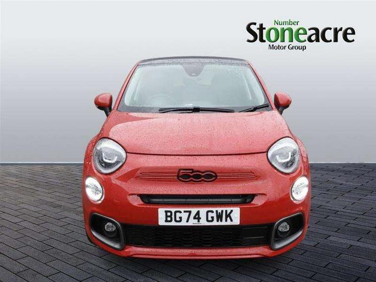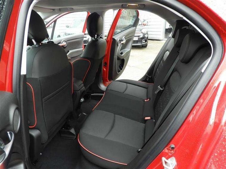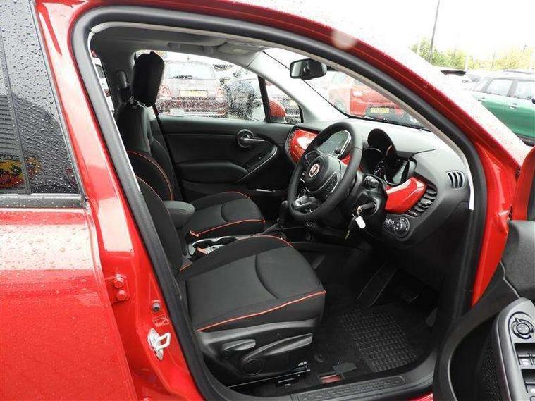 3.5" Colour TFT, 7" HD touchscreen DAB radio with bluetooth, 3D navigation, Aux-in and USB in central tunnel, Apple car play/Android Auto, Drowsy driver detection, E-call, Lane assist with intelligent speed assist and traffic sign recognition, Parkview rear parking camera, Power assist steering, Rear parking sensor, Stop/start system, Active roll mitigation, 6 speakers, USB port, 3rd brake light, All-road bumpers with protective inserts, Dark tinted rear windows, Dusk sensor, Electric front and rear windows, Front grid red moustache, Heated rear windows with wash wipe, Rain sensor, Rear side wing doors, Rear spoiler, Rear wiper, Red electrically adjustable door mirrors, Red logo, Red logo on B-Pillar, Red wheels hubcap, Satin chrome inserts tailgate, door handles, front moulding, 3 seat bench in 2nd row, 4 way manually adjustable front seats, 60/40 split folding rear seat, Automatic dual zone climate control, Auxilliary 12V power socket, Black floor mats with red stitching, Cooled glovebox, Courtesy light on sunvisor, Fabric upholstery with red detailing, Front head restraints, Height adjustable drivers seat, Height adjustable steering wheel, Parcel shelf, Red dashboard with 500 logo in black, Seat back pockets, Single front passenger seat, Techno leather steering wheel with audio controls, Two rear head restraints, Comfort package - 500X Red, LED lights pack - 500X, LED Pack - 500X, Red healthy cabin pack - 500X, 3x3 point rear seatbelts, 6 airbags - Front, side and window, Brake assistance system, Child locks on rear doors, Electronic parking brake, ESC including ASR, MSR, Hill Holder, ABS, EBD, ERM, DST, BAS, Front and rear seatbelt reminder, Height adjustable seatbelts, Passenger airbag deactivation system, Tyre pressure monitoring system, Deadlocks, Immobiliser, Remote central locking, 17" alloy wheels with Red wheel cup,