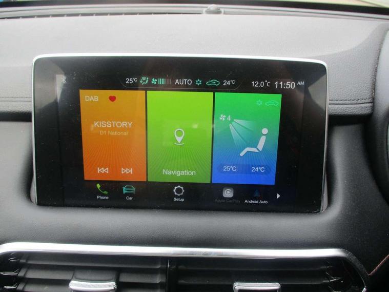 10.1" colour touchscreen, 12.3" Full digital driver information display, Adaptive cruise control, Android Auto, Apple CarPlay, Blind Spot Detection (BAS), Bluetooth connectivity, Driving modes, Emergency call service, Intelligent speed assist, Lane keep assist system (LAS) with Lane departure warning system (LDWS), PAS, Power tailgate, Rear cross traffic alert, Rear parking camera, Rear parking sensors, Satellite navigation system, Traffic jam assist, Trip computer, USB mobile phone charging function, 6 speaker audio system, DAB audio, Auto dimming rear view mirror, Automatic headlights, Body colour electric adjustable heated door mirrors, Electric folding door mirrors, Follow me home headlights, Front and rear aero wiper, Front and rear electric windows with one-touch up/down, Front fog lights, Intelligent high beam, LED Bi-Function headlights, LED centre brake light, LED daytime running lights, LED front and rear sequential indicators, Panoramic sky roof, Rain sensing wipers, Rear side wing doors, Silver roof rails, 12V power sockets, 2nd row 60/40 split fold seat, 2nd row seat with 2 stage incline adjustment, 3 rear headrests, 3 seat bench in 2nd row, 4 way electric adjustable passenger seat, 6 way electric adjustable drivers seat + lumbar support, Ambient lighting, Dual zone automatic air conditioning, Front centre sliding armrest with storage compartment, Front headrests, Heated front seats, Height and reach adjustable steering wheel, ISOFIX restraints on outer rear seats x2, Leather steering wheel, Metal sports pedals, Single passenger seat, Sports Style Front Seats with One-Piece Back, Steering wheel paddle shift, 3x3 point rear seatbelts, ABS/EBD, Active emergency braking with pedestrian/Bicycle detection, Anti rolling protection, Cornering brake control (CBC), Driver, passenger and 2nd row rear seat belt reminder, Dual front airbags, Electric parking brake with auto hold function, ESP, Front passenger airbag deactivation switch, Front seat belt height adjuster, Front seatbelts (3-point + pretensioner + load limiter), Front side airbags, Hill descent control, Hill launch assist, Manual rear child locks, Rear outer seatbelt pretensioner and load limiter, Side curtain airbags, Tyre pressure monitoring system, Alarm system and engine immobiliser, Keyless entry and push button start system, Remote central locking, Speed sensing door locks, 18" Hurricane diamond cut alloy wheels, Tyre repair kit,