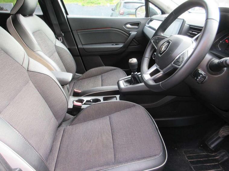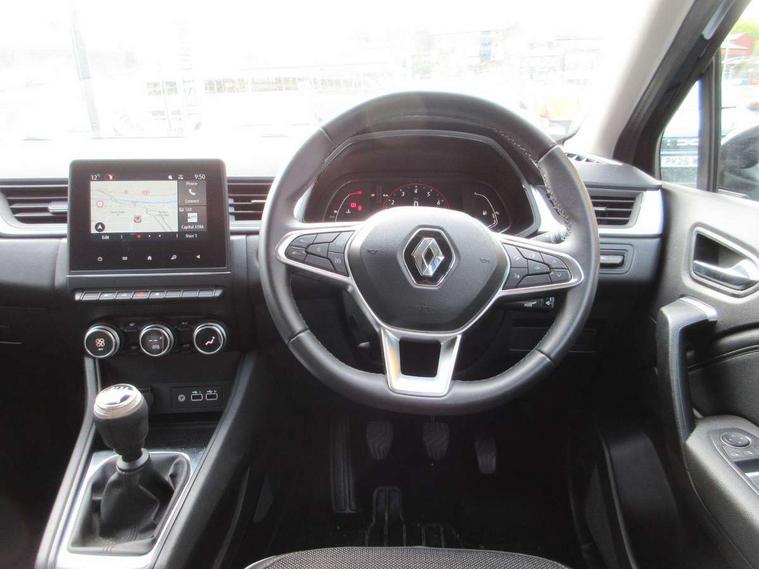7" TFT Driver information display, Cruise control + speed limiter, EasyLink 7" touchscreen with navigation, google search and traffic information, Eco mode, Front and rear parking distance sensors, Gear change indicator, Lane departure warning system, Lane keep assist, Multisense with 3 driving modes + 8 ambient lighting colours, Rear view camera, Renault automatic emergency assist, Smartphone integration compatible with Apple CarPlay and Android Auto, Traffic sign recognition with over speed prevention, Trip computer, Variable assistance power steering, Wireless phone charger, DAB Radio with Bluetooth and USB, 2 reverse gear LED lamps and 1 rear LED fog lamp in the bumper, Auto dimming rear view mirror, Automatic front wipers with rain sensors, Automatic headlights, Automatic high/low beam, Black side door protection with chrome effect, Body colour door handles, Body coloured bumpers, Body coloured door mirrors, C Shaped LED front and rear lighting signatures with 3D effect on the rear lights, Chrome around front air deflectors, on front wing deco element and window lining, Day time running light, Drivers one touch window with anti-pinch feature, Extra tinted glass in rear windows and tailgate, Front and rear electric windows, Front grille with chrome upper trim, Full LED headlights, Grey front and rear skid plate, LED high level brake lights, LED rear fog lights, LED turn indicators on door mirrors, Longitudinal roof bars, Rear side wing doors, Rear wiper, Shark fin antenna, 12V Accessory socket, 60/40 split and fixed base rear seat bench, Automatic climate control with one touch demist function and air quality regulator, Central rear LED rooflight with 3 reading lights, Front head restraints, Glovebox, Heating system with pollen filter, Height adjustable driver's seat, Height adjustable passenger seat, Height/reach adjust steering wheel, ISOFIX child seat fixing points on rear outermost seats, LED front roof lights, Middle console with armrest and storage, Rear air vents, Rear head restraints, Single front passenger seat, Sliding rear bench, Synthetic leather steering wheel, Synthetic leather/cloth upholstery, 3 rear seatbelts, ABS+EBA, AEBS - active emergency braking system, Distance warning alert, Driver and front passenger and 3 rear passengers seatbelt reminder, Driver and front passenger, side, head and curtain airbags, Driver height adjustable seat belt, Electric parking brake with auto hold function, Electronic stability control, Front dash warning indicator in case of heavy braking, Front driver and passenger side airbag deactivation, Hill start assist, Manual passenger airbag deactivation function, Rear door and window child locking function for rear door, Tyre pressure warning light, Anti drill door locks and locking fuel cap, Central door locking, Deadlocking system, Hands free keycard with push button and start/stop function, RAID (Renault Anti-Intruder Device) automatic door locking, Black soft touch dashboard, 18" Pasadena diamond cut alloy wheels with grey inserts,
