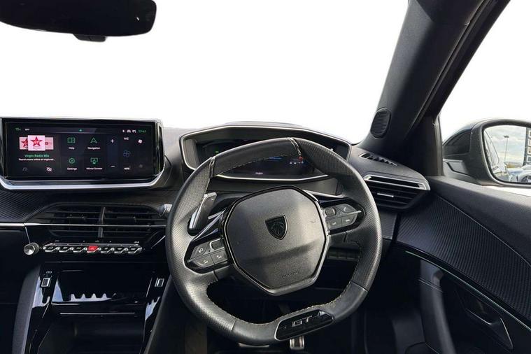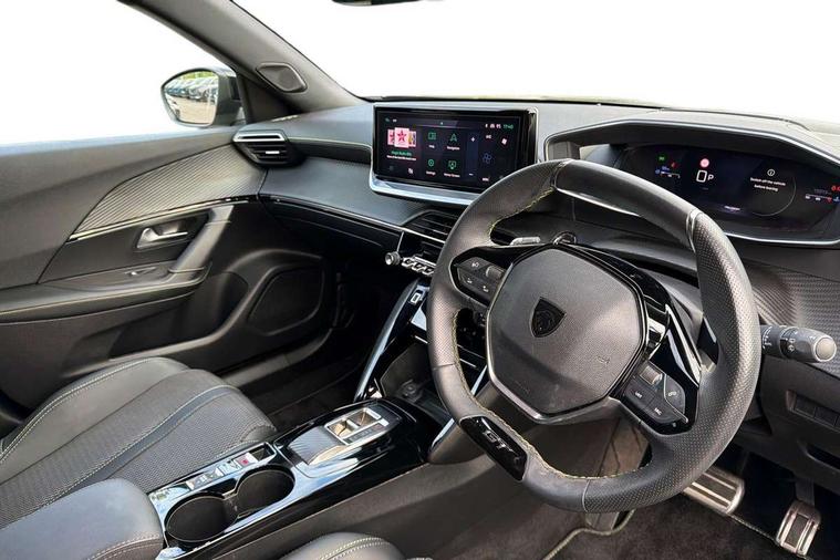 Bluetooth telephone facility, Driver attention warning, E-call, Exterior temperature indicator with ice warning, Multi function trip computer, PEUGEOT i-Cockpit with compact steering wheel, PEUGEOT i-Cockpit with configurable 3D headup instrument panel, PEUGEOT SOS and assistance, Smartphone charging plate, Speed limit recognition and recommendation, Wireless mirror screen with mirror link, apple carplay and android auto, Petrol Particulate Filter, 1x USB-C socket in rear and 1x USB-A socket in rear, 2 USB-C ports in the front, 6 speakers radio with mp3 compatible, DAB Radio (Digital Audio Broadcasting), Voice recognition for radio, navigation and telephony features, 2 X Rear number plate lights, Aluminium door sill scuff plates with peugeot lettering, Automatic hazard light activation upon heavy brake application, Black diamond roof, Black front wing trim with gloss black detail and GT badging, Body coloured exterior door handles, Dark tinted rear side and tailgate windows, Diamond black mirror shells, Diamond black rear roof spoiler, Electric, heated, and power folding door mirrors, Frameless electrochrome interior rear view mirror, Front bumper - Meteor grey lower trim, Full LED headlights with smartbeam assist with auto height adjustment, Gloss black finish on B pillar, Gloss black rear cluster connecting strip, Gloss black roof bars, Gloss black window surround, GT model designation badging on tailgate, Headlights left on audible warning, LED daytime running lights with distinctive 3 claw signature, LED side indicator lights integrated into door mirrors, LED third brake light, Model designation badges front and rear, One touch electric front/rear windows with pinch protection, Radiator grille - body coloured vertical chequered grille, Radiator grille - gloss black top edge trim, Rear full LED 3D peugeot signature claw effect lights with daylight function, Rear reversing lights, Rear side wing doors, Rear windscreen wiper triggered automatically in reverse gear, Tailgate with heated rear windscreen and wiper blade, Twin chromed exhaust pipes, Wheel arch extensions, 1/3 to 2/3 split folding rear seats, 12V socket, 3 seat bench in 2nd row, 8 Colour personalisable ambient lighting, Automatic air conditioning with pollen and active carbon filter, Central front armrest with storage compartment, Driver and front passenger sport seats, Electric power steering with reach and rake adjustable steering column, Front and rear carpet mats in black, Front LED interior light with 2 reading spotlights and rear interior light with timer, Front passenger seat manual adjustment - height, longitudinal and back rest angle, High centre console, ISOFIX child seat mounting points on passenger seat, Mistral full-grain perforated leather steering wheel with Lime Green stitch detail and satin chrome 'GT' emblem, Multifunction steering wheel, Piano keys: Gloss black and chrome toggle switches to access main functions of the vehicle and touchscreen functions, Roof lining - Mistral black, Seatbelt unfastened on the move audible and visual alert for front and rear seats, Single front passenger seat, Two position modular boot floor, Visibility pack - 2008, 2x 2nd row ISOFIX child seat mountings, ABS (Anti-lock Braking System) with EBD (Electronic Brakeforce Distribution) and EBA (Emergency Braking Assistance), Active safety brake with night function/cyclists/pedestrians, Adaptive driver and front passenger airbags with passenger airbag deactivation function, Child locking functionality on rear doors, Driver/front passenger side airbags, Electric parking brake, ESP (Electronic Stability Program) + Hill Start Assist, Front and rear curtain airbags, Front and rear disc brakes, Front and rear three-point retractable seatbelts, with force limiters, Front optimised safety headrests and rear retractable headrests (x3), height adjustable, Tyre pressure sensor, Automatic door locking when moving off, Deadlocks, Electronic code immobiliser, Peugeot Open and Go (keyless entry and push button start), Thatcham category 1 alarm, Carbon effect Dashboard, front and rear door panel finish,