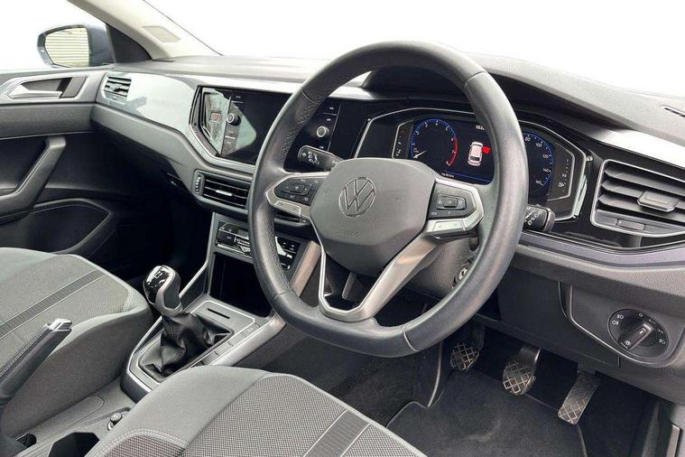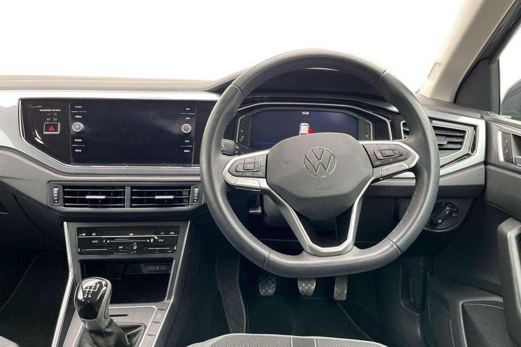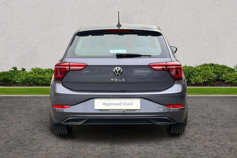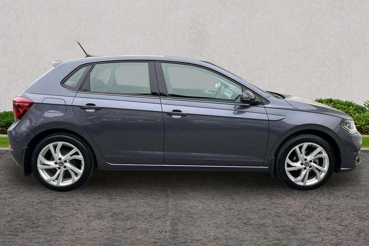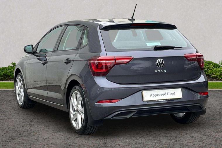Adaptive cruise control without follow-to-stop and speed limiter, Bluetooth mobile phone interface, Digital Cockpit Pro with 10.25" Display, Driver alert system, Dynamic road sign display, Emergency call service, Power assisted speed sensitive steering, Preparation for We connect and We connect plus, Speedo and rev counter, electronic odometer, trip, service interval display and fuel gauge, Standard rear axle, Travel Assist - Lane keeping system and traffic jam assist, Travel assist including emergency assist, Trip computer, Warning signal and warning light for front and rear seatbelts not fastened, Washer fluid level indicator, Wireless app connect, Front wheel drive, Rear shock absorpion, Start-stop system with battery regeneration (recuperation - energy recovery during braking), DAB Digital radio, Diversity antenna for FM reception, Front and rear 6 speakers, Automatic dimming interior rear view mirror, Automatic headlights, Body colour door handles, Body coloured bumpers and radiator grille with chrome trims, Electric front windows, Heat insulating darkened glass in side and rear windows, Heat insulating glass windscreen, LED separate daytime running lights with coming/leaving home function, Power folding adjustable/heated exterior mirrors and front passenger exterior mirror lowering function, Rain sensor, Rear electric windows, Rear fog light, Rear side wing doors, Rear windscreen washer and wiper with interval delay, Third brake light, 12V power socket in centre console, 2 USB-C ports in the front, 2 USB-C charging sockets on the center console in the rear, 3 rear head restraints, 60/40 split folding rear seat and rear seat bench not split, Air care climatronic air conditoning system with active combination filter and 2-zone temperature control, Ambient lighting, Chrome plated radiator grille inserts, air vent surrounds and light switch surrounds, Door and side trim panel, Driver and front passenger seat height adjustment, Driver/passenger sunvisors with illuminated vanity mirrors, Front + rear carpet mats in recycled material, Front centre armrest, Front footwell illumination, Front seat backrest storage pockets, Front sports comfort seats, Handbrake lever handle in leather, Headliner in recycled material, Isofix child seat preparation easy-fit (for two outer rear seats, and front passenger seat) compatible with I-size, Leather trimmed gear knob, LED interior light with switch off delay and dimmer, 2 reading lights front and rear, Luggage compartment cover, Luggage compartment floor, Luggage compartment lighting, Lumbar adjustment for front seats, Multifunction steering wheel, Single front passenger seat, Standard pedal cluster, IQ LED matrix headlights pack - Polo, Light and vision pack - Polo, 3 point height adj front seatbelts + pretensioners, 3x3 point rear seatbelts, ABS, Driver and front passenger airbag with front passenger airbag deactivation, Drivers and front passengers safety optimised head restraints, ESC (Electronic stability control) + EDL (Electronic Differntial lock) and ASR (Traction control), Extended and predictive pedestrian/ cyclist protection, Front curtain and side airbags with center airbag, Front disc brakes, Hill hold control, Manual child lock in rear doors, Rear drum brakes, Single tone horn, Tyre pressure loss indicator, Alarm with interior protection, Anti-theft alarm system with interior monitoring, backup horn, and towing protection, Anti-theft wheel bolts, Electronic engine immobiliser, Chrome applications on rotary light, mirror adjustment, window regulator switches, outlet with frame in black, Low rolling resistance tyres,