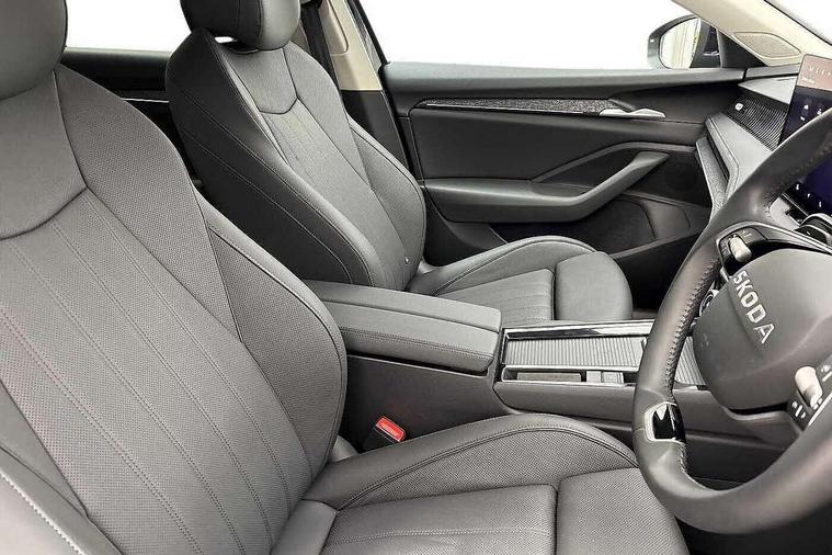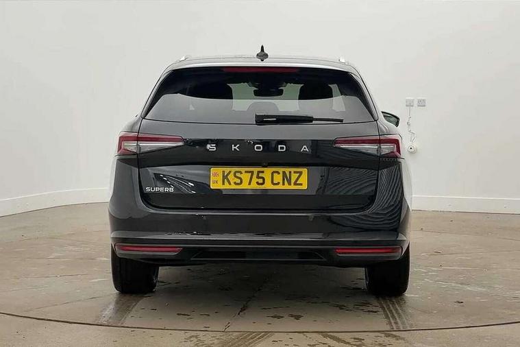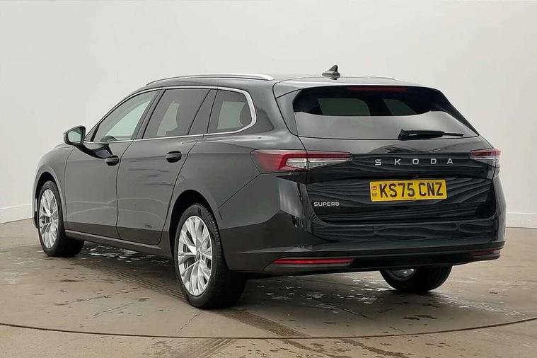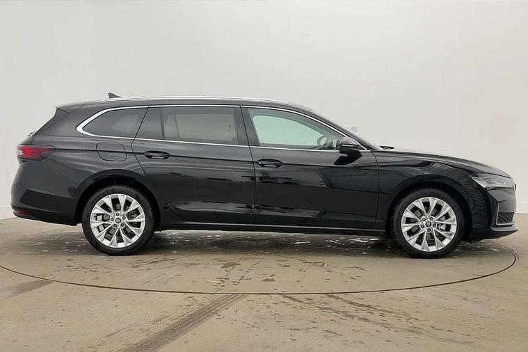 13" touchscreen display with satellite navigation, 4x USB-C ports (2x in front centre console and 2x in rear) (45W), Adaptive cruise control with speed assist, lane assist plus and traffic tram assist, Blind spot detection with door exit warning, Bluetooth system, CareConnect and Emergency Call, ChatGPT functionality, Driver fatigue sensor, Easy boot close funtion, Front assist with extended predictive pedestrian protection, Front cross traffic assist, Quick start all heating software functionality, Stop/start engine system, Traffic sign recognition, Turn assist with evasive assistance, Virtual Cockpit - 10.25" digital display, Voice control system, Washer for rear camera, Wireless charging for one smartphone (15W) with cooling function, Wireless smartlink apple carplay, SmartLink+ android auto, DAB Digital radio, Display cleaner, FM radio connection, Web radio connection, Acoustic side windows and interior noise suppression, Backdrop lighting, Body colour door handles, Body coloured door mirrors, Chrome roof rails, Chrome window surround, Dark chrome grille surround, Dynamic range control with poor weather light and integrated fog light, Electrically adjustable, heated, folding and driver side auto-dimming door mirrors with memory function, integrated indicators and logo projection, Frameless auto-dimming rear view mirror with USB-C, Ice scraper in fuel tank cap, LED 3rd brake light, Light assist with High beam control, Light assistant (coming/leaving home/tunnel light), Privacy glass, Rear fog lights (x2), Rear roof spoiler, Rear side wing doors, Rear windscreen wiper, Unique dark chrome design logo on alloy wheels, Windscreen wipers with rain sensor, 12V socket 1x centre console 1x boot, 14-way electrically adjustable, memory, front seats with 4-way pneumatic lumbar support, and extendable thigh support with smart comfort entry aid, 2x cargo elements in boot, 2x light in boot, 3 seat bench in 2nd row, 4x foldable bag hooks in boot, 60:40 Split folding rear seats, Advanced massage function for front seats, Bottle holders in the front doors 1.5 litre bottle and rear 1.5 litre bottle, Cup holder in front with easy open mat, Front armrest with storage box, Front sports comfort seats, Heated and ventilated front seats, Height adjustable front and rear head restraints, Illuminated glovebox, Interior lights with control switches, Isofix child seat fittings in outer rear and front passenger seats, LED front and rear reading lights, Single front passenger seat, Skoda lettering on steering wheel, Storage compartment with cover, Storage pockets on back of front seats, Sun visors with illuminated vanity mirrors, Ticket holder on A Pillar, Tri zone climate control, Umbrella in driver's door, Light and view package - Superb, Transport package - Superb Estate, 3 rear seatbelts, 8 Airbags - Front driver and passenger, front side driver and passenger, centre, curtain front and rear, drivers knee, Crew protect assist, Driver and passenger seatbelts with warning light, Electronic parking brake, ESC including ABS, EBV, MSR, ASR, EDS, HBA, DSR, RBS, CBC, multi-collision brake (MKB) and Auto hold, Hill hold assist, Power operated child lock in rear doors, Alarm with interior monitoring tilt sensor and back up horn, Backrest remote release from trunk, Electronic engine immobiliser, Keyless start/stop, Remote central locking with SAFE system, Third key, Walk away locking, Decorative front door sills,