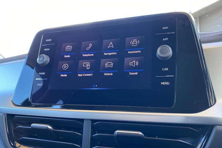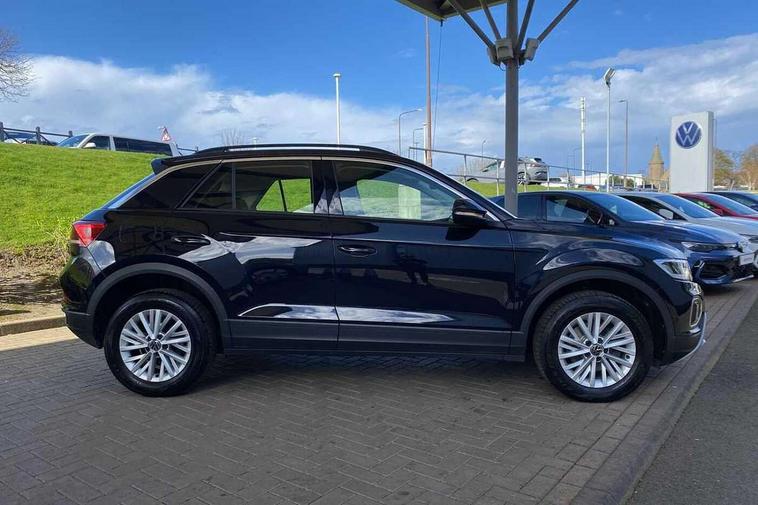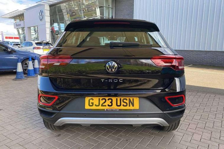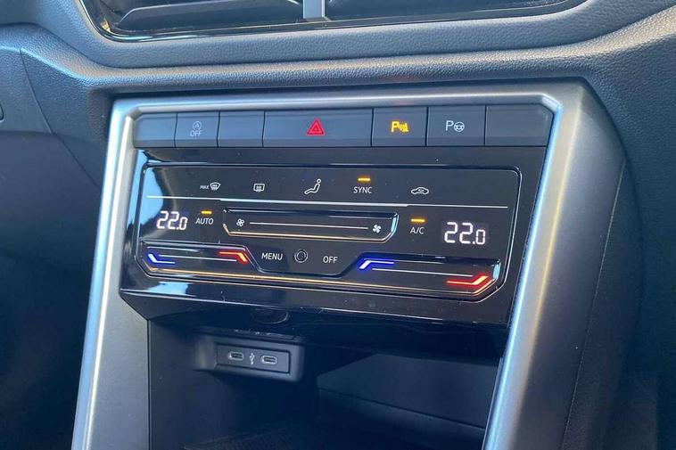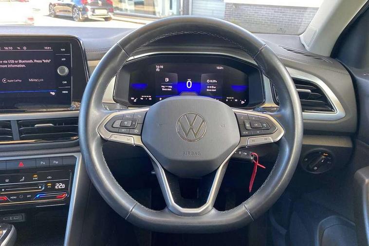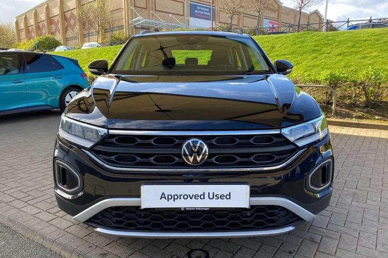 Bluetooth mobile phone interface, Driver alert system with fatigue detection, Driver tips and journey analysis, Emergency call service, Lane keeping system Lane Assist, Modified key software - reduce switch off time for key status change to Long no motion, Online services, Park assist including front and rear parking sensors, Power assisted speed sensitive steering, Service interval indicator, Tailgate/trunk lid release from outside, Think blue trainer driver tips and journey analysis, Warning sound and light for front seatbelts unfastened, Wireless app connect, Battery regeneration during braking, Front shock absorption, Rear shock absorption chassis with increased ride height, Start/stop function with battery regeneration, DAB Digital radio, Diversity antenna for FM reception, Front and rear 6 speakers, Music playback - MP3, WMA and AAC files, Premium USB cable in choice of either Apple or Android smartphone compatibility, SD card slot, Simultaneous pairing of 2 compatible mobile devices, Title and cover art display, We Connect and We Connect Plus functionality, 3rd brake light, Auto dimming interior rear view mirror, Automatic hazard lights activation under emergency braking, Automatic headlight control with LED separate daytime running lights with coming/leaving home function, Black roof rails, Body coloured bumpers and radiator grille with chrome trim and front fog lamps with chrome bezel, Body coloured exterior mirror housings and door handles, Extended roof spoiler, Exterior mirrors aspherical on driver side, convex on front passenger side, External USB type C socket and charging sockets, Front windscreen wiper with intermittent wipe and 4 position delay, Heated rear window, LED Headlights, LED rear combination lamps, LED rear number plate lights, LED tail lamp rear comination lamps, Power windows with comfort operation and circuit breaker, Rain sensor, Rear exhaust tailpipe, Rear fog light on one side and reversing lights on both sides, Rear side wing doors, Rear wash/wipe with intermittent wipe setting, Remote electrically foldable door mirrors, puddle lights and reverse activated passenger's door mirror, 12V power socket in centre console, 3 rear head restraints, 3 seat bench in 2nd row, 4 load lashing points in luggage compartment, Air care climatronic air conditoning system with active combination filter and 2-zone temperature control, Ambient lighting with mirror logo projection, Cloth upholstery, Door and side trim panel in cloth, Drawer under drivers seat, Driver/front passenger seat height adjustment, Front centre armrest, Front comfort sports seats, Front cupholders x 2, Front reading light, Instrument lighting, white adjustable panel illumination, Interior light delay, Isofix child seat preparation, Leather gearshift handle, Load-through provision with cup holder when folded down ('Unsplit rear seat bench, split folding backrest, with centre armrest), Luggage compartment lighting, Lumbar support for driver's and front passengers seat, Non-folding front passenger seat backrest, Single front passenger seat, Storage compartment in left and right luggage area, Storage compartment in rear doors, Storage compartments in driver and front passenger doors, Sunvisors with illuminated vanity mirrors, Variable boot floor, height adjustable and removable, Driver assistance pack without proactive passenger protection - T-Roc, 3 point height adj front seatbelts + pretensioners, 3 point seatbelts in outer rear with ECE label, ABS, Child locks on rear doors, Driver and front passenger airbag with front passenger airbag deactivation, Driver and front passenger safety-optimised head restraints, Drivers seatbelt reminder, Electronic parking brake, Electronic Stability Control (ESC) inc EDL (Electronic Differential Lock) and ASR (Traction Control), Front and rear passengers curtain airbag system including front side airbags, Front assist with city emergency braking and pedestrian monitoring, Front disc brakes, Front seat side impact airbags, Hill start assist, Predictive pedestrian protection, Rear disc brakes, Single tone horn, Tyre pressure loss indicator, Volkswagen roadside assistance, Alarm with interior protection, Anti-theft alarm system with interior monitoring, backup horn, and towing protection, Remote central locking with SAFELOCK, radio remote control with 2 remote control folding keys, Pewter matt decorative inserts for intrument panel, centre console and door panels at the front, Trims for alloy wheels,